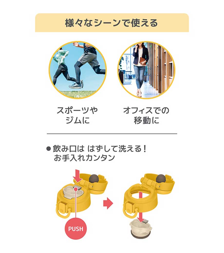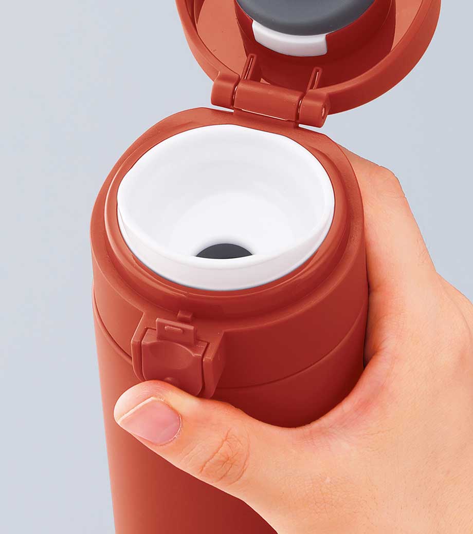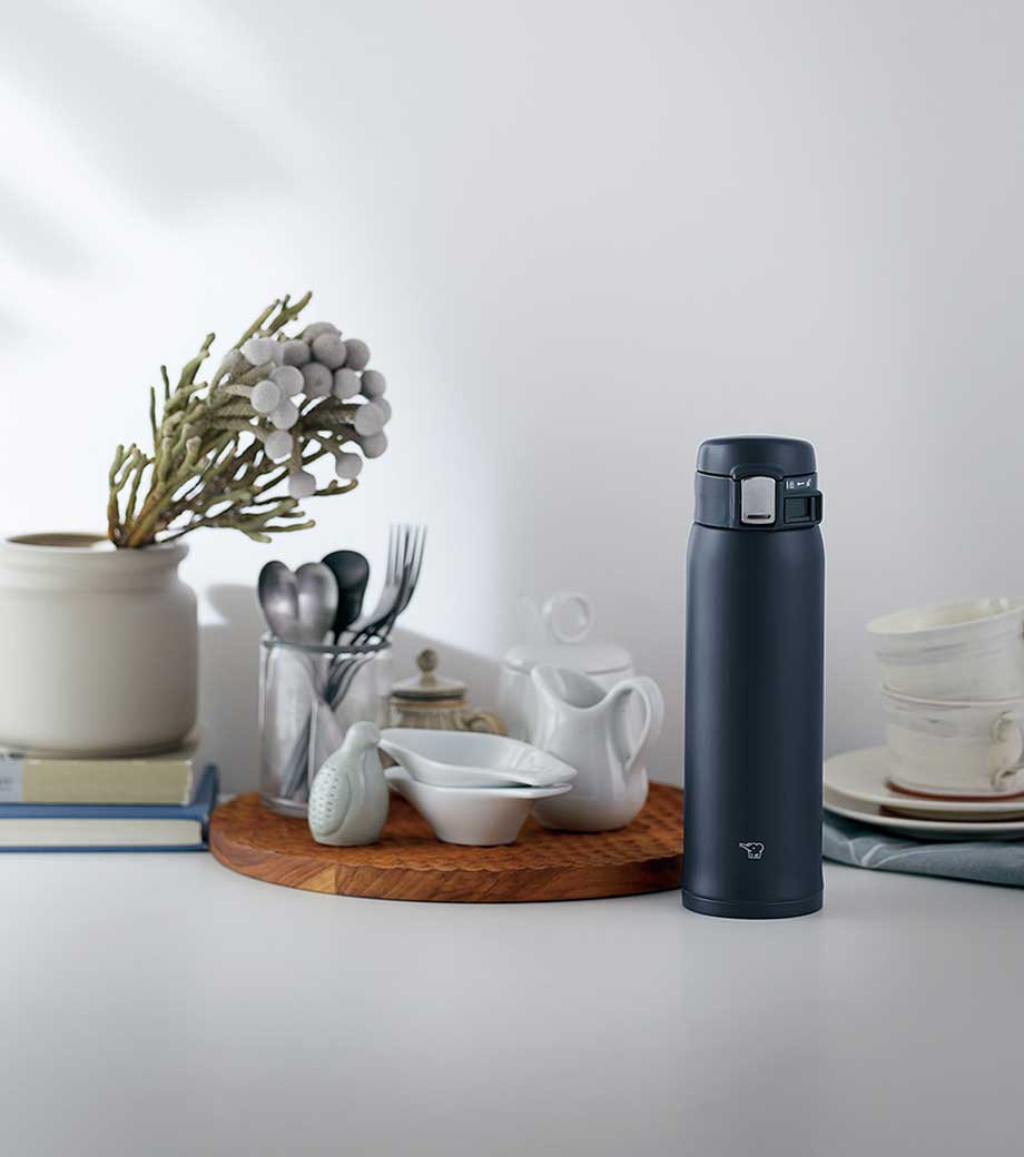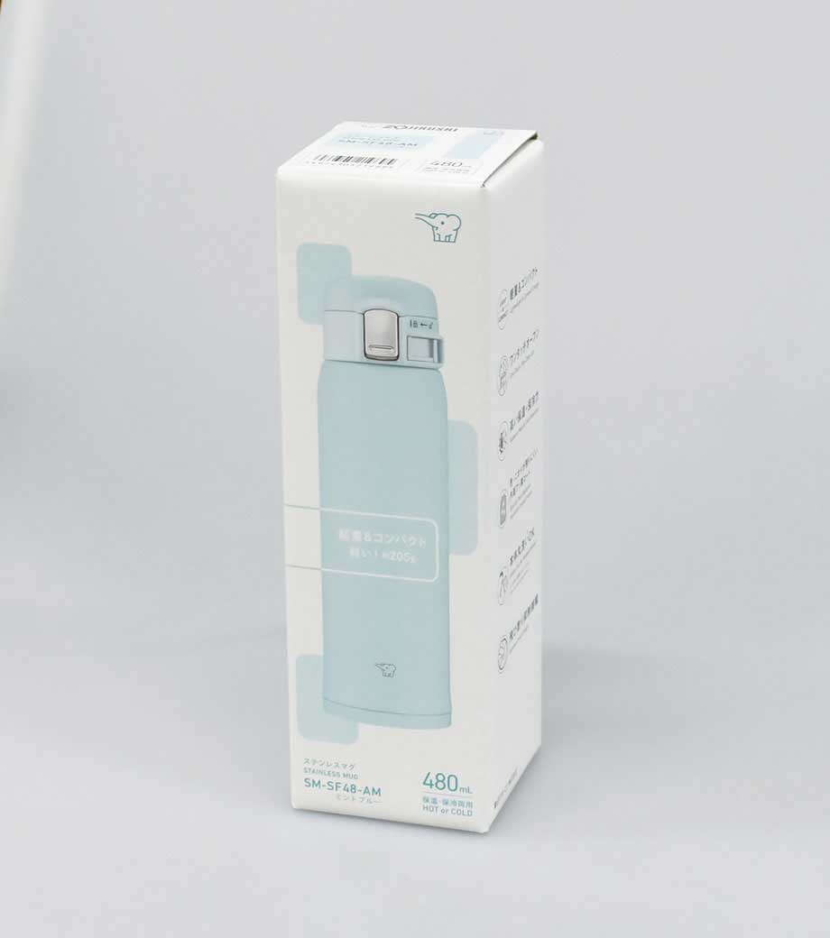 象印 TUFF ステンレスマグ 0.48L(SM-SF型)は象印が誇る高い保温・保冷力の真空二重構造の軽量コンパクトボトル。飲み頃温度を長時間キープしながら、わずか約1mmの真空層で軽量化を実現しました。1日おでかけするときにもしっかり水分補給できる480ml容量。マイボトルの持ち運びは手軽にできるエコ活動です。フタはワンタッチでオープンが可能で安心のロック機能付きです。開けた時にキャップの水滴が飛び散りにくい「飛び散り抑制機構」は、メーカー独自開発デザイン。机の上の書類も濡らさず安心です。