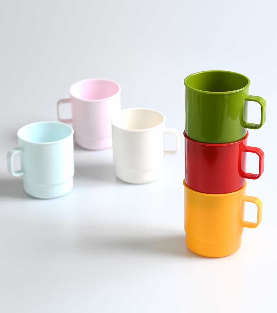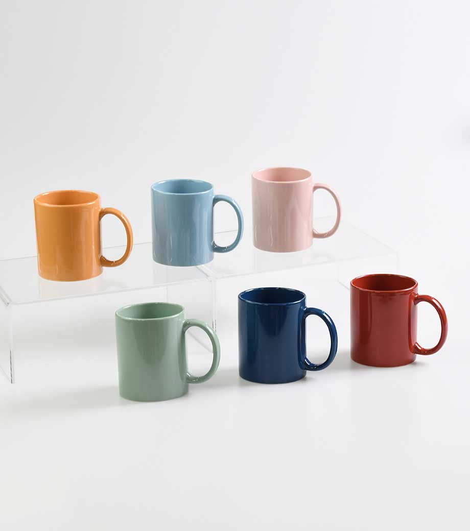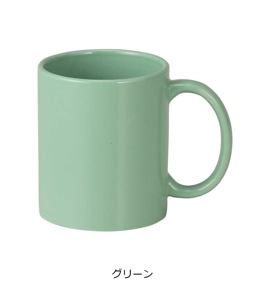 カラフルながらも落ち着いた色味がラインナップ。企業やキャラクターイメージに合わせてお選びいただけます。30個から発注可能!名入れ印刷でオリジナルのマグカップが制作できます。