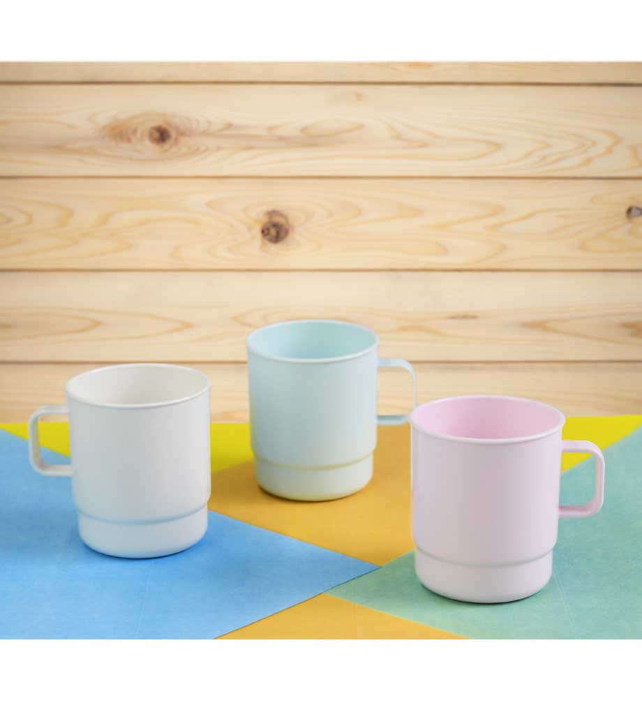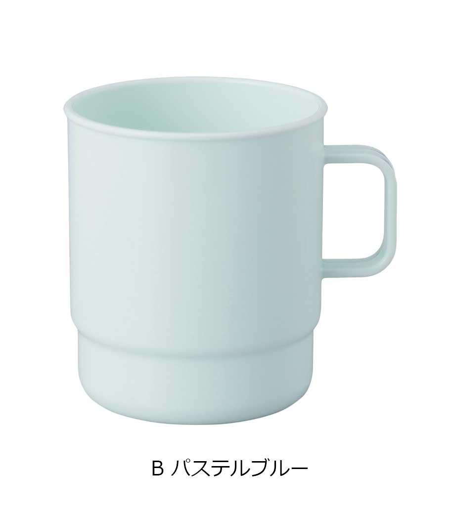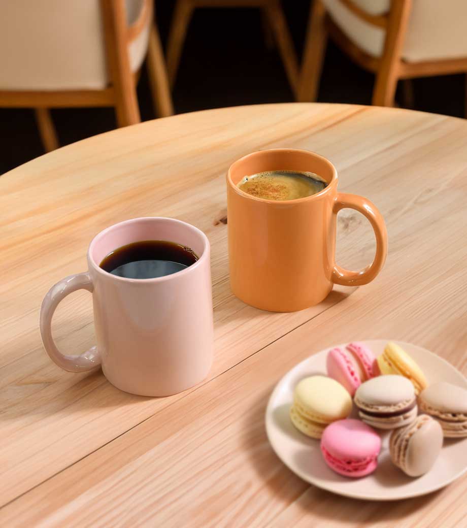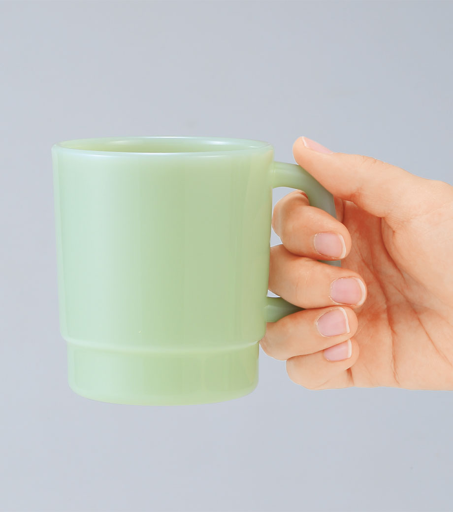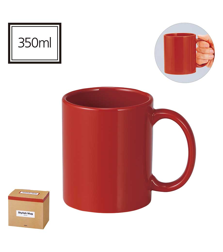 約350ml容量の陶磁器製マグカップ。外側も内側も同じ色でカラーリングされていて、シンプルながらもおしゃれなデザインです。目覚めのコーヒーやティータイムにはもちろん、毎日使えます。