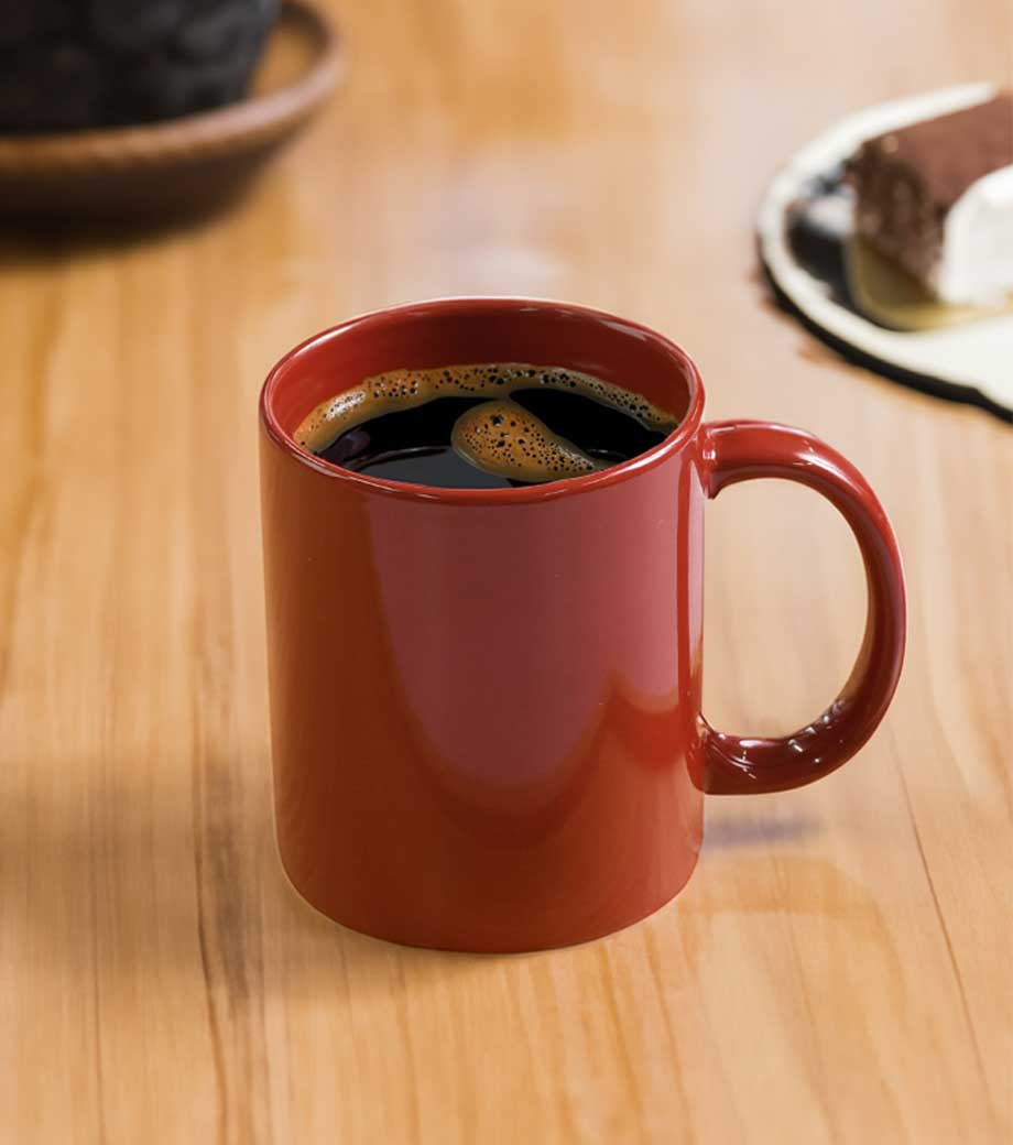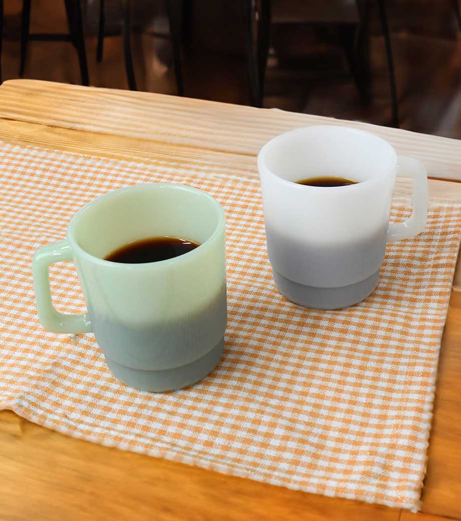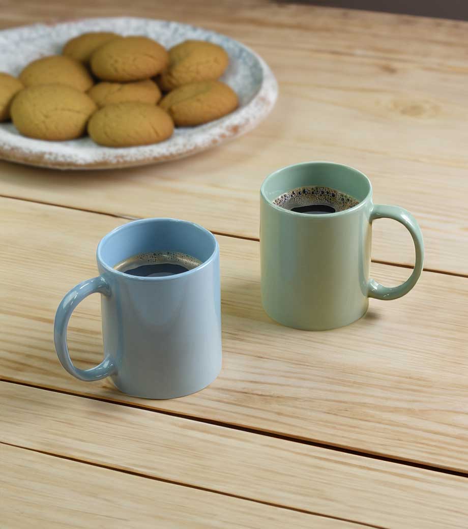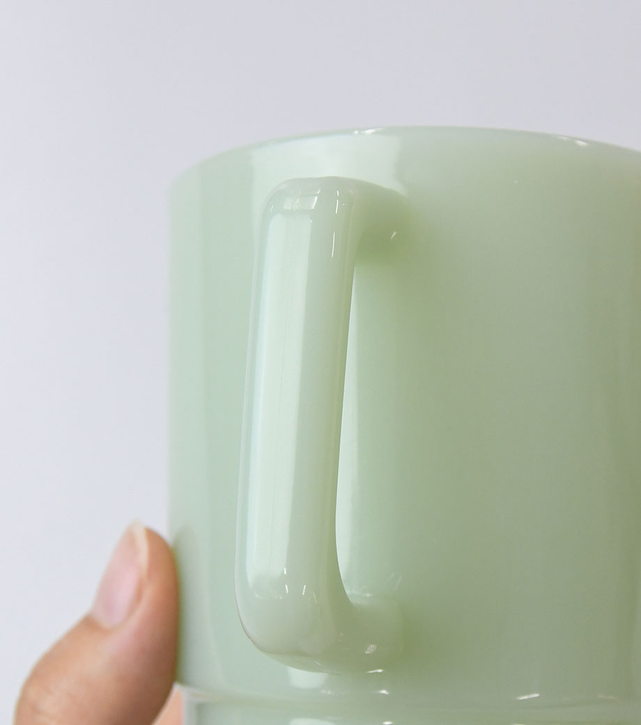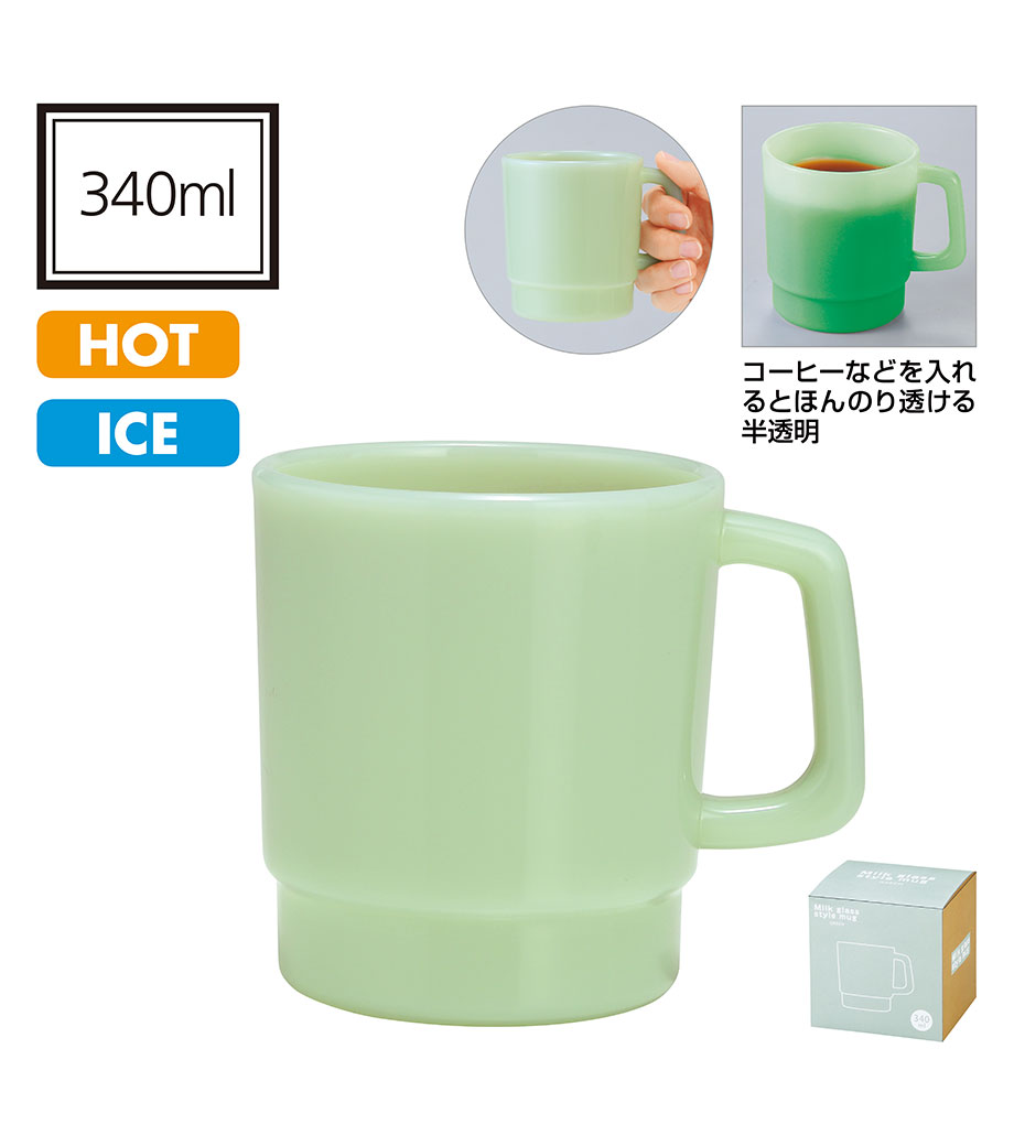 約350ml容量の陶磁器製マグカップ。外側も内側も同じ色でカラーリングされていて、シンプルながらもおしゃれなデザインです。目覚めのコーヒーやティータイムにはもちろん、毎日使えます。