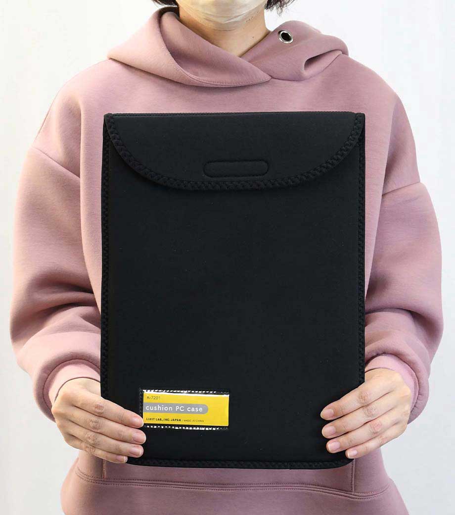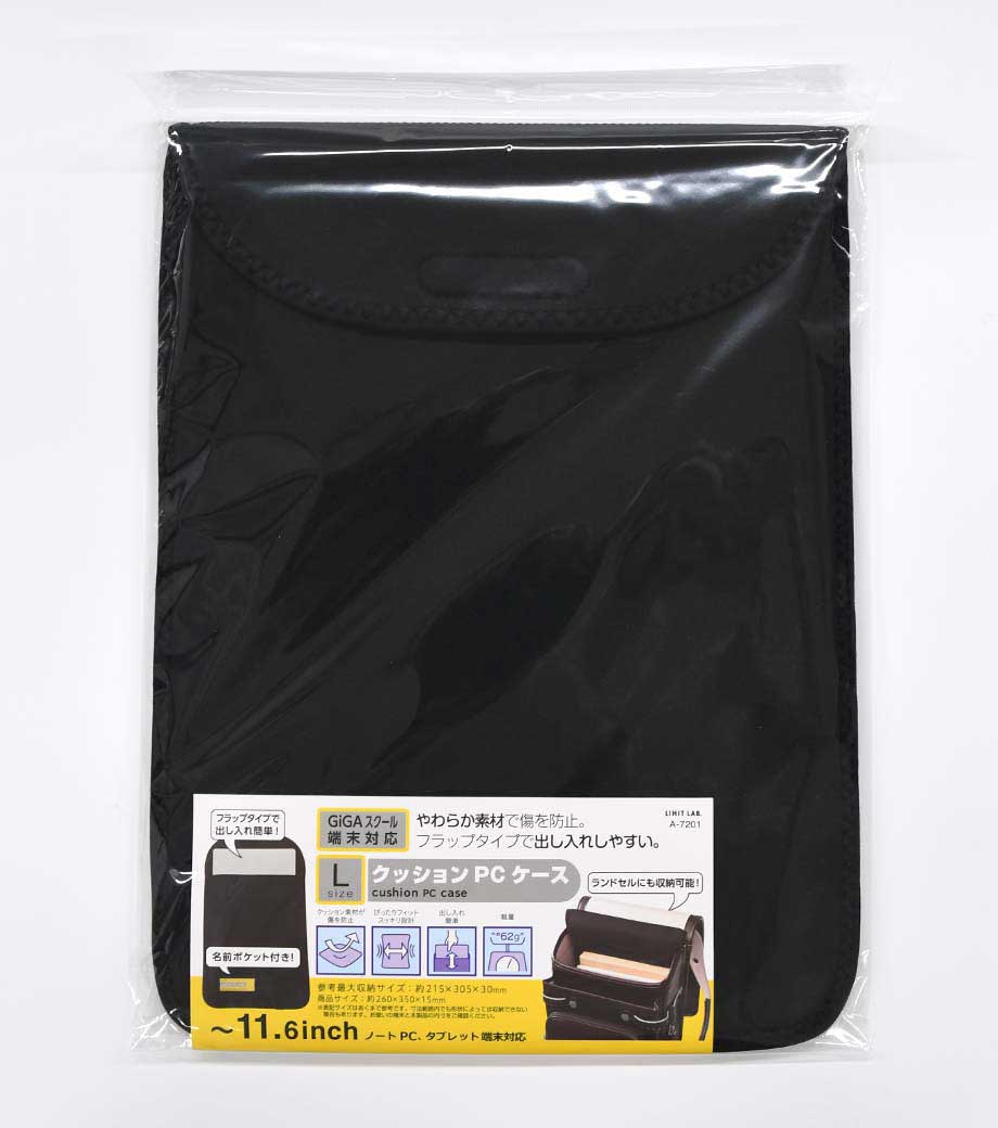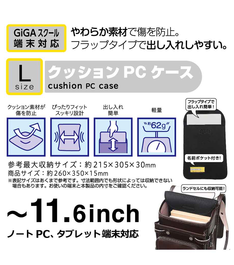 クッションPCケース(Lサイズ)は、A4書類が入るサイズで11.6インチまでのノートPC・タブレット端末を収納できます。