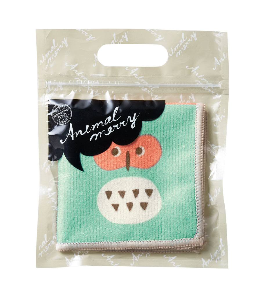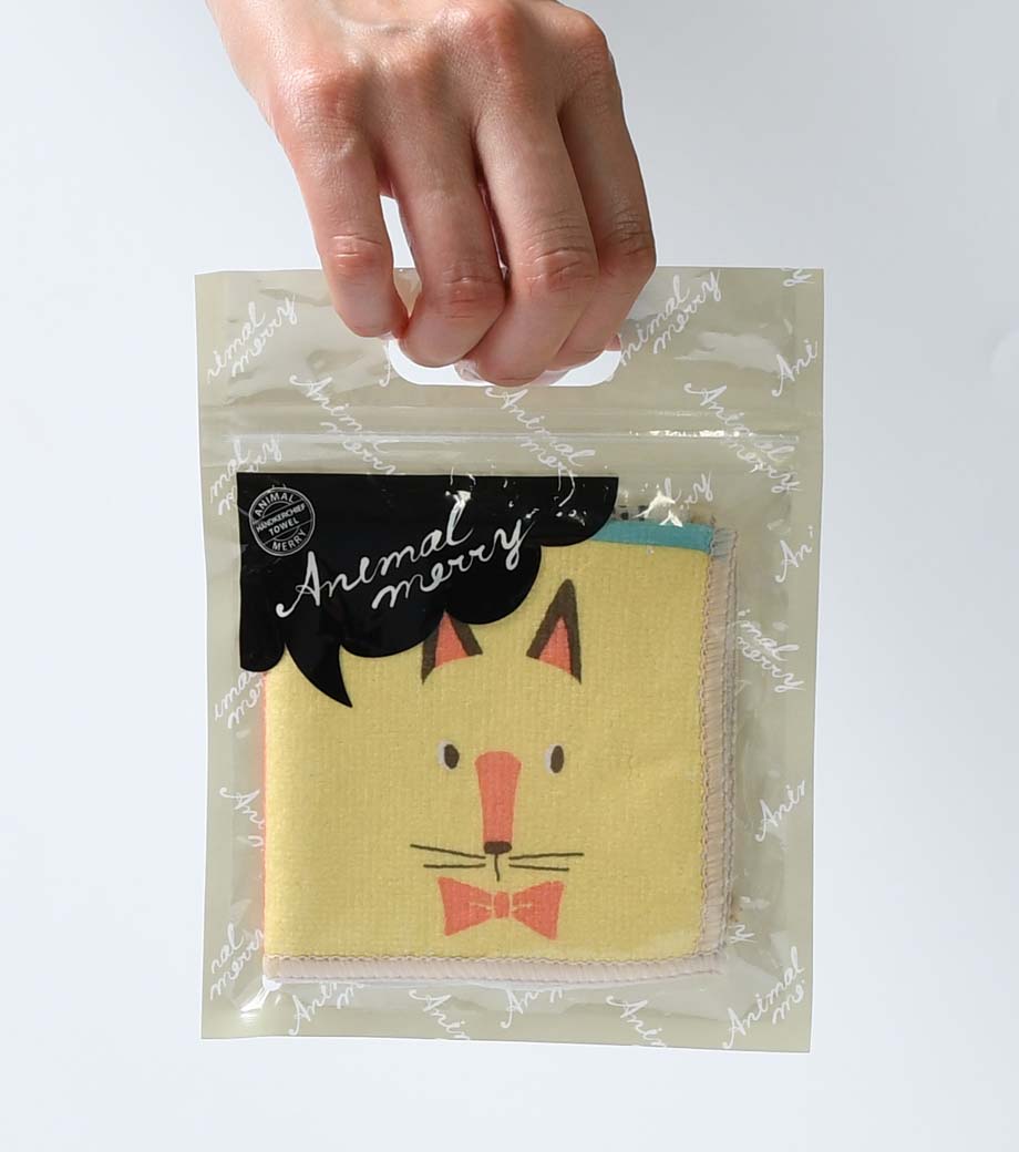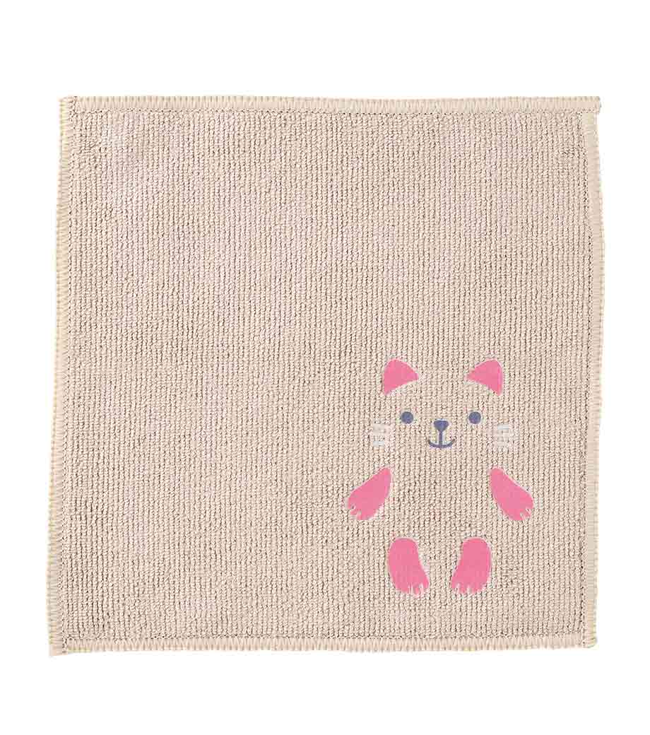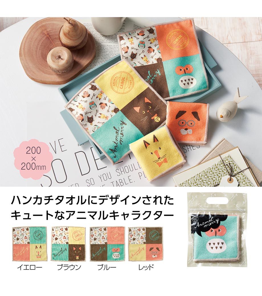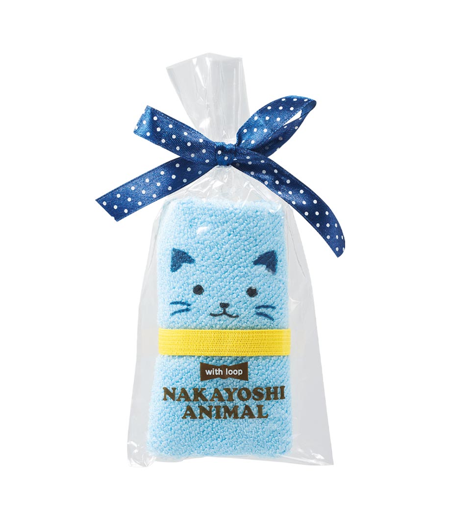 ループ付 なかよしアニマルハンカチタオルはキュートなイヌ・うさぎ・クマ・ねこの4種類を取混ぜでお届け。ループはゴム仕様なので洗面所に引っ掛けて使用したり、ハンカチをコンパクトにたたんで留めることもできます。
