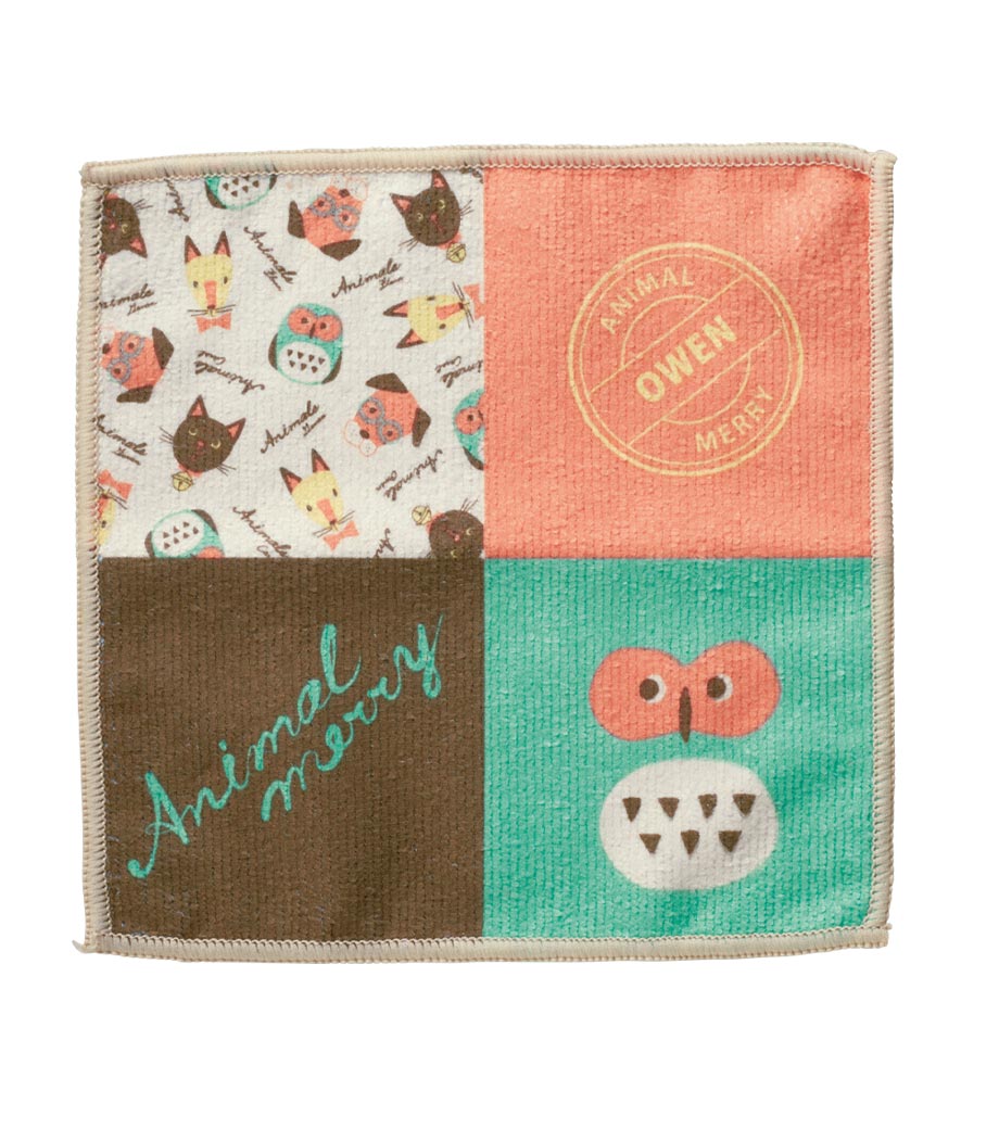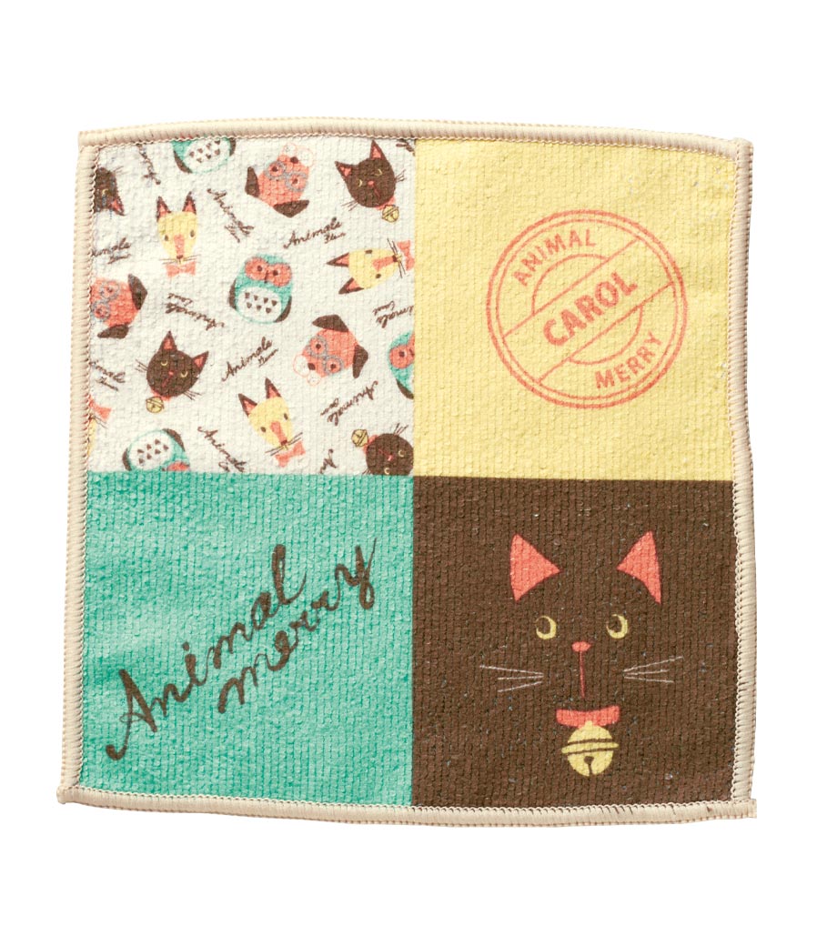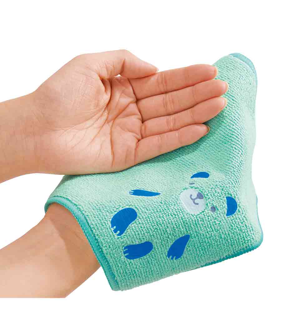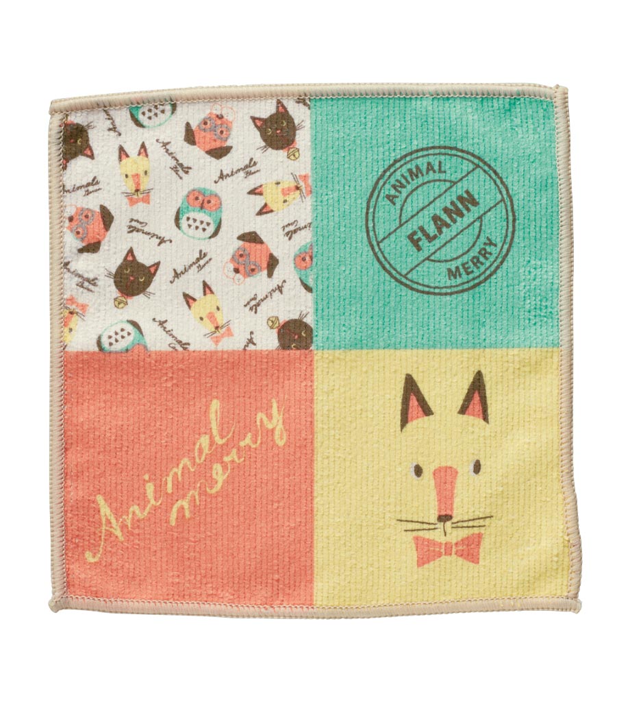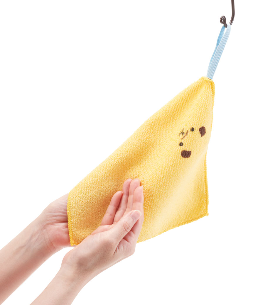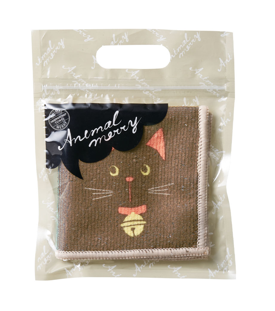 ループ付 なかよしアニマルハンカチタオルはキュートなイヌ・うさぎ・クマ・ねこの4種類を取混ぜでお届け。ループはゴム仕様なので洗面所に引っ掛けて使用したり、ハンカチをコンパクトにたたんで留めることもできます。