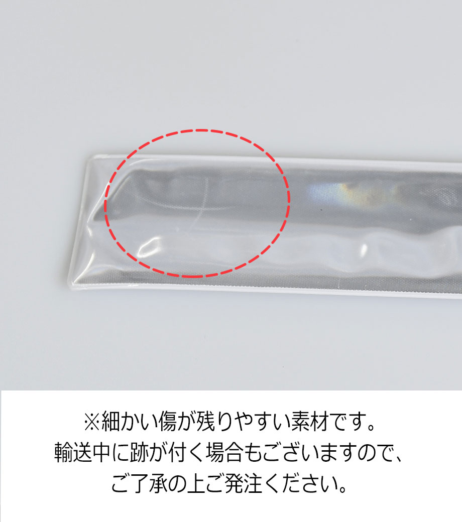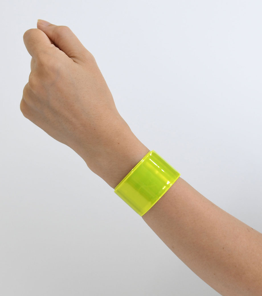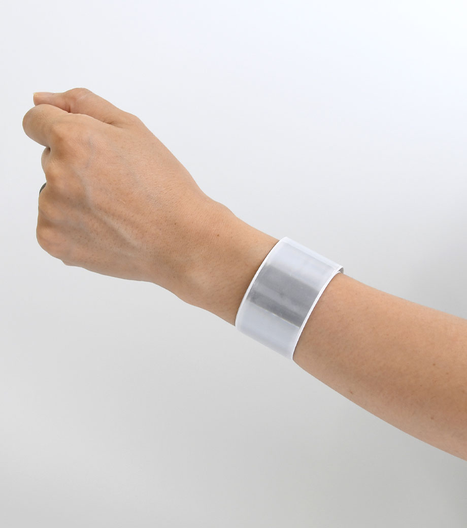 アームリフレクターは片手でカンタン装着できる反射バンド。軽く叩きつければくるっと巻きつく設計。腕や足に付けてもしっかりホールドするので落下を防ぎます。バッグ、自転車などに付ければ光を反射して夜道の安全を守ります。ランニングやお散歩、通塾にもおススメ。軽くて薄いので配布しやすい防犯ノベルティです。