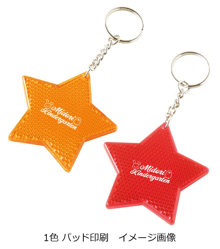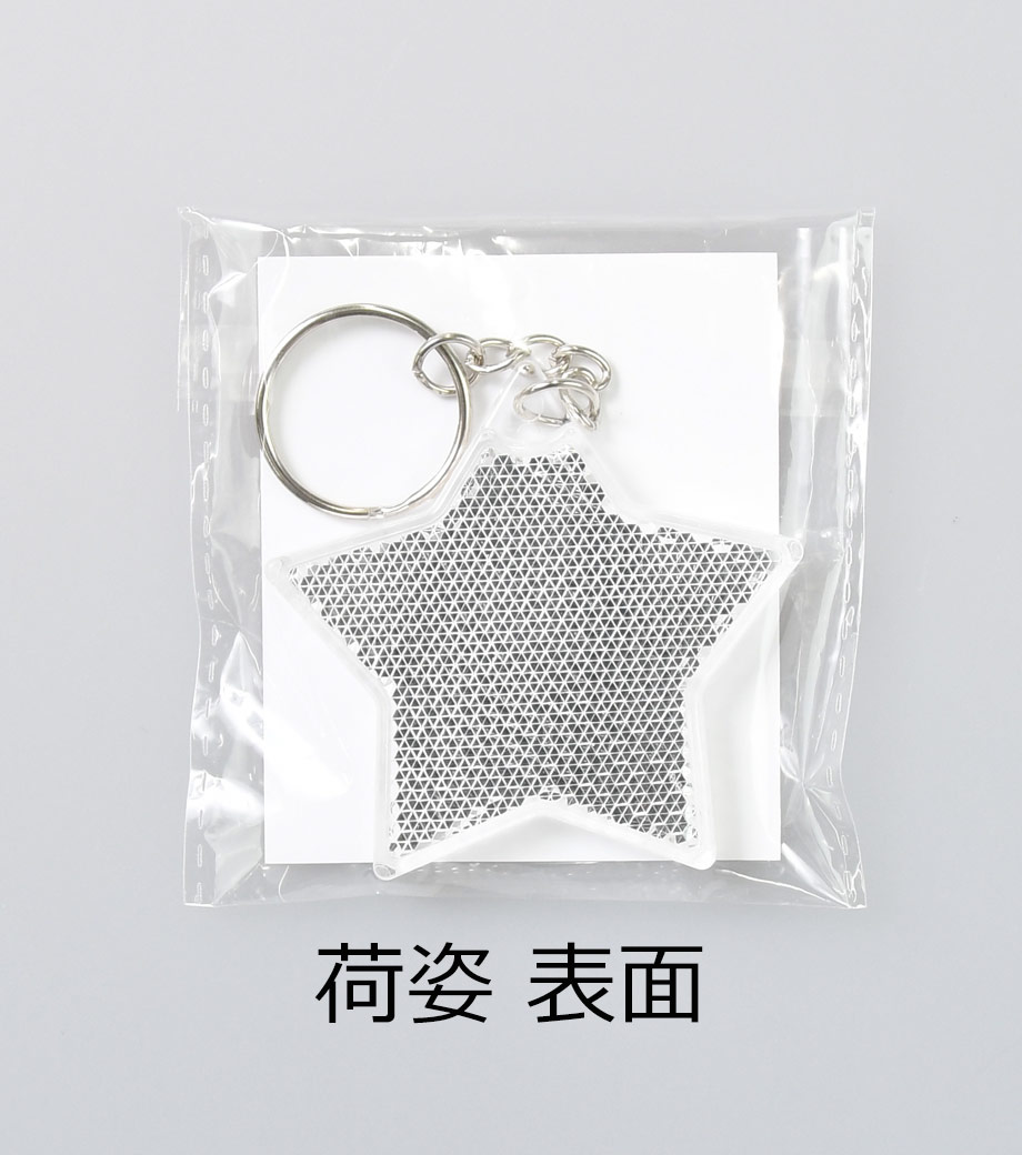 「反射板キーホルダー ほし」はお子さまの安全を守る反射素材で作った、かわいい星形のキーホルダー。中央に印刷ができますので、イベント名・大会ロゴを名入れして自治会主催の安全協会イベントや集会などの参加賞や、こども会の景品・記念品などに使えるノベルティです。