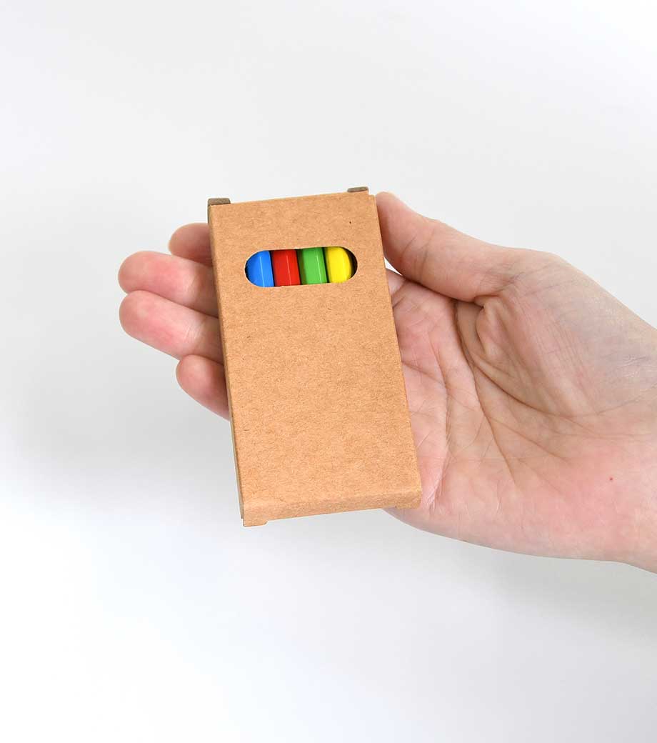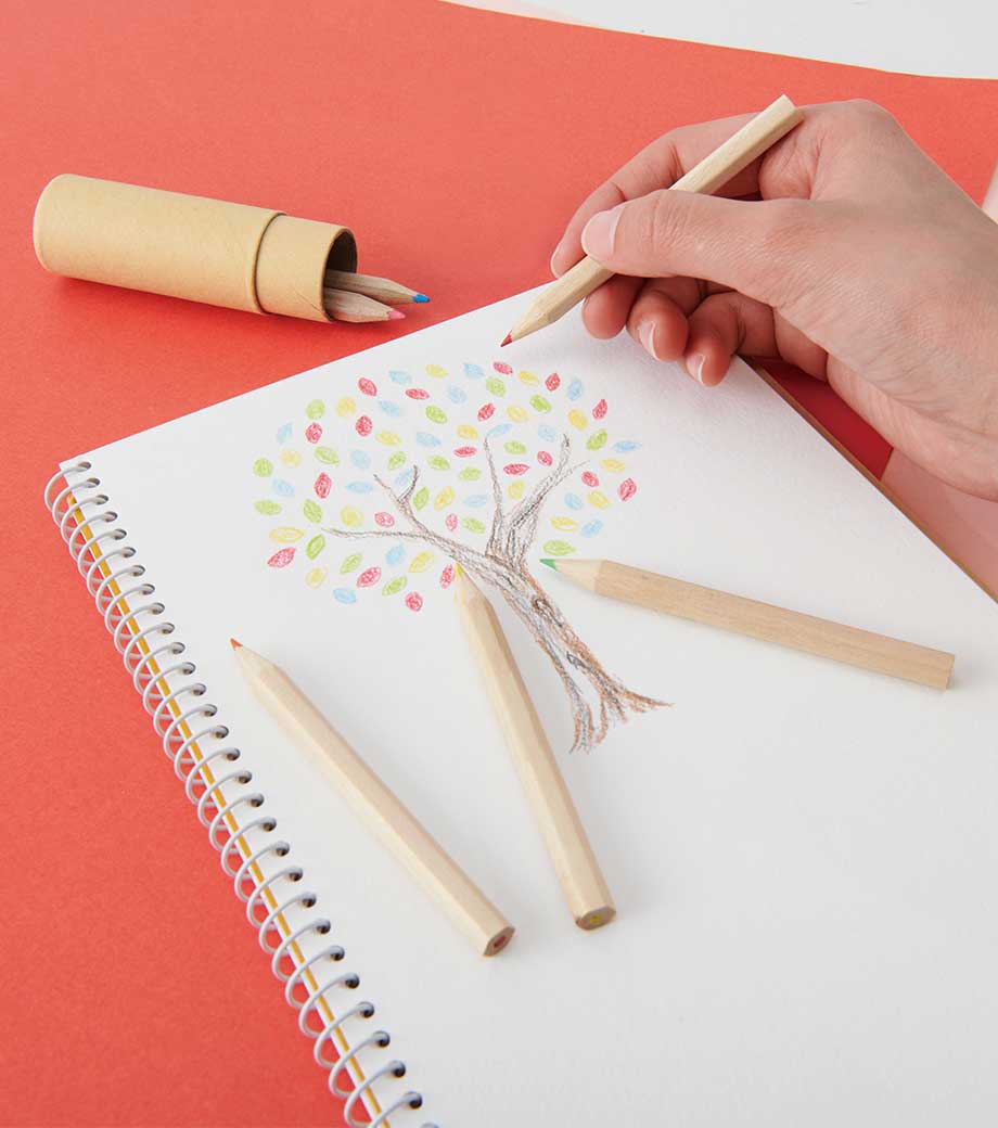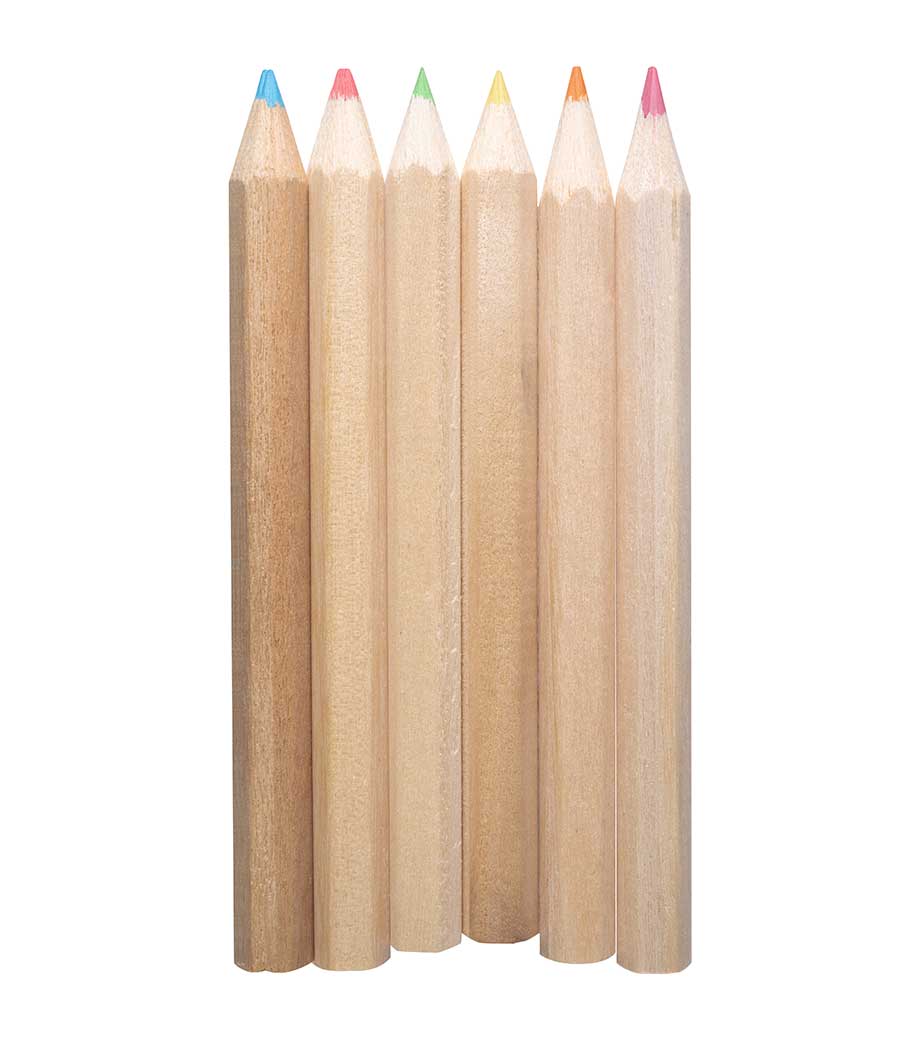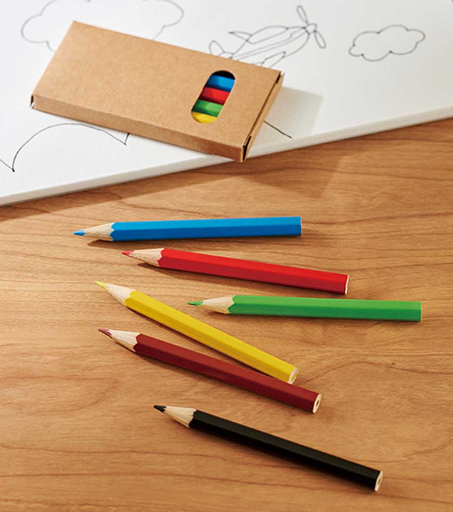 軽くてコンパクト、カラフルで楽しい6色入りのミニ色鉛筆のセットです。クラフト紙使用のパッケージでエコ志向の方にも嬉しいアイテム。かさばらないのでお子様も持ち運びが簡単。鞄に入れてお出かけすれば、いつでもどこでもお絵描きができます。