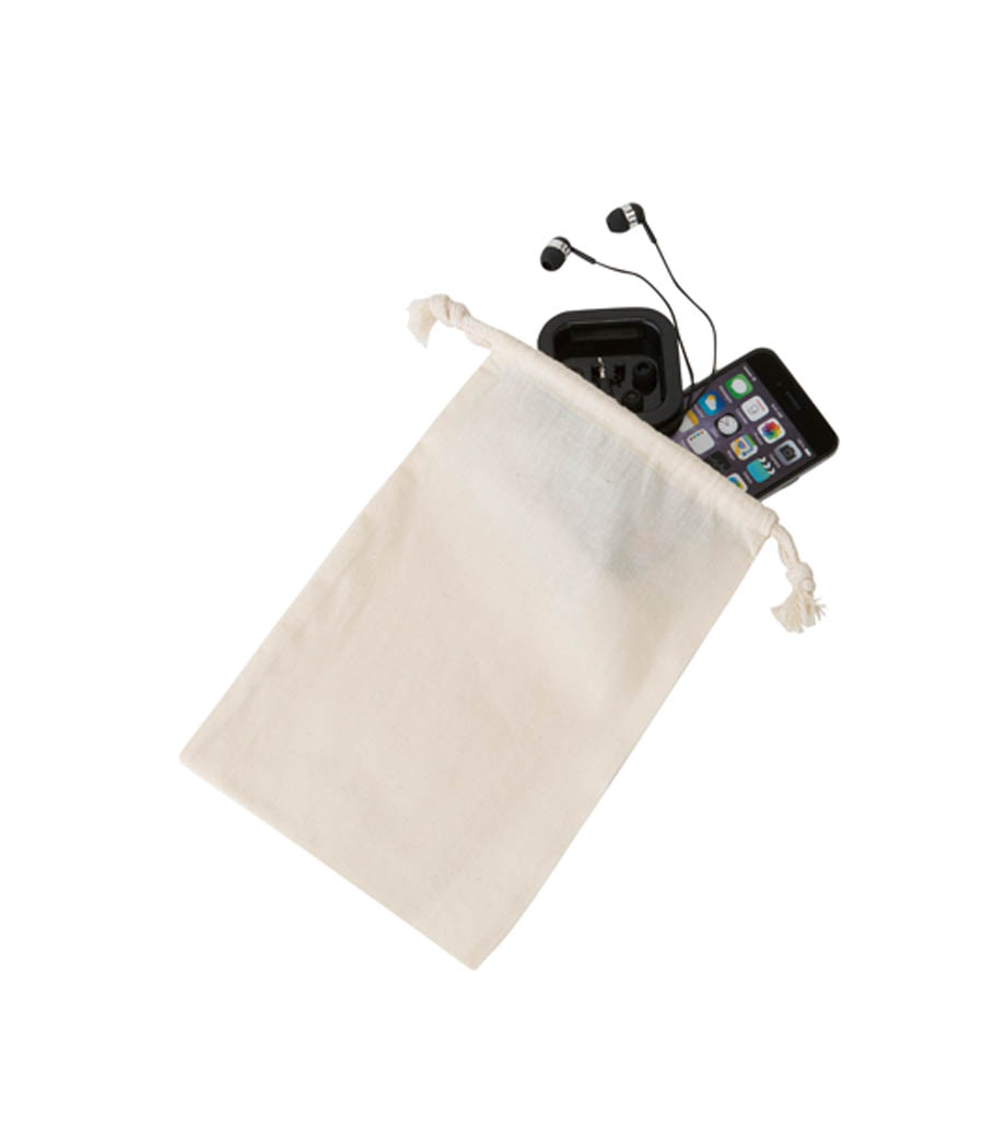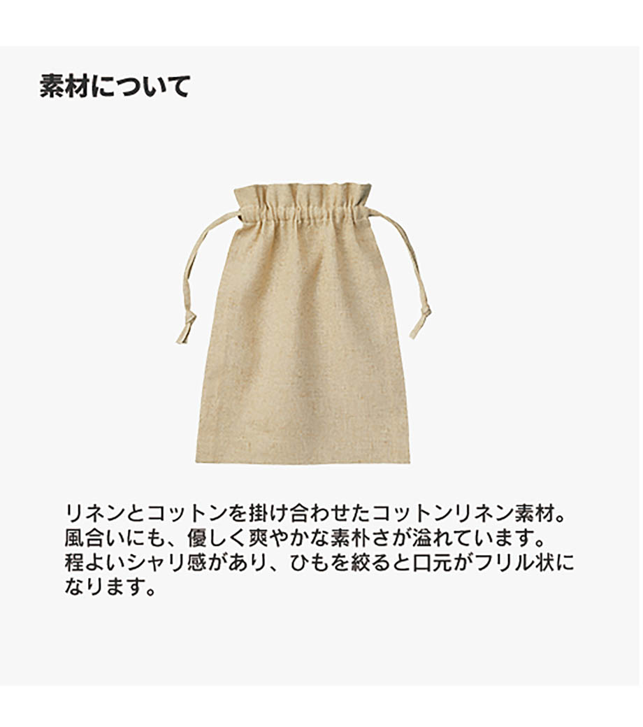 「コットン巾着(M)」は自然の風合いがやさしい、コットン素材の巾着袋です。やや薄手のシーチング生地で、旅行用の化粧品や、小物をまとめるのにちょうどよい大きさです。シンプルな巾着タイプは、デイリー使いにぴったり。