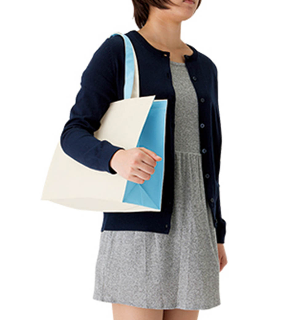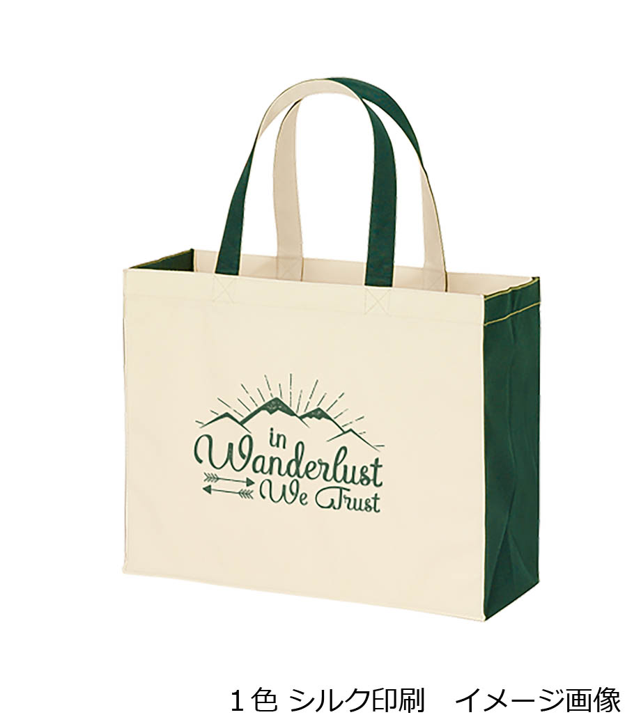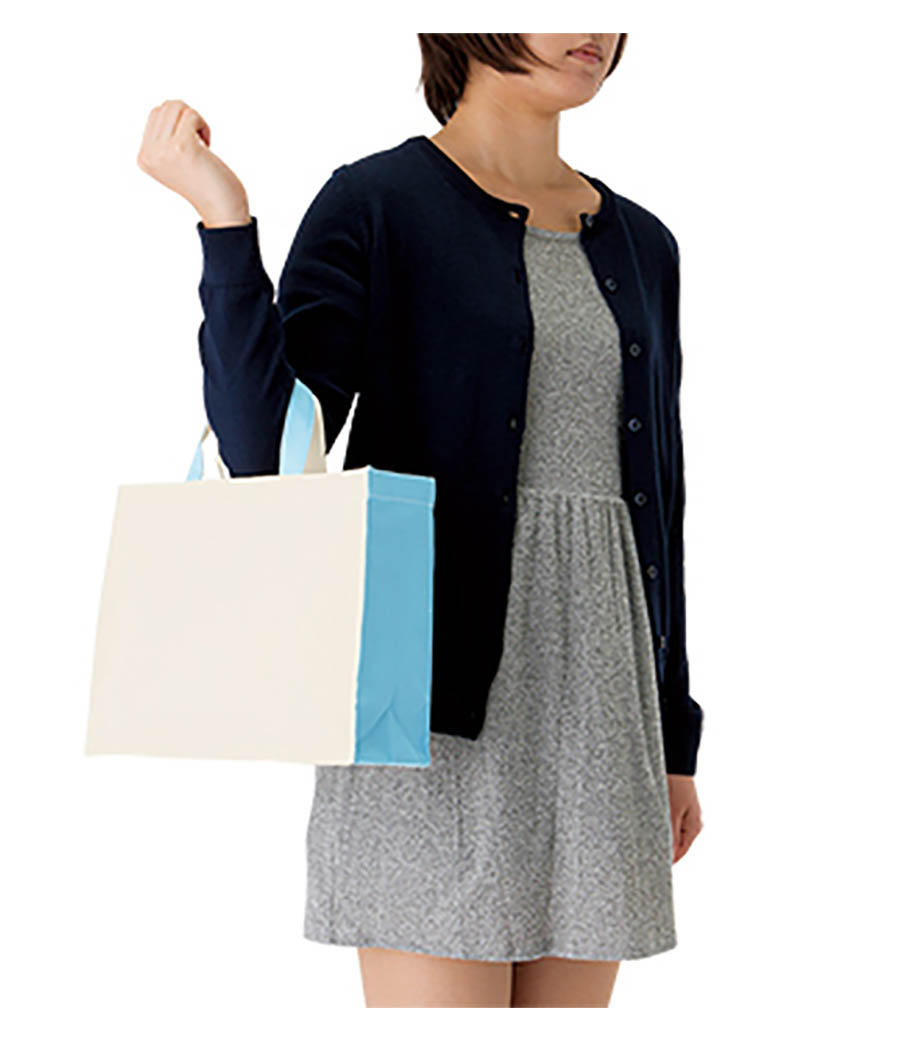 お弁当や携帯・小物などの持ち歩きに便利なコンパクトサイズで、ランチタイムやちょっとそこまでのお供に重宝します。ツートンカラーがアクセントとなり、ベーシックでありながら、お洒落なデザインは普段使いにもピッタリ。企業カラーに合わせて、ひと味違ったノベルティバッグを制作してみませんか?