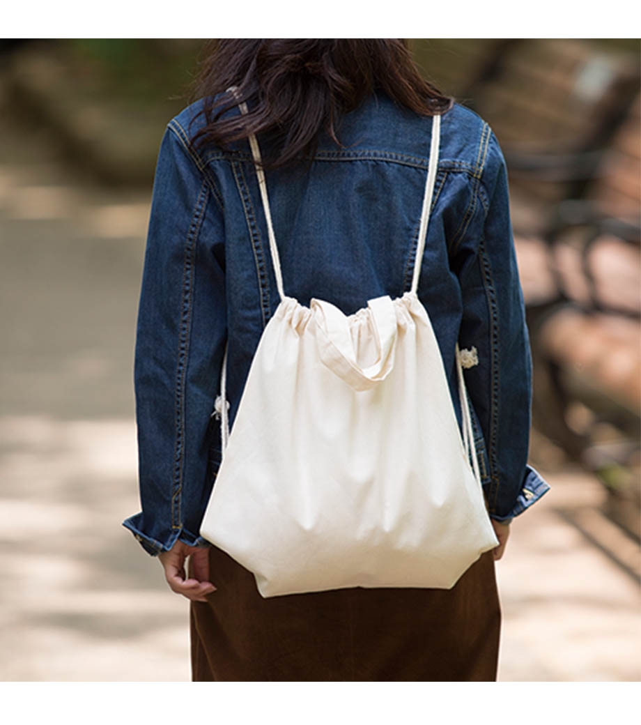 「厚手コットンハンドル付リュック 」は、旅行やアウトドアなどにも気軽に使えるリュック型コットンバッグ。旅行バッグの中に入れておけば、旅先でのサブバッグにぴったり。ハンドル付きなので、2WAYで使えてデイリーユースにもぴったり。トレンドのリュックですが、使う人を選ばない、シンプルなデザインがGOOD!