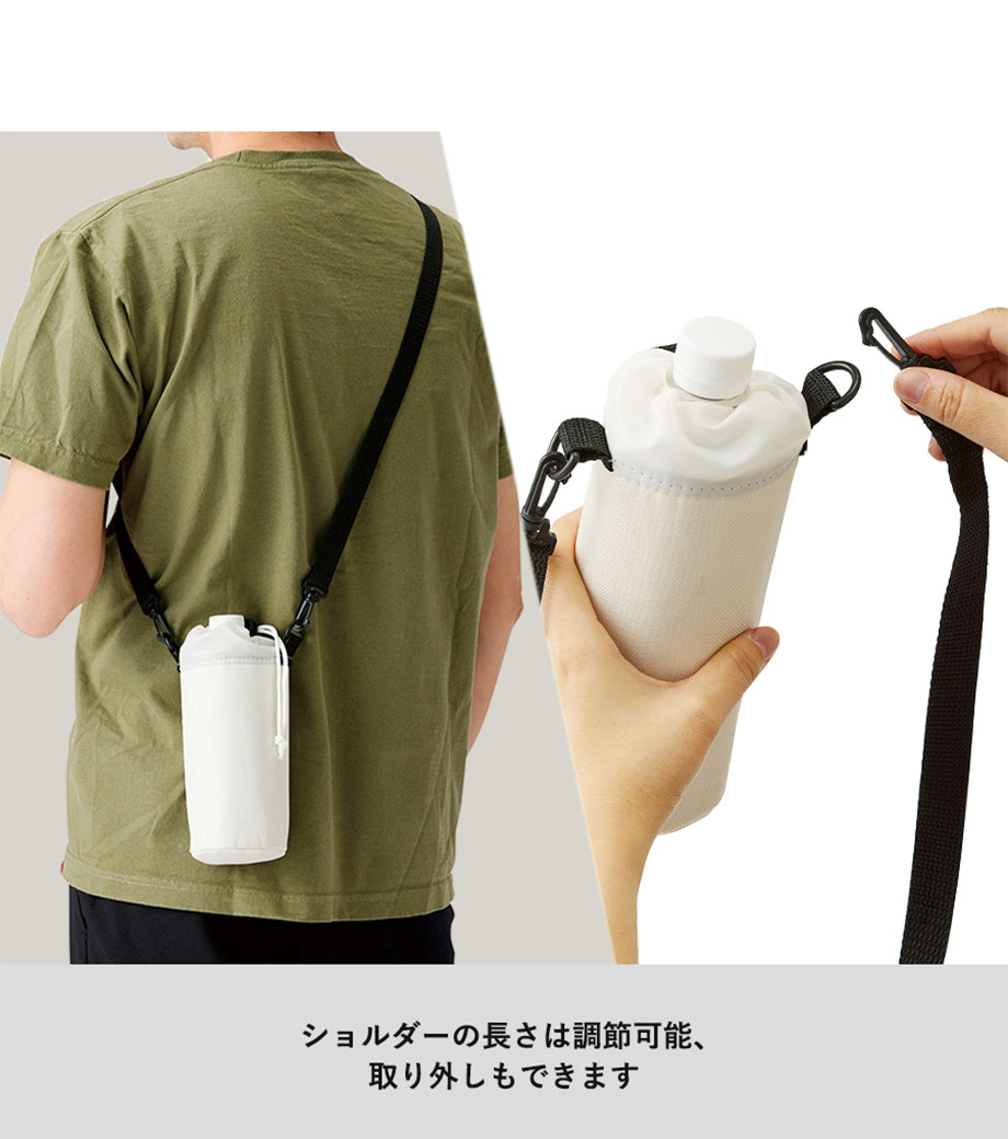 「ソロア 保冷温ドリンクケース」は、500mlペットボトルが入るボトルカバー。内側は保冷温効果のあるアルミ蒸着フィルムで仕上げました。ボトル飲料の適温をキープしてくれるので、冷たいものは冷たく、温かいものは温かく楽しめます。アウトドアやお出かけのお供に、一年中活躍!きれいな色が揃っている本体色は、ブルー・グリーン・オレンジ・ピンクの4色から選べます。