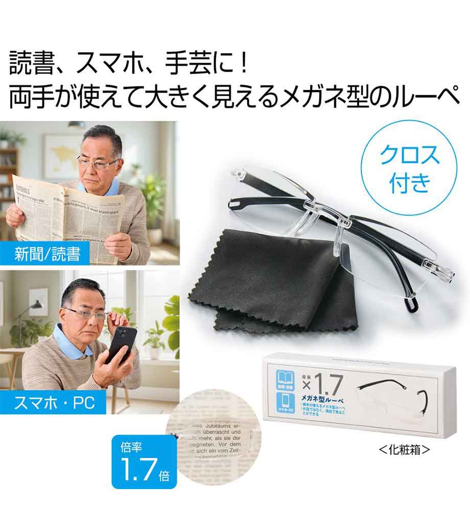 新聞・雑誌の購読者プレゼントや、シルバー向けイベントにぴったりの、今人気の眼鏡型ルーペです。老眼鏡を検討中の方にもおすすめ。