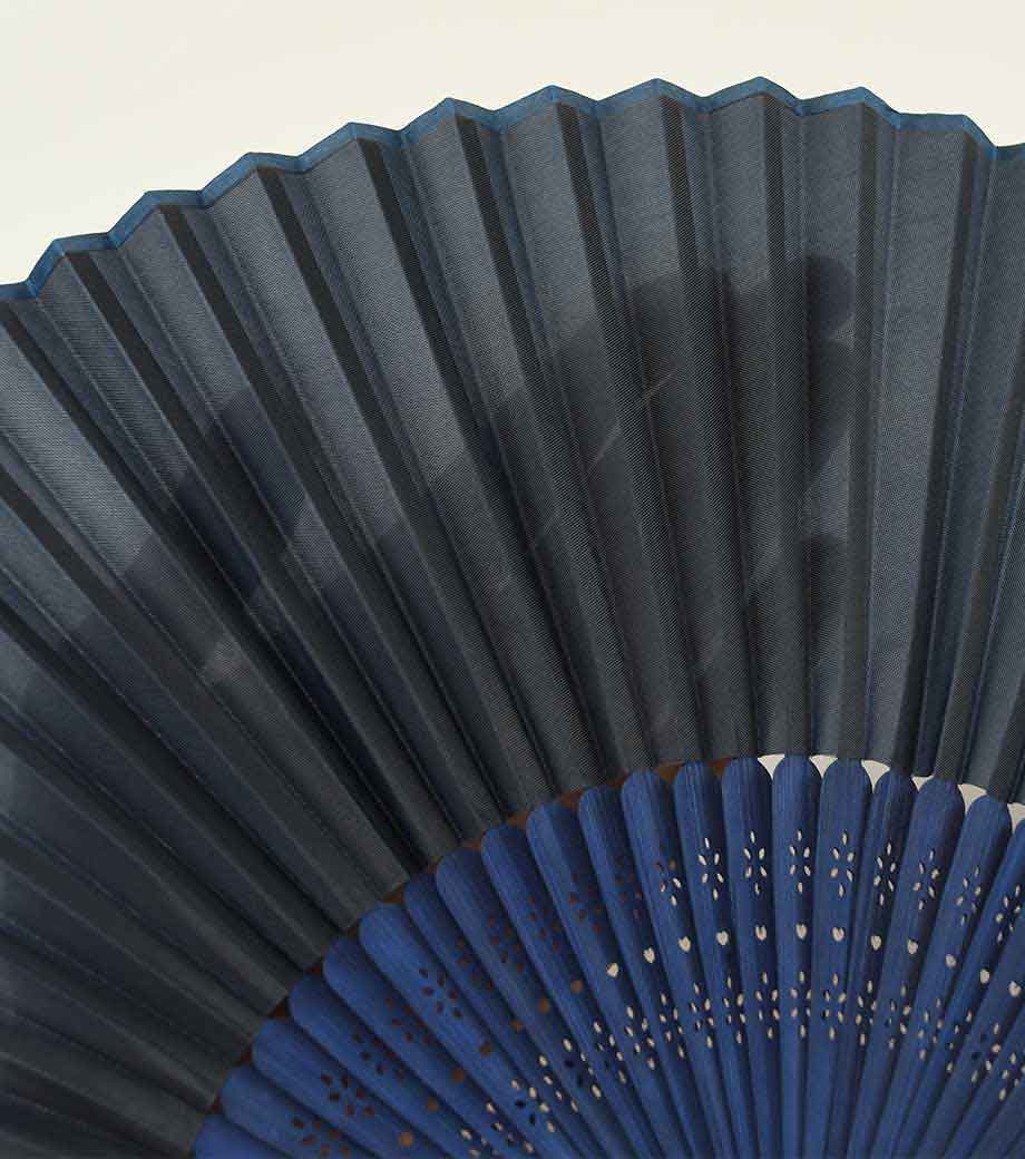 紺扇子は、骨の部分まで紺色に染められたシックなデザイン。年代性別問わず幅広く使えるシンプルさです。扇の部分は少し透け感があり、濃色ながらも爽やかさが感じられます。コンパクトに携帯できる扇子は、夏の暑さ対策の必需品。