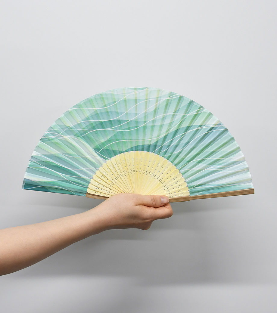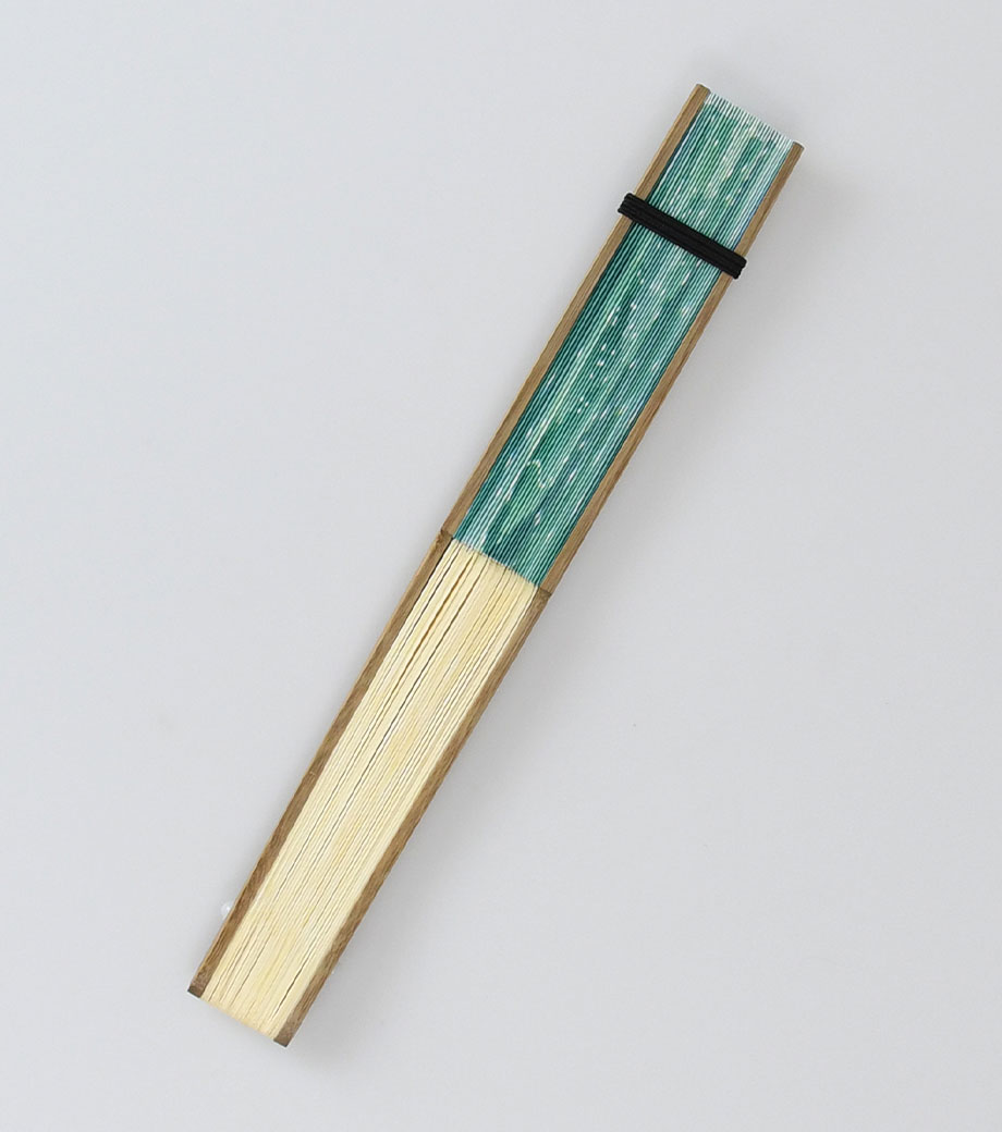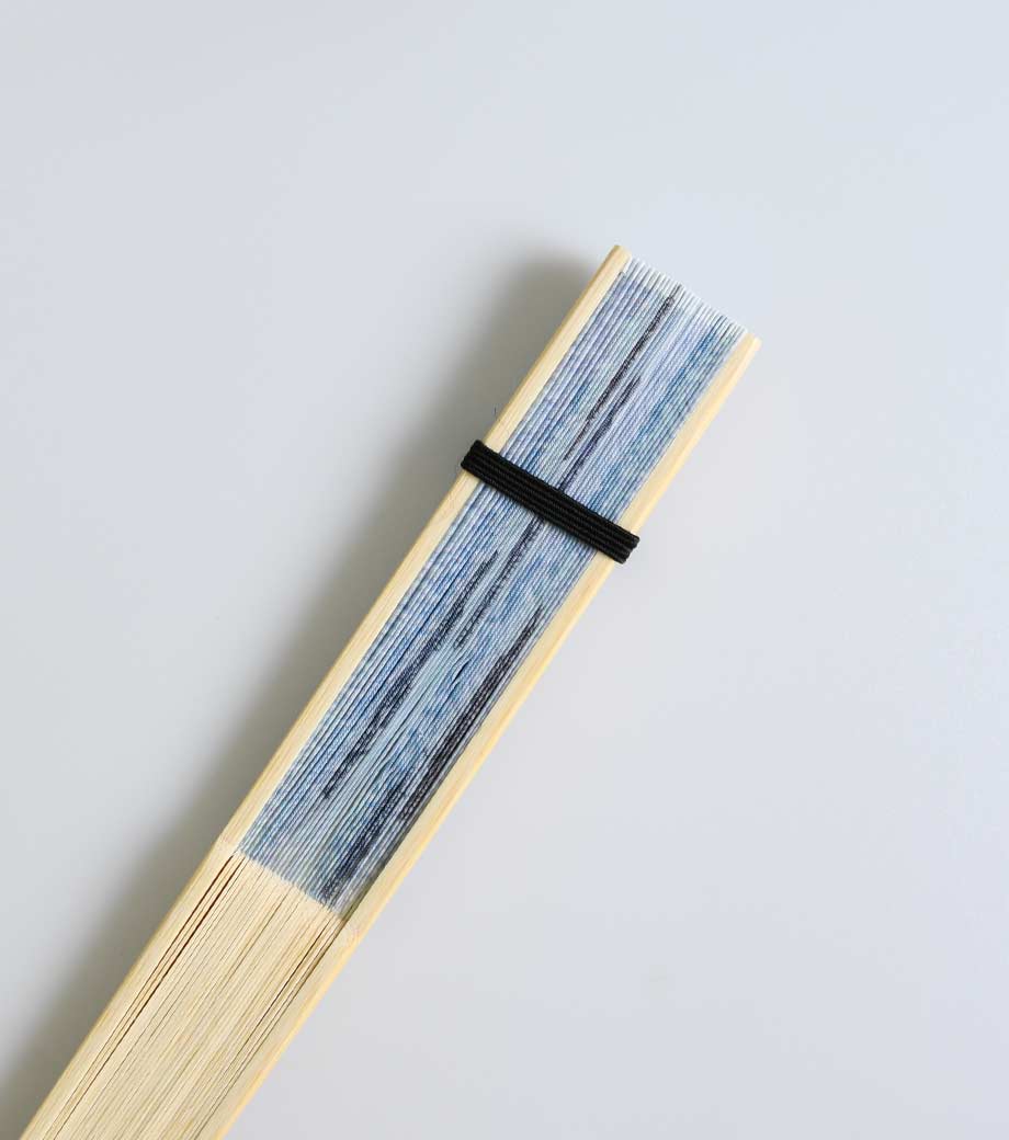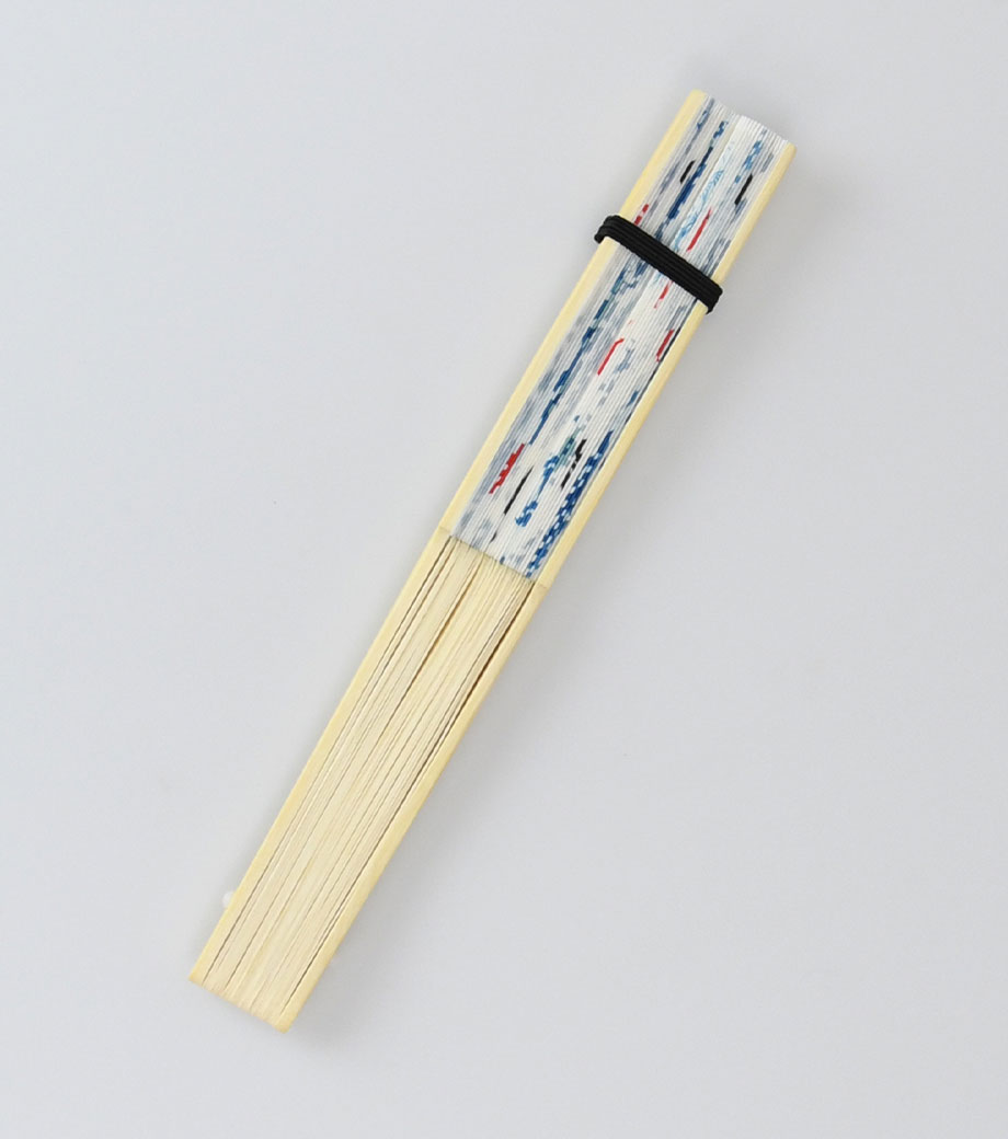 清流を泳ぐ鮎の姿を切り取ったような爽やかな扇子。骨組には清涼感のある白竹を使用し、青色の扇面と合わせ見た目も涼やかです。軽くてかさばらず、電気を使わないエコアイテム。ハンディファンのように稼働音もしないので、美術館や映画館でも周りに気を遣わず使用できます。