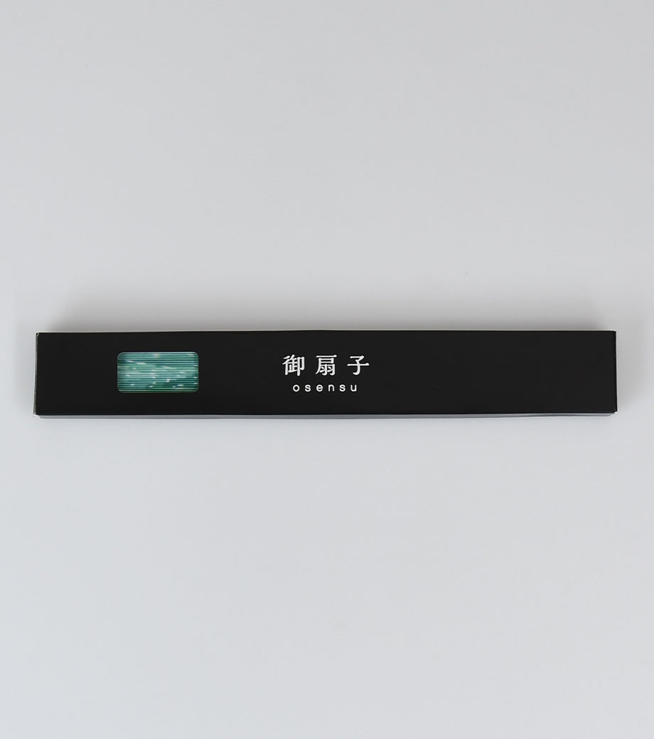 緑地にシンプルな白い曲線が描かれた扇子。暑い夏に使うのが嬉しい、さわやかなカラーです。親骨にはすす竹、中骨には白竹を使用した他とはちょっと違うデザインも素敵ですね。コンパクトに折りたためる扇子は、夏の暑さ対策に欠かせない定番グッズです。