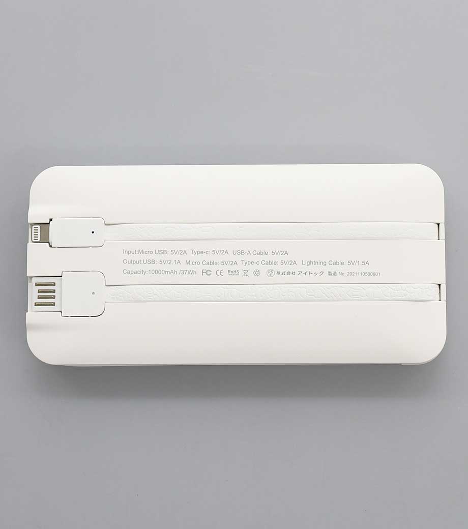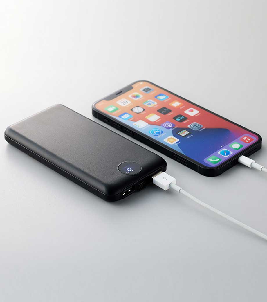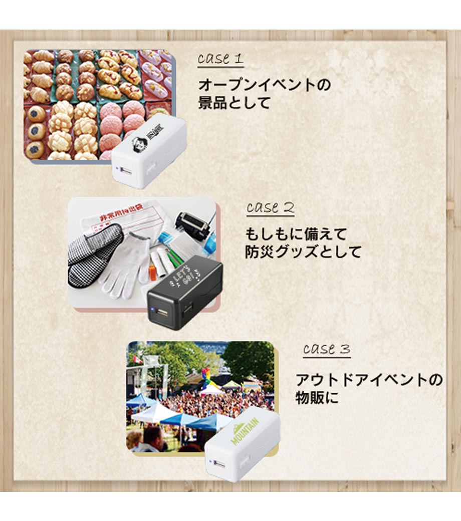 多くの人が持っているスマホを充電するアイテムで、外出時や長時間利用の必需品。年齢・性別を問わず誰でも使えるので、ノベルティや記念品としてお渡ししやすい商品です。