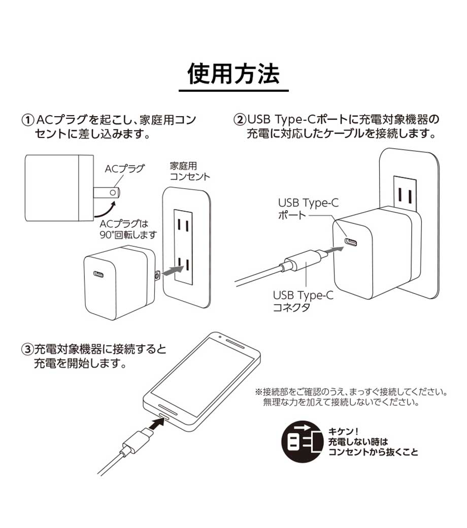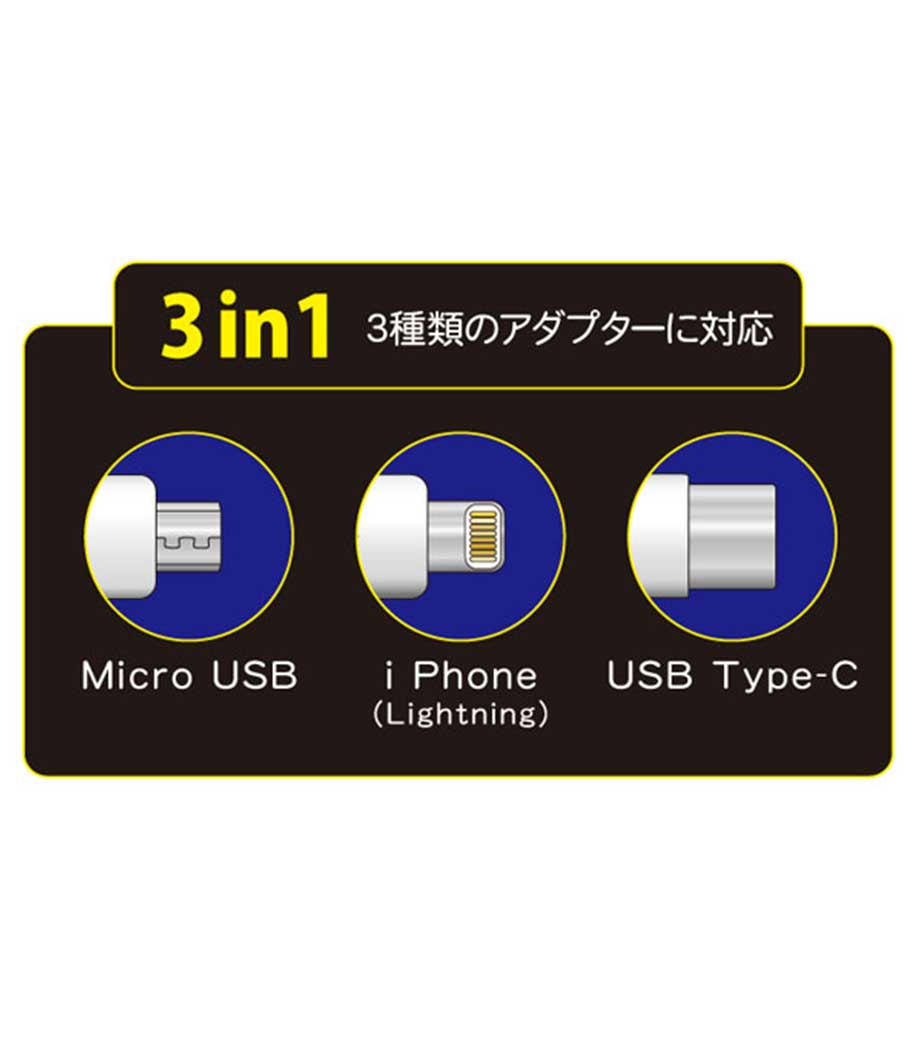 3種類の端末に対応して充電可能