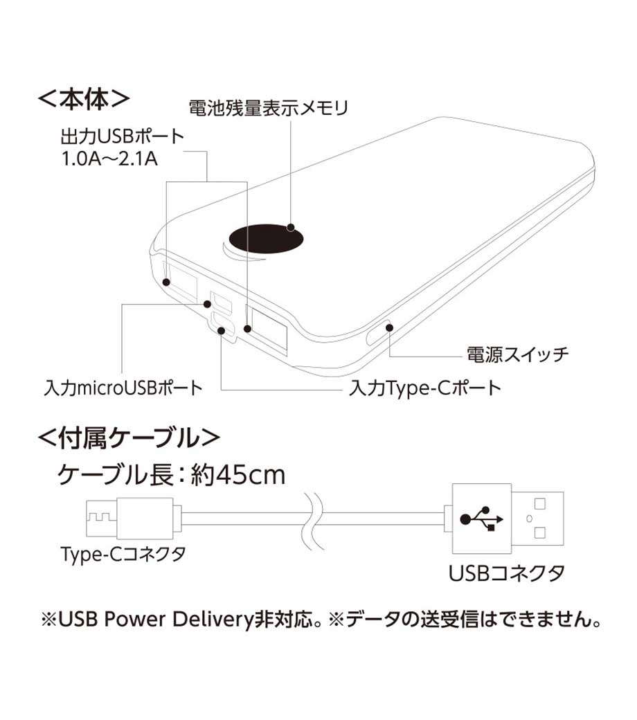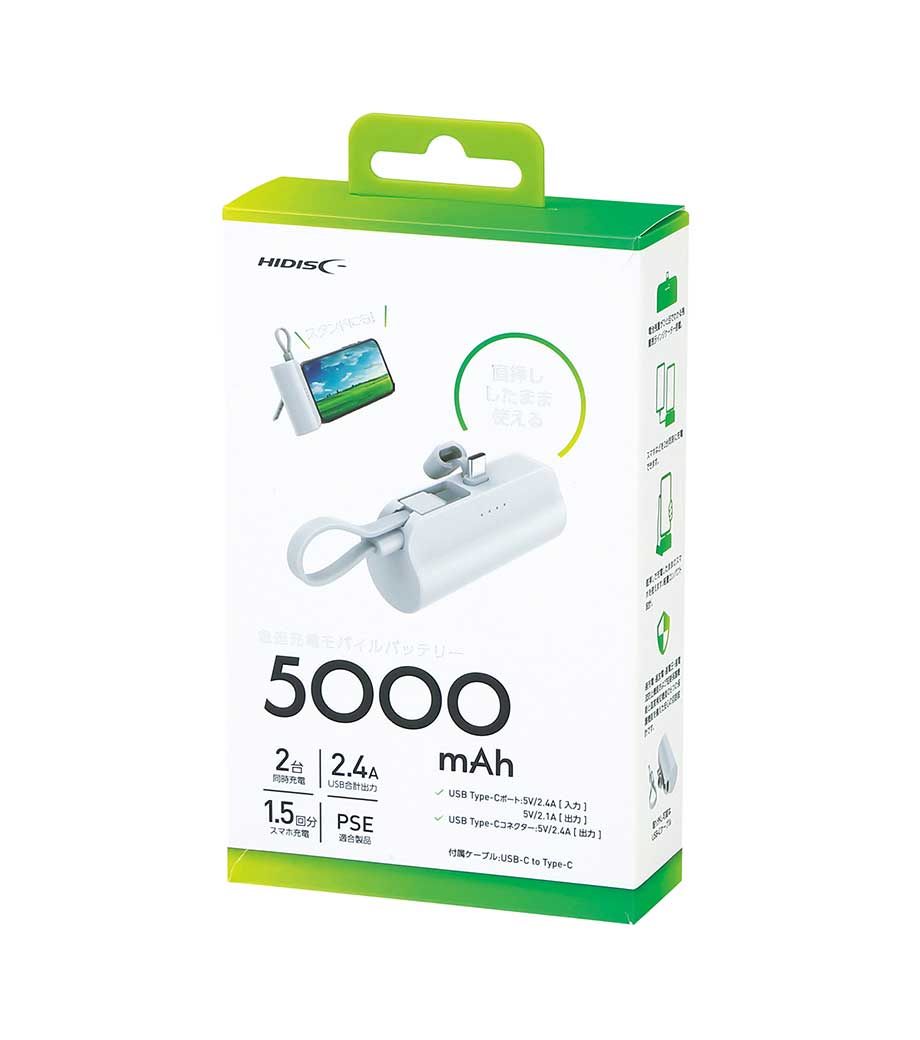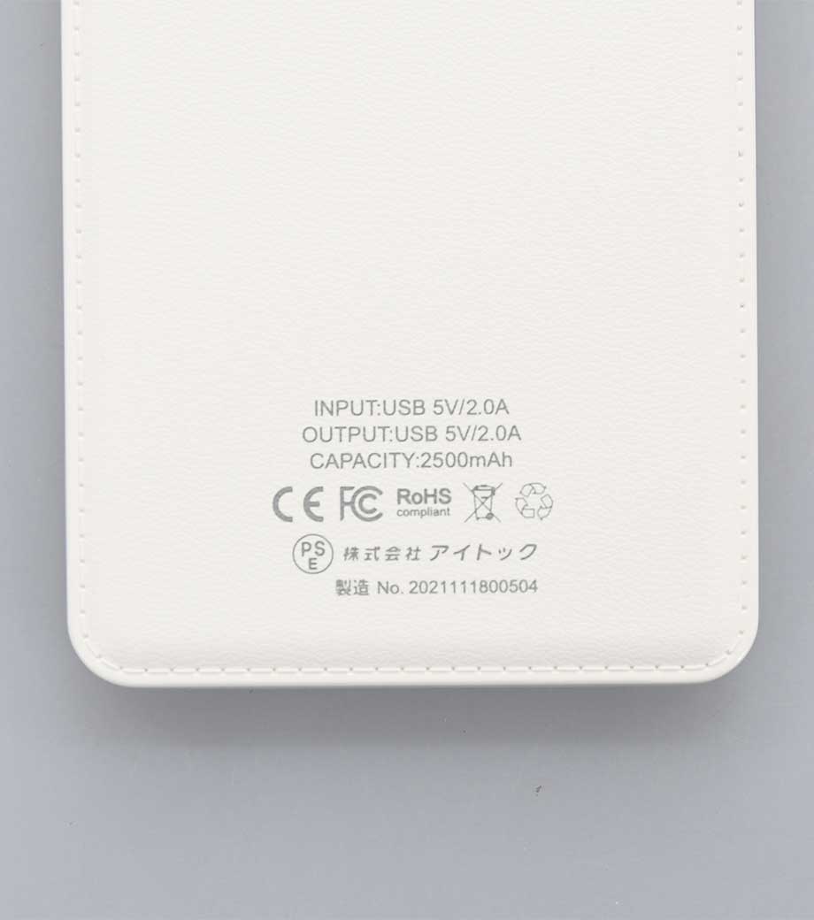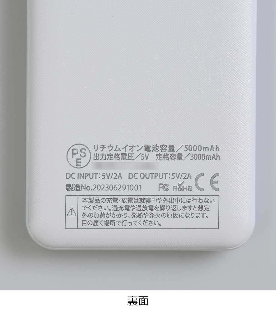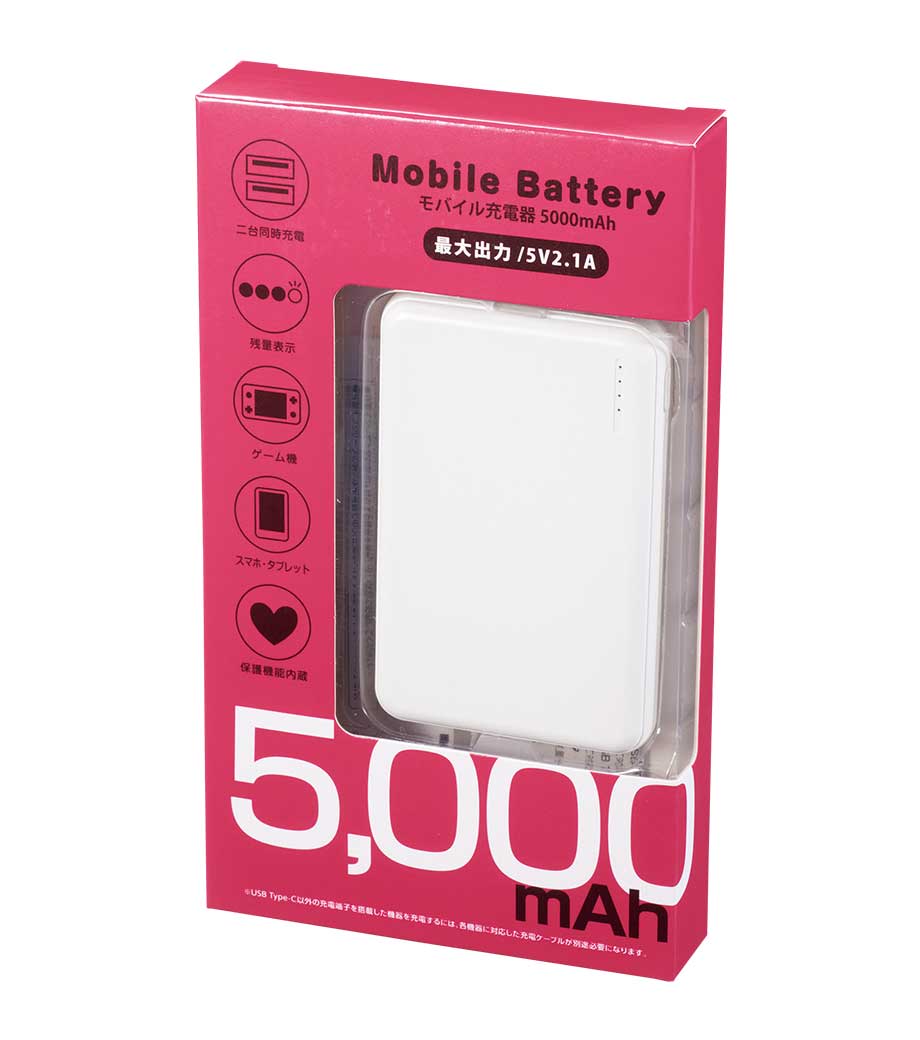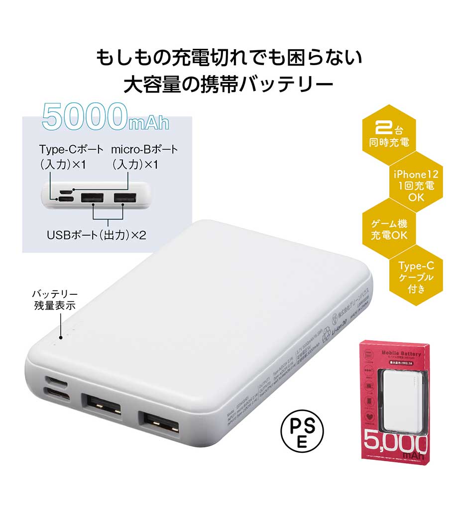 薄型軽量 急速充電モバイルバッテリー5000/PSEマーク付