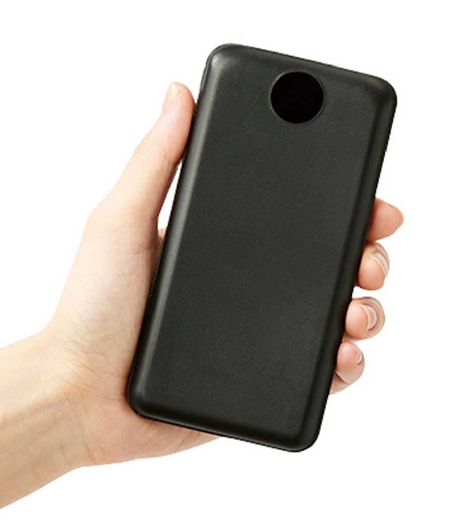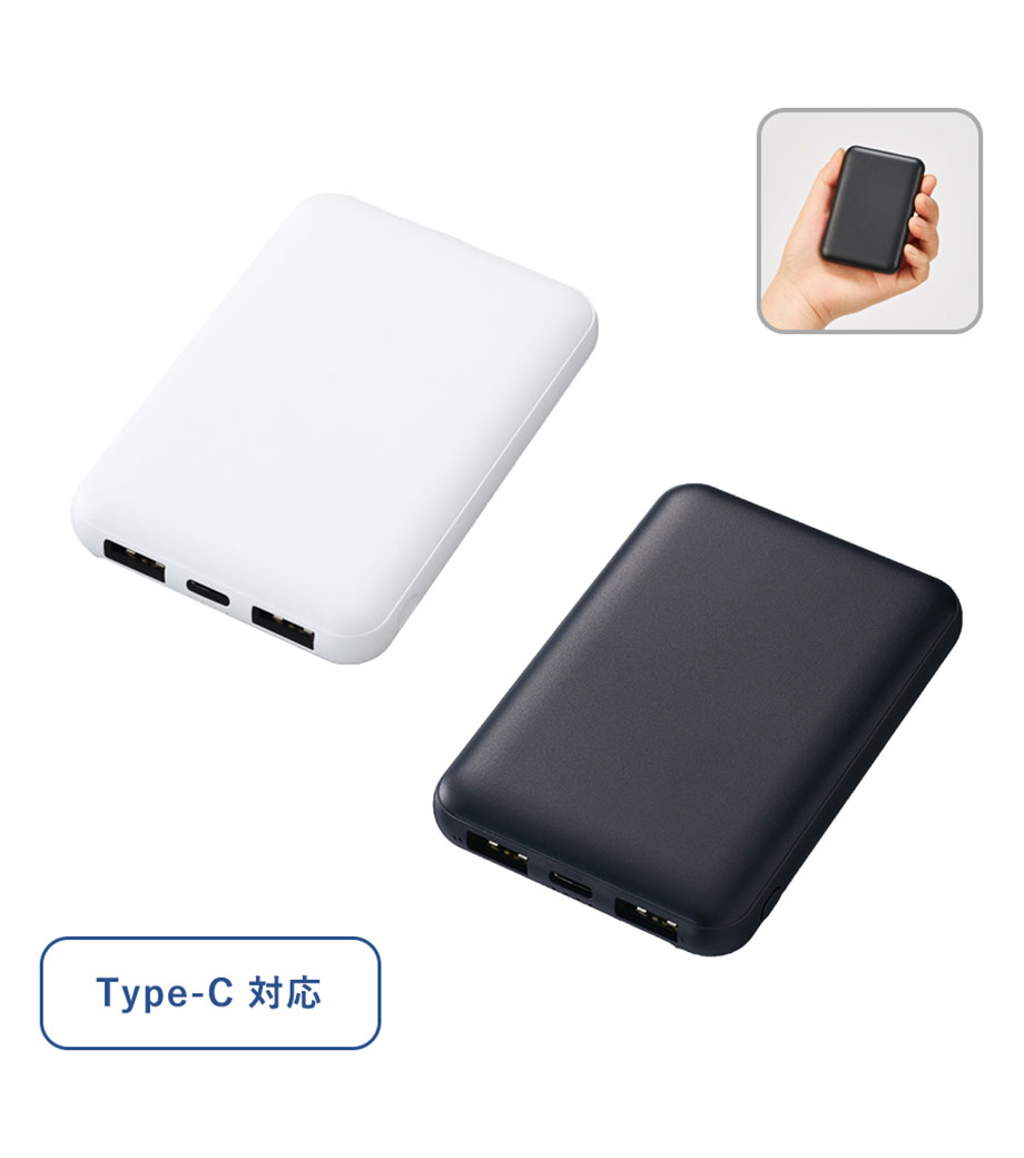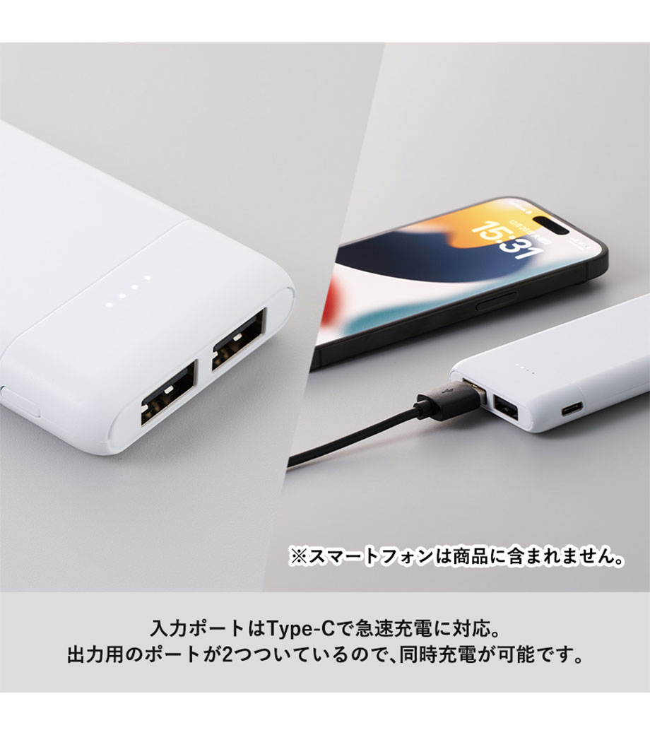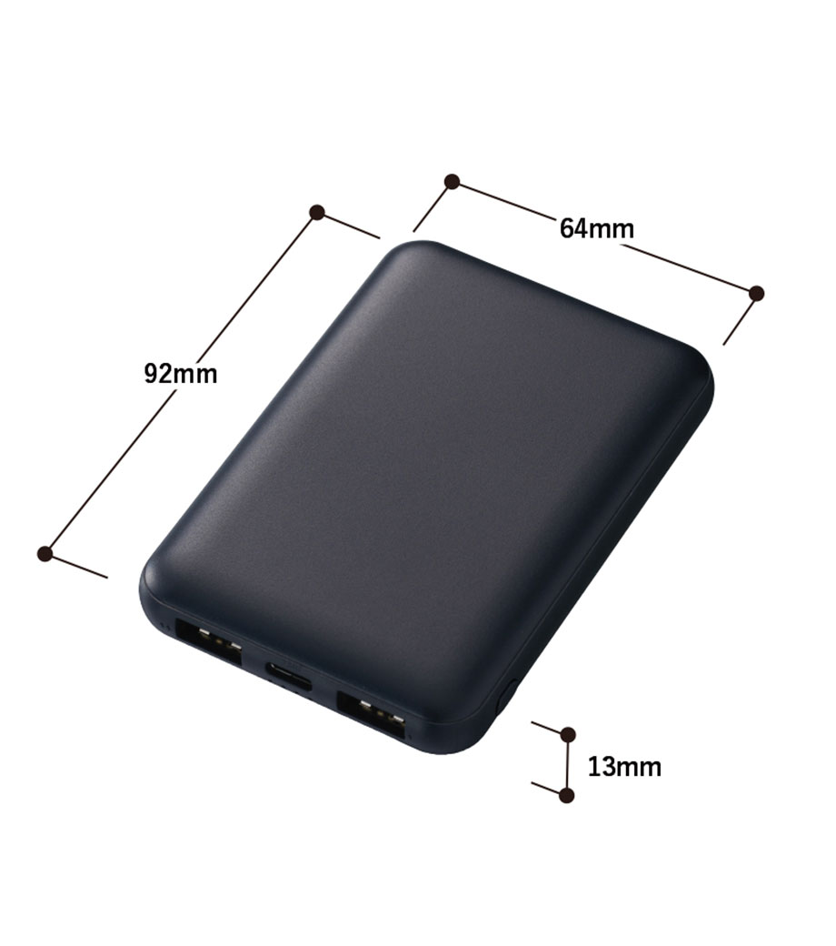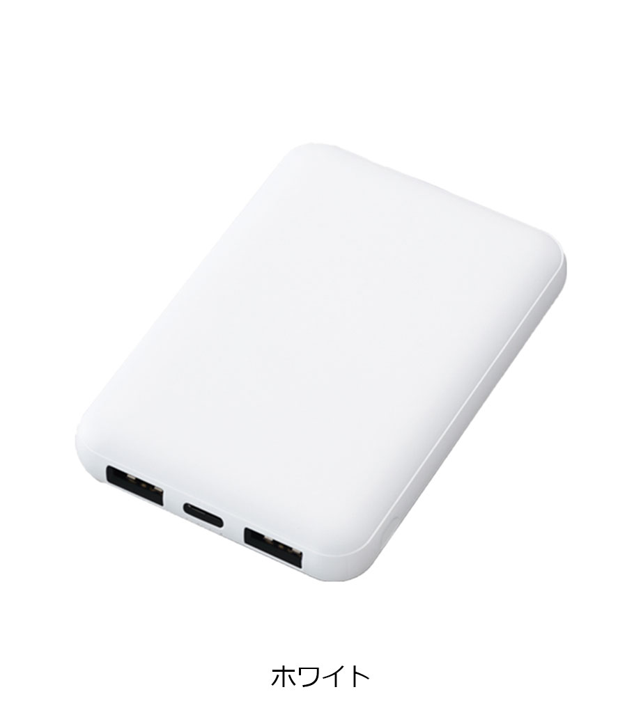 厚みわずか約13mm!世界最小クラスの急速充電対応モバイルバッテリーです。5000mAhながらも卵2個分ほどの軽さ。出力はType-Cが1ポート、Type-Aが2ポートあり3台同時充電可能。スマホ・イヤフォン・電子タバコなど複数の機器にお使いいただけます。高性能ICチップ搭載で、安心の過蓄電・過放電保護回路仕様。