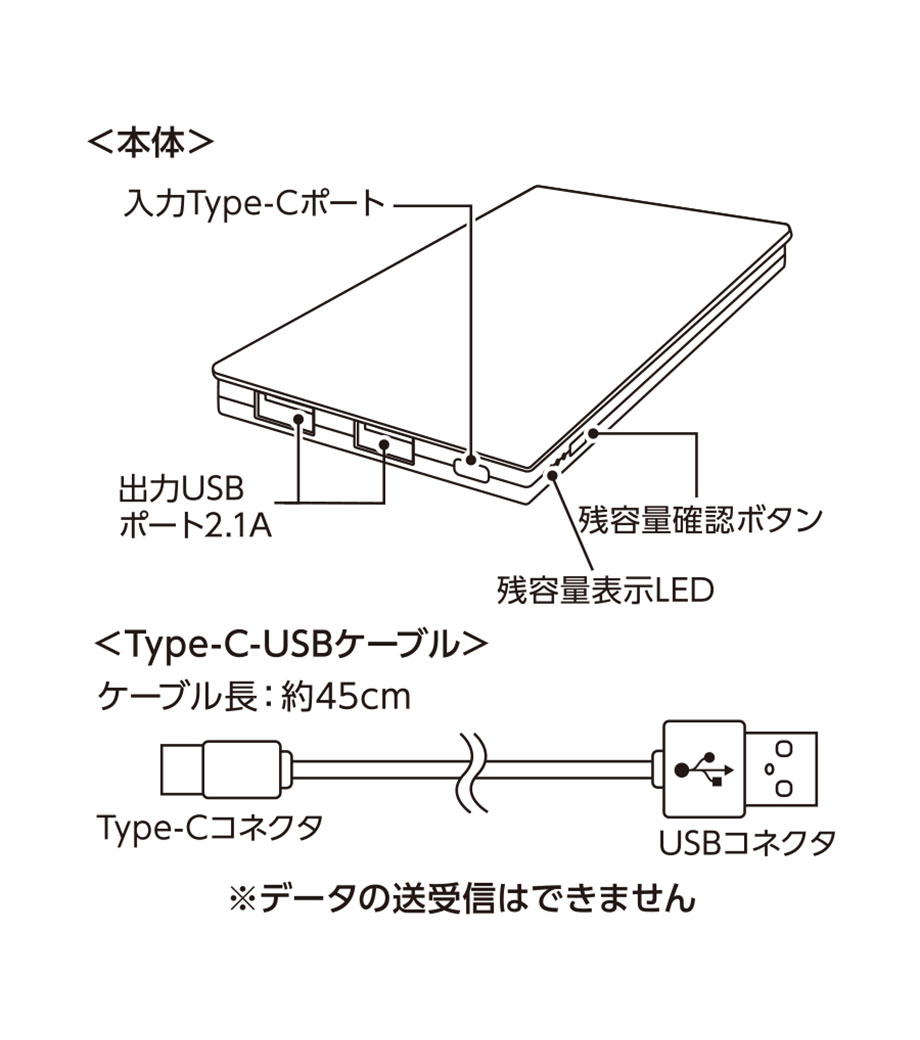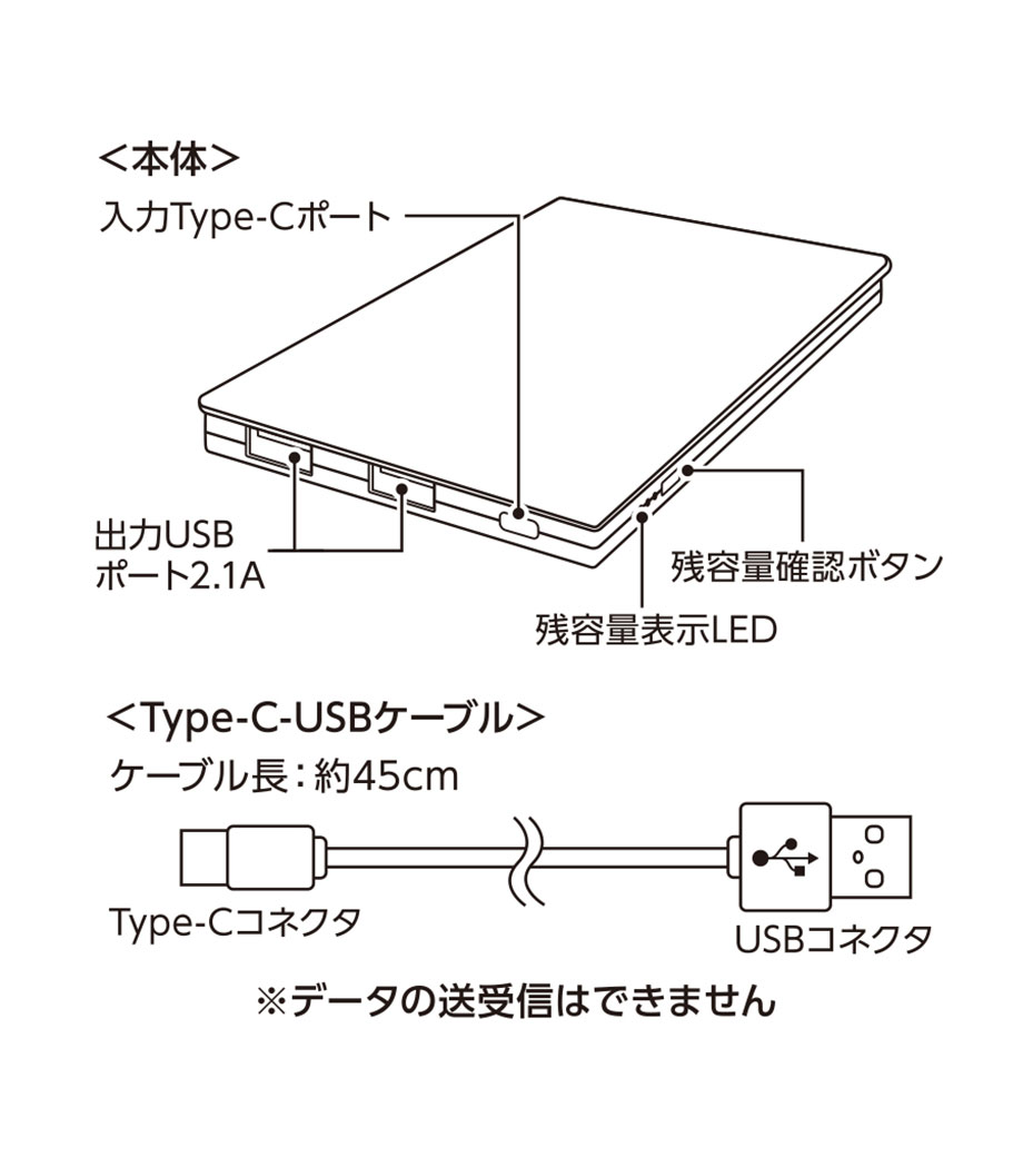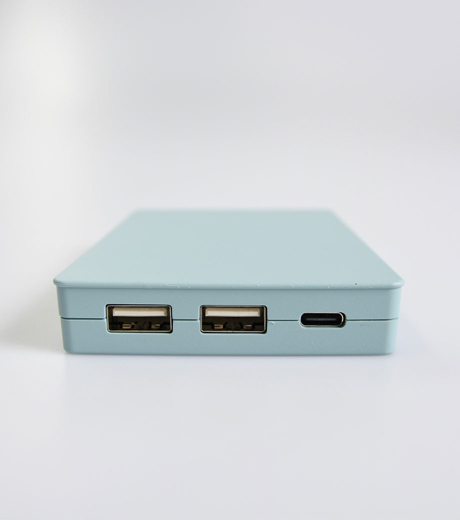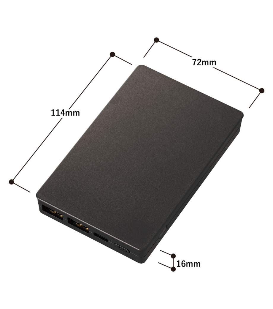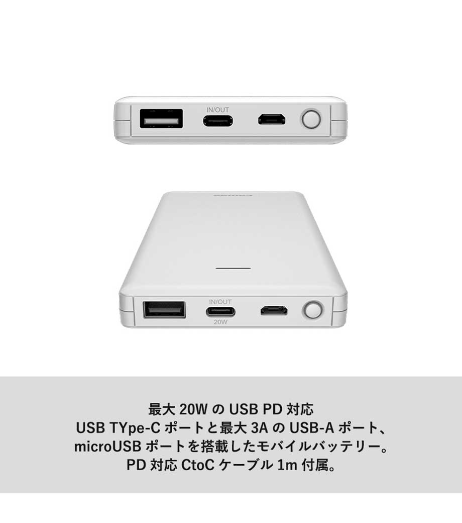 厚みわずか約13mm!世界最小クラスの急速充電対応モバイルバッテリーです。5000mAhながらも卵2個分ほどの軽さ。出力はType-Cが1ポート、Type-Aが2ポートあり3台同時充電可能。スマホ・イヤフォン・電子タバコなど複数の機器にお使いいただけます。高性能ICチップ搭載で、安心の過蓄電・過放電保護回路仕様。