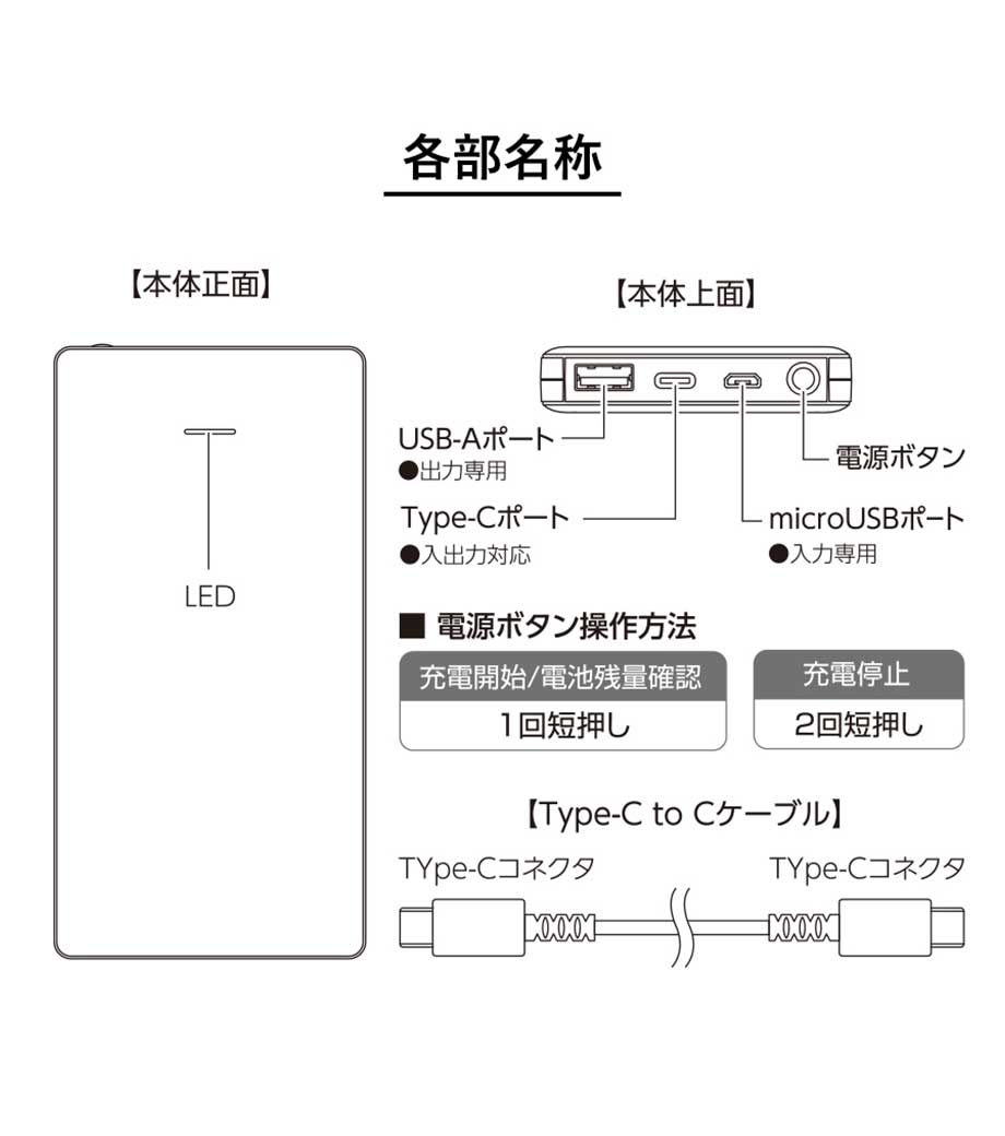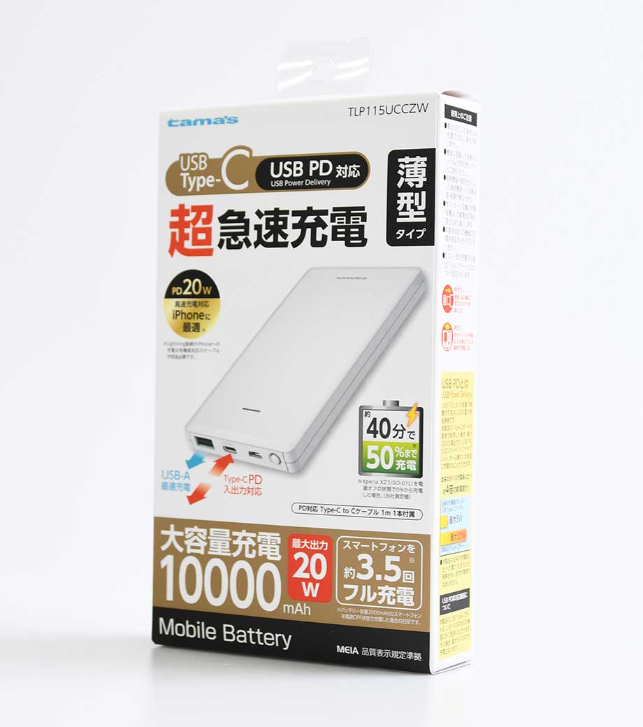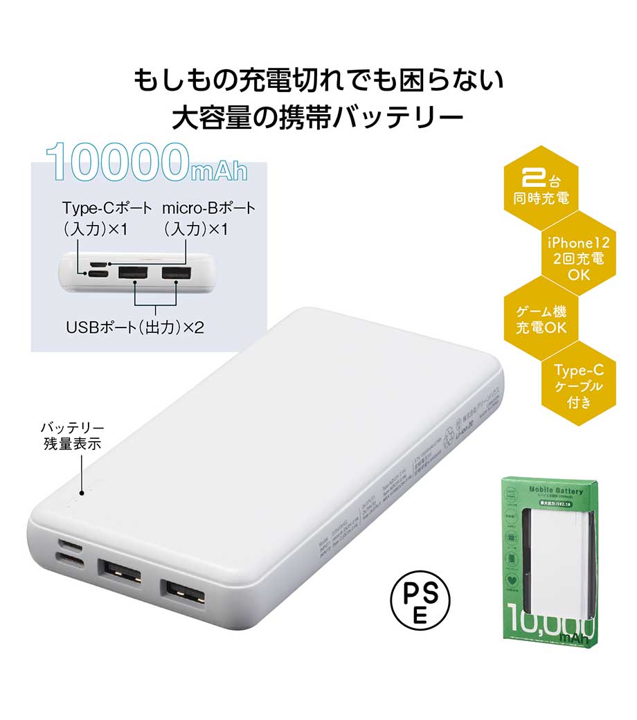 軽量小型 急速充電モバイルバッテリー10000/PSEマーク付