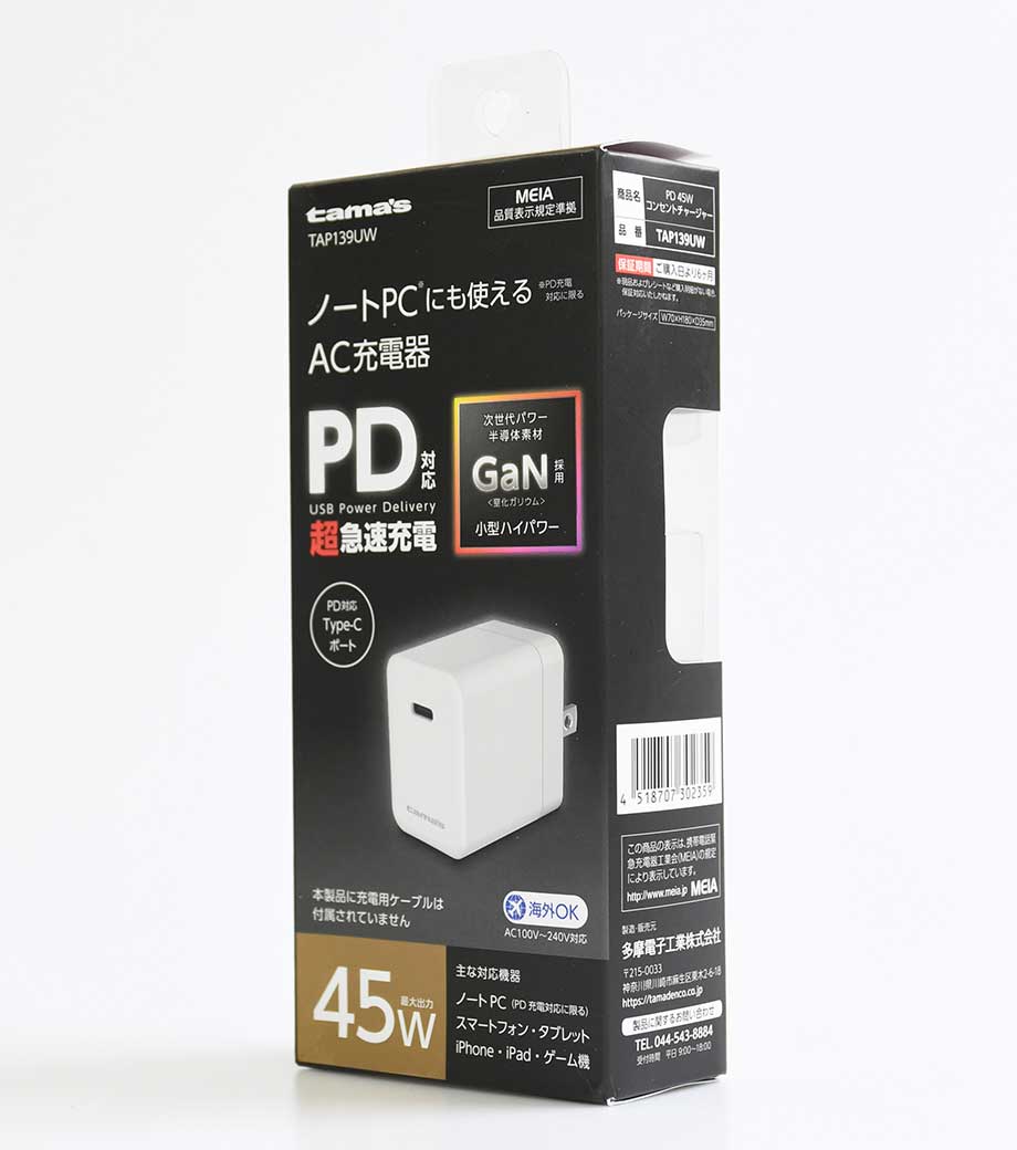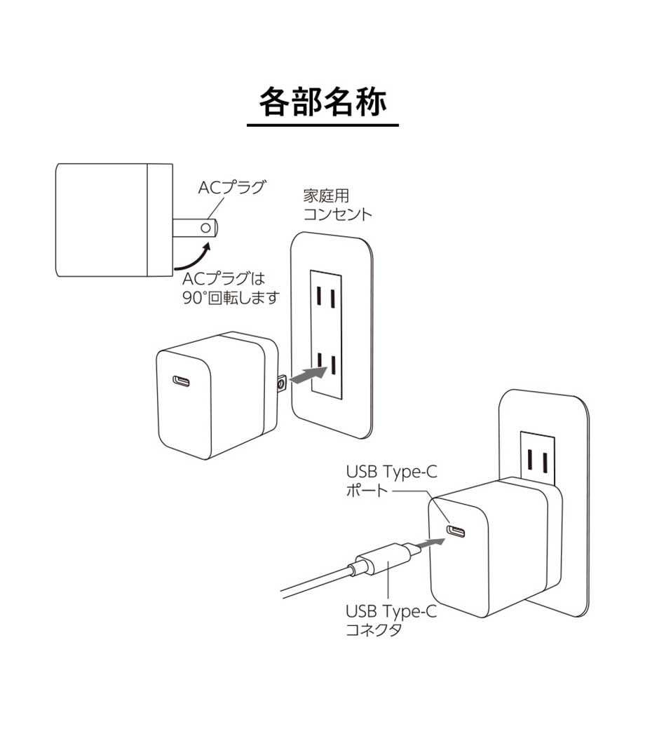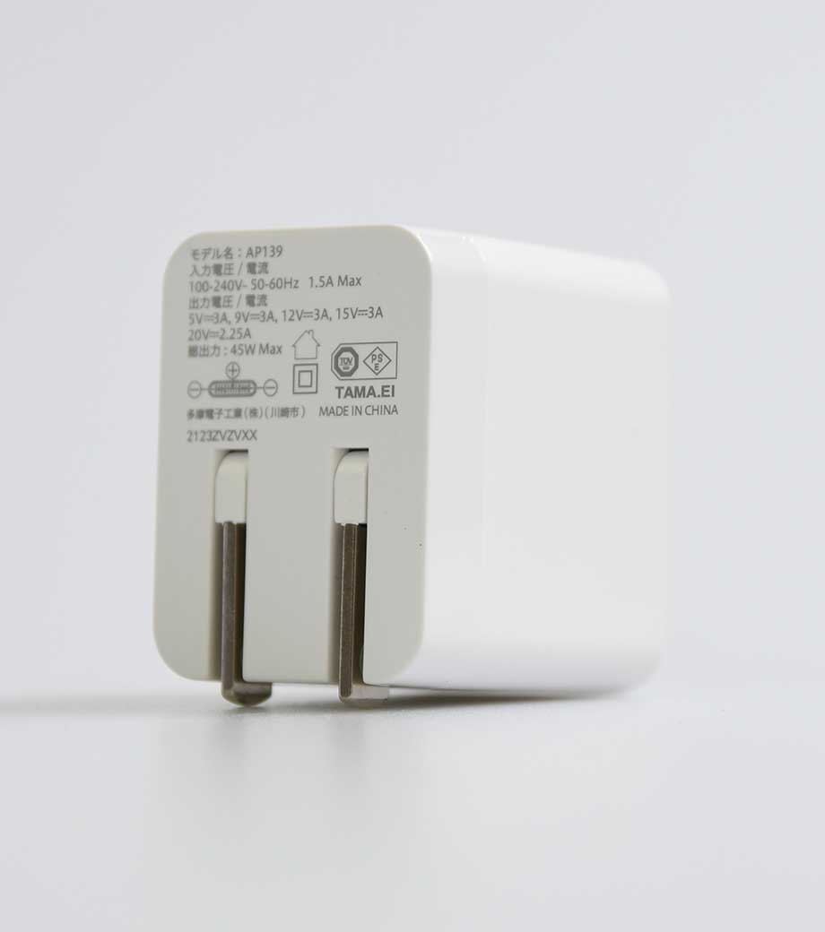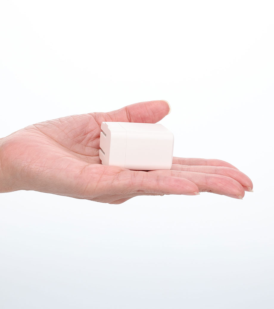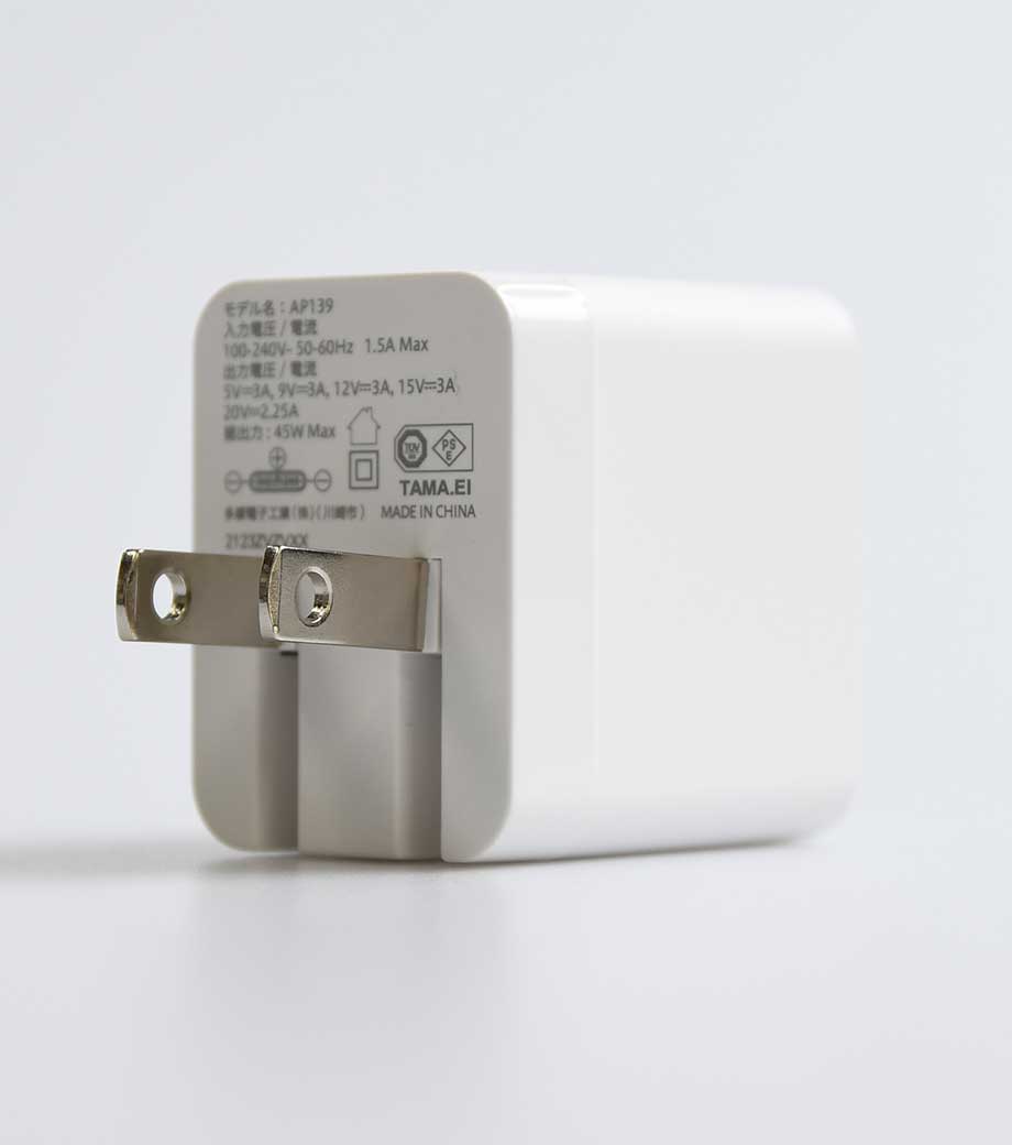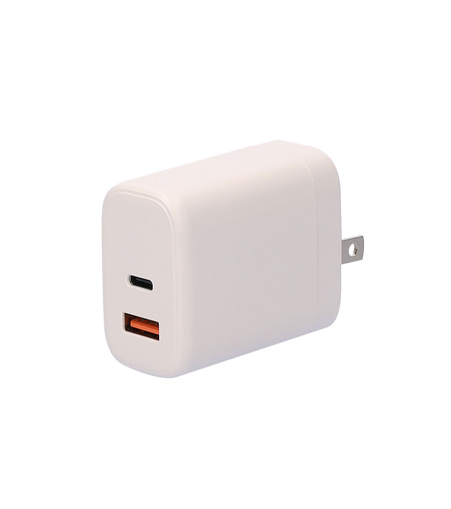 2台同時に急速充電ができるUSB-ACアダプタ。最大出力20Wでスマートフォンやタブレット、携帯ゲーム機の充電に最適です。Type-CポートはPD3.0対応、Type-AポートはQC3.0対応。折りたたみ式プラグで持ち運び便利です。