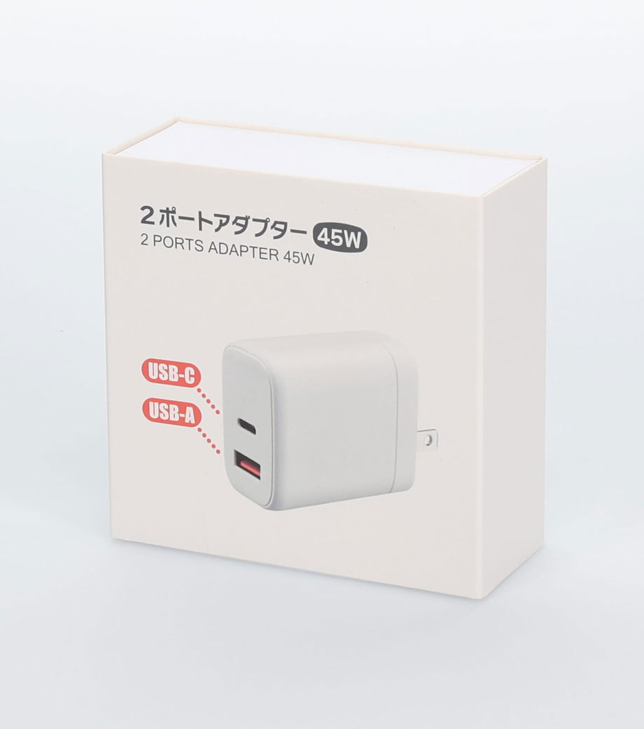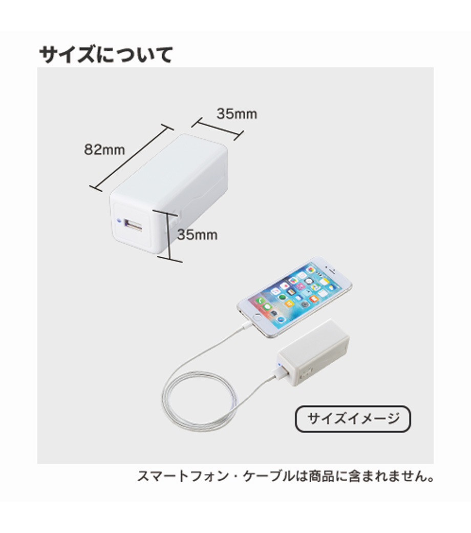 本体側面にはオリジナル印刷が可能です。今や必需品のスマホ充電に重宝するUSB-ACアダプタ。企業の記念品やオリジナルグッズ制作にいかがでしょうか。
