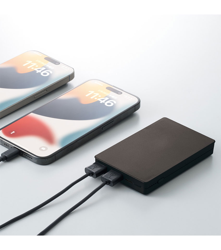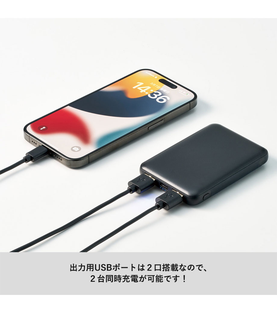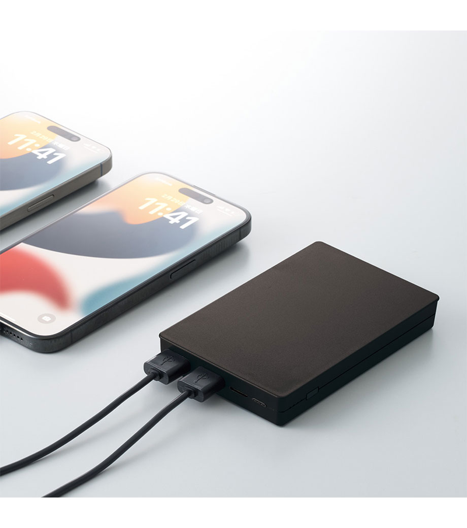 出力ポートが複数あるモバイルバッテリーの場合、2台のスマホを同時に充電することができます。