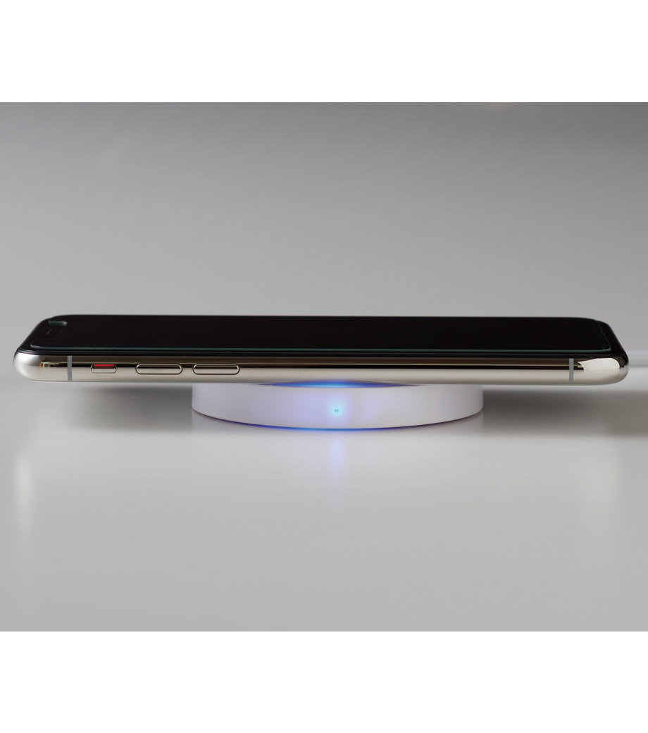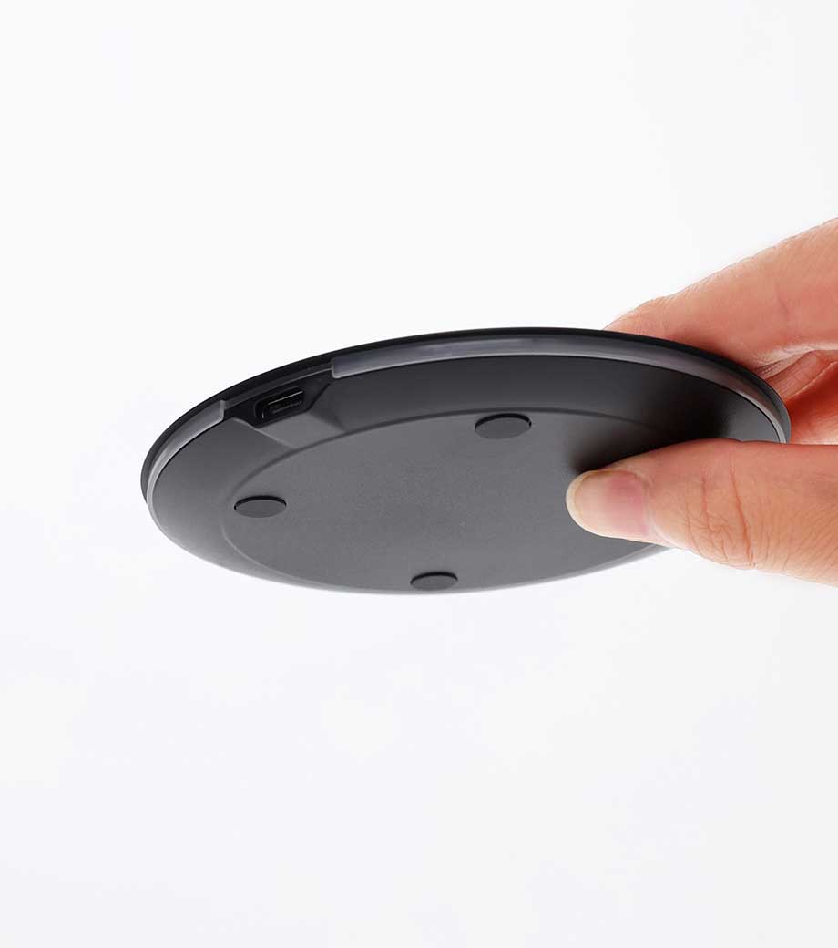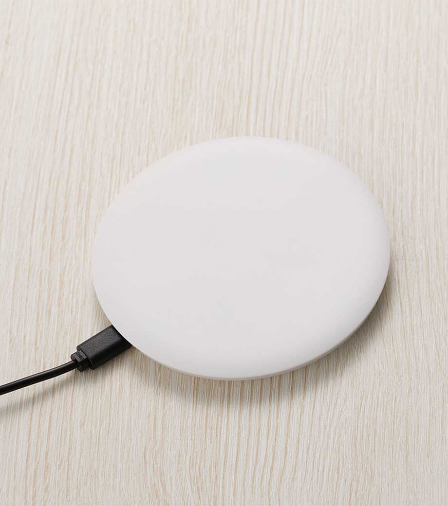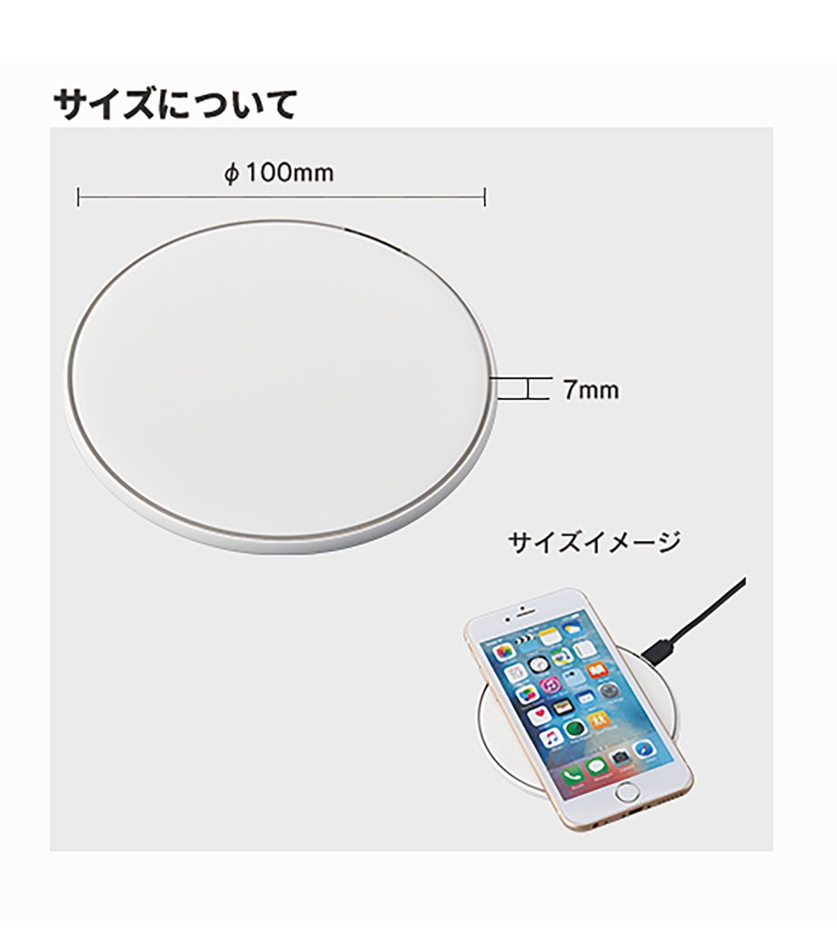 スマホにコードを繋ぐことなく充電できるパッド式Qi(チー)標準ワイヤレス充電器。機種によって最大出力15W対応。本体周りがぐるっと充電ランプになっていて使用状況がわかりやすいです。裏面にはすべり止め付きで、安定してデスクに置いておけます。
