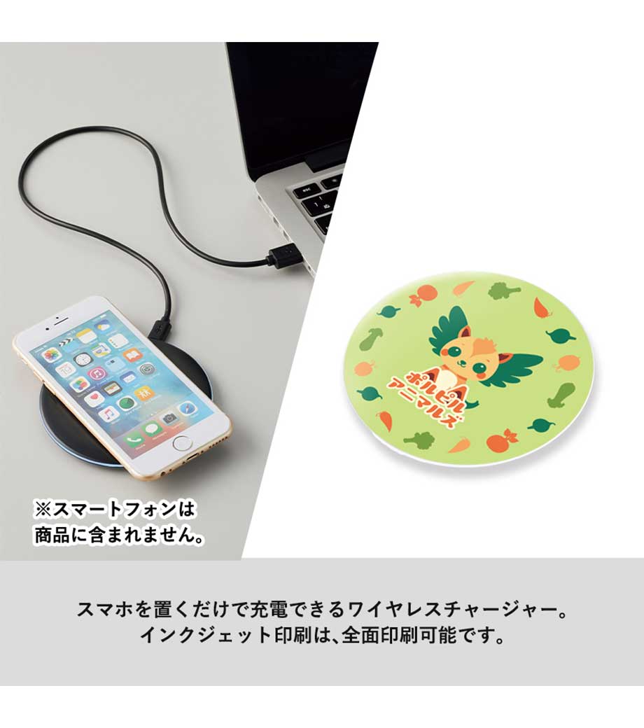 Qi(チー)対応スタンドワイヤレス充電器5Wは、スマートフォンを置くだけで充電出来るアイテムです。スタンド式は自然と画面が見やすい角度になるので、電話やメールなどの連絡もキャッチしやすく便利です。スマートフォンは縦置きのほか、動画が見やすい横置きにもできます。充電しながら画面の操作ができるので、ウェブ会議やリモートワークにおすすめ。ランプは赤が通電、青が充電の表示です。名入れは1色、2色印刷が可能。社名やロゴを入れて、周年記念品や企業ノベルティグッズに選ばれます。