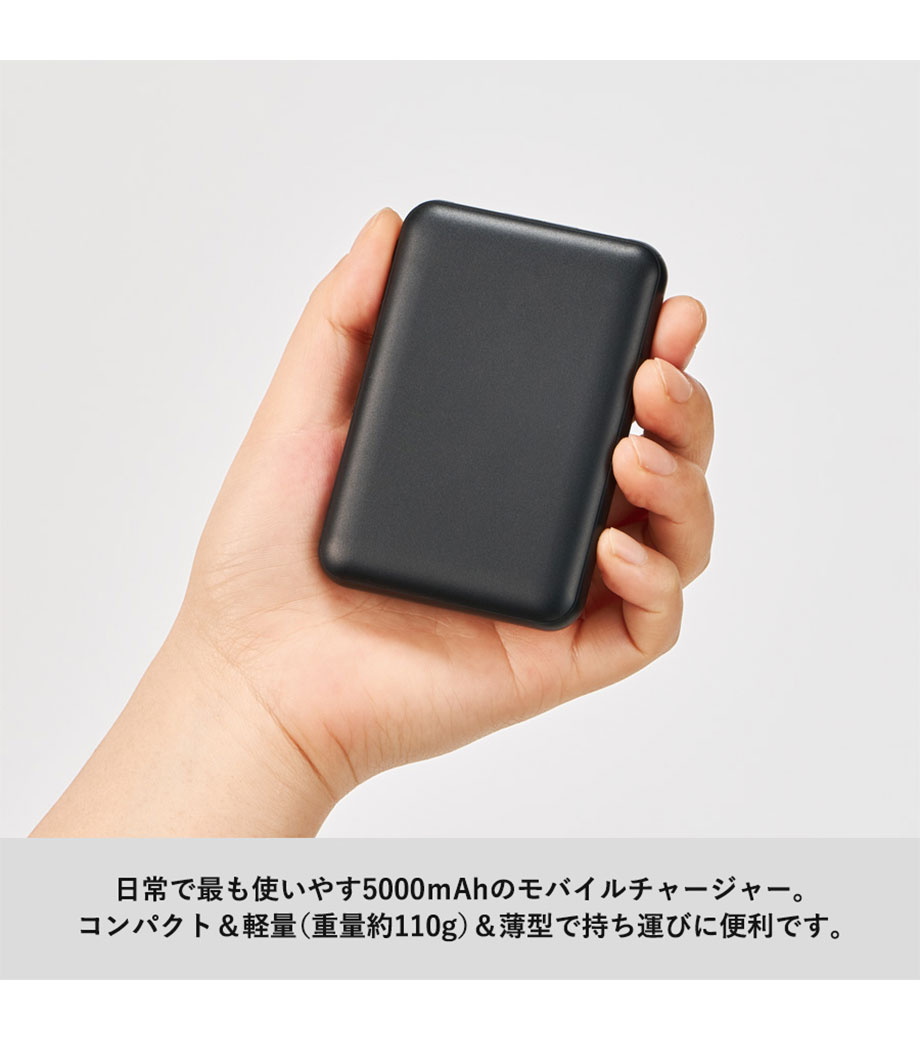 マグネット対応ワイヤレスモバイルチャージャー5000/PSEマーク付