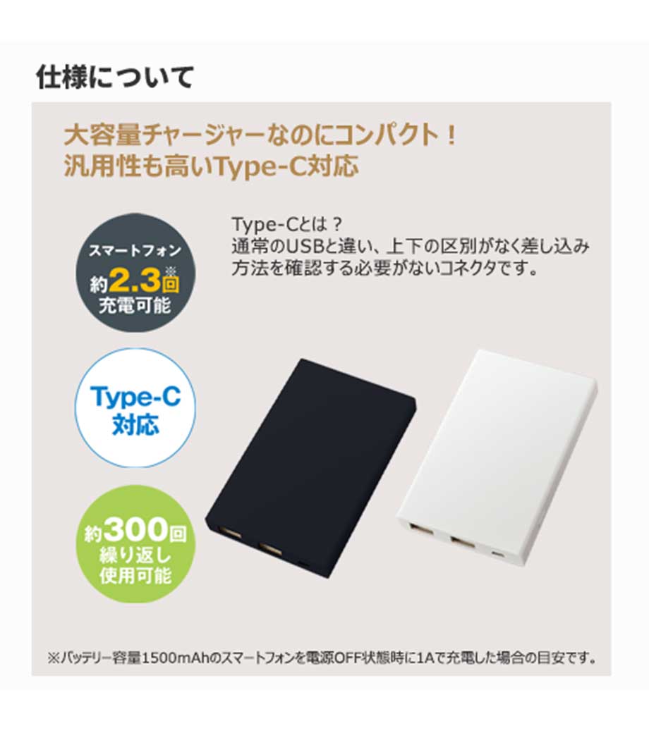 タブレットやゲーム機の充電、長期持ち歩く出張・旅行には『大容量で薄型のタイプ』がオススメです。
