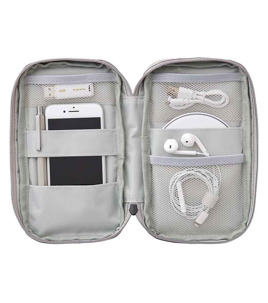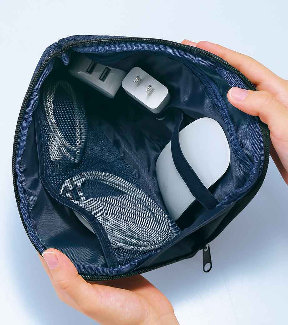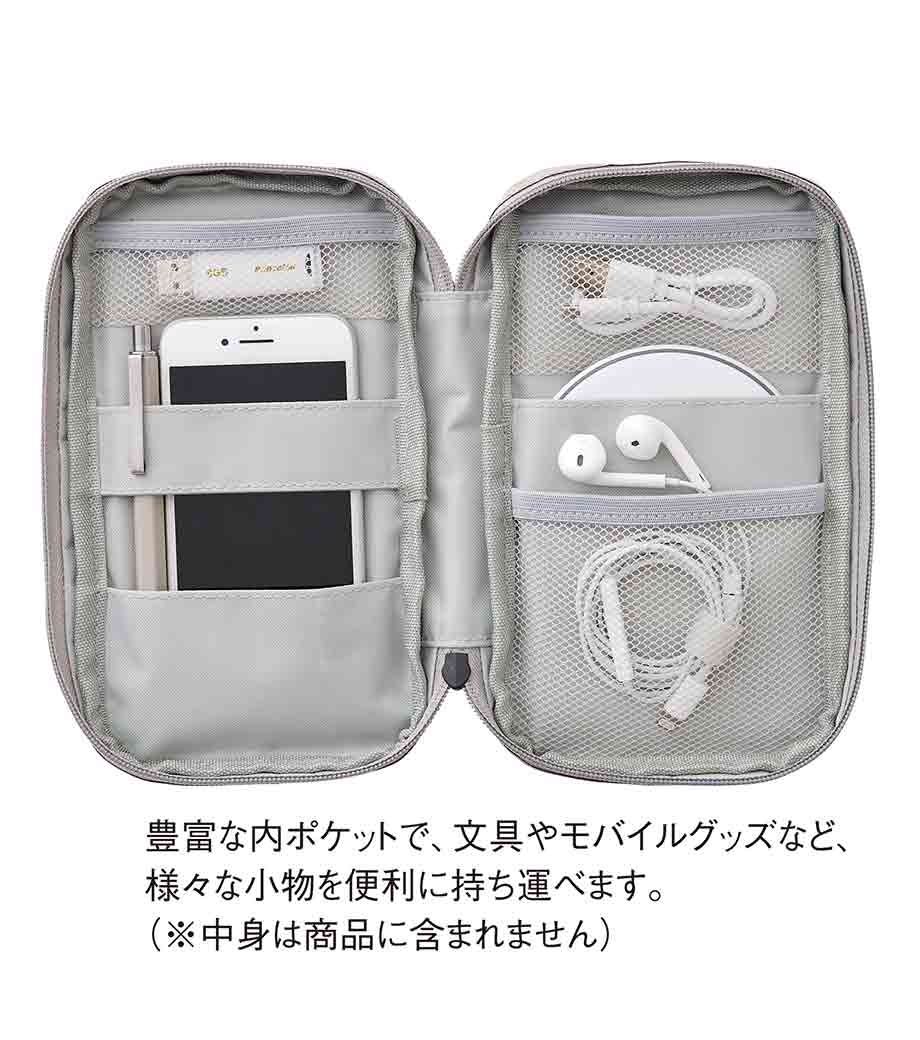 モバイルアクセサリーケース(S)はノートPCやスマートフォンなどに必要なモバイルアクセサリーをまとめて収納。かさばるコードやイヤホン、充電器などをスマート&便利に持ち運べます。コンパクトサイズなので、ミニバッグやショルダーバッグに入り、外出にも重宝するモバイルケースです。