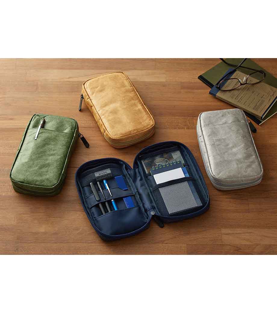 日々持ち歩くスマホや充電器、文具などを、スマートに整理整頓できるポーチです。タイベック素材は耐久・耐水性が高く、軽量で持ち運びにもぴったり。仕切りやメッシュポケットで細かいものも迷子にならず、さっと取り出せます。裏側にポケットが付いているのもうれしいポイントです。