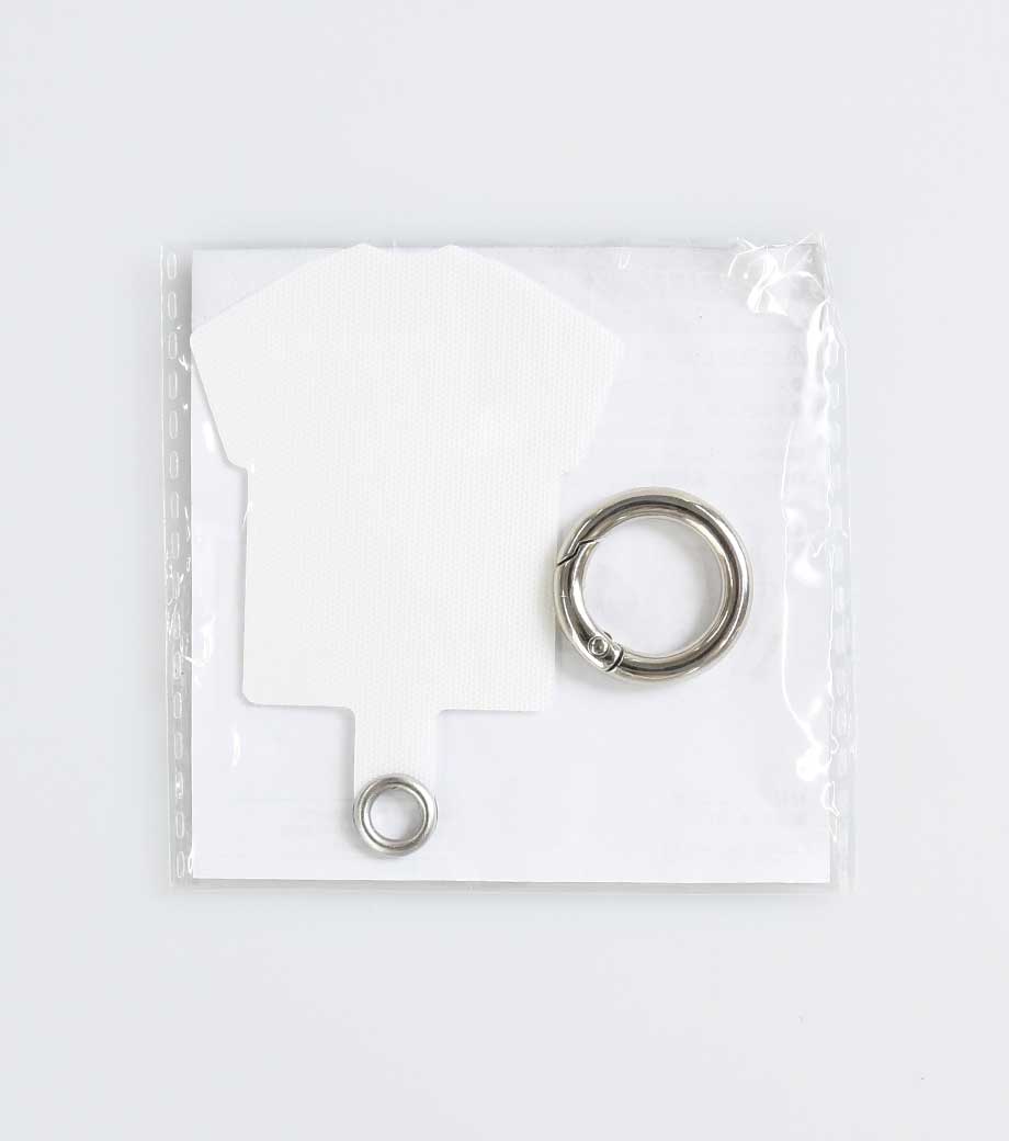スマホとスマホケースの間に挟むだけで、キーホルダーやネックストラップが簡単に取り付けられる便利アイテム。リングに指を引っかければスマホリングにもなります。激安価格でフルカラー印刷できるので、低予算でPR効果の高いノベルティを制作したい方にぴったり!シンプルな1色印刷も可能です。