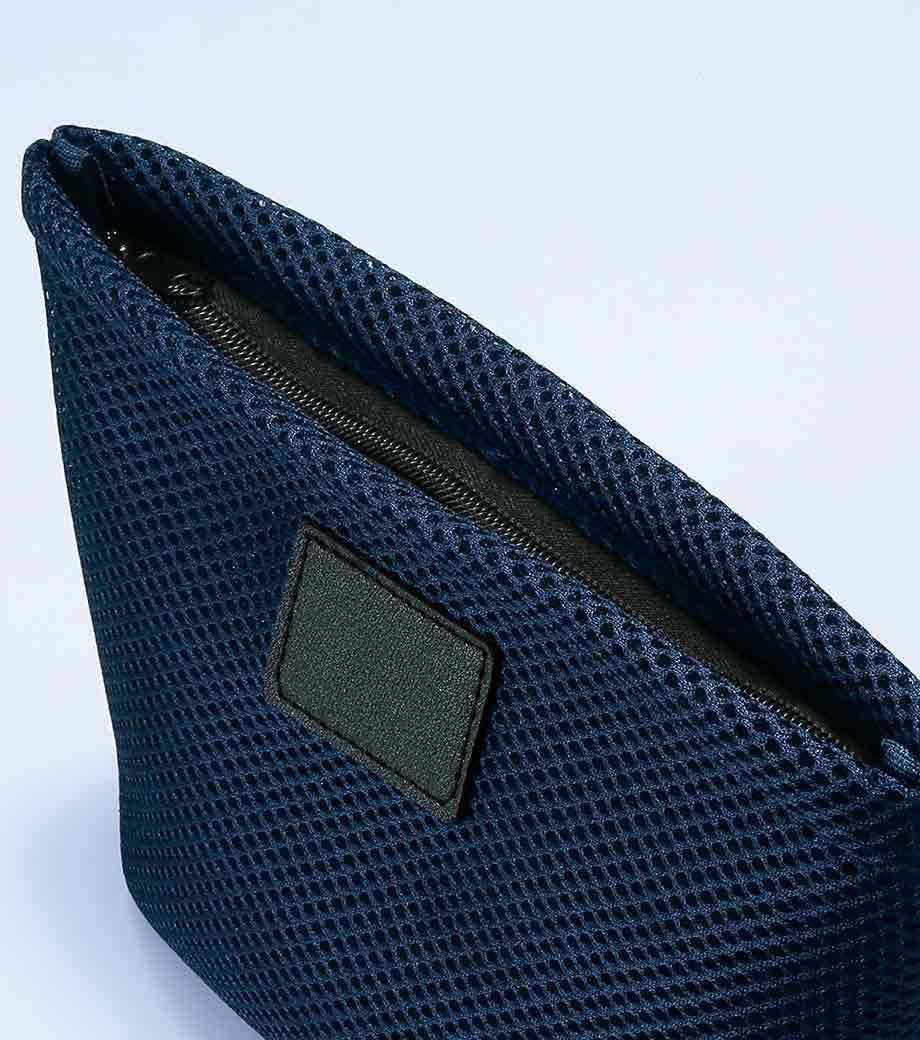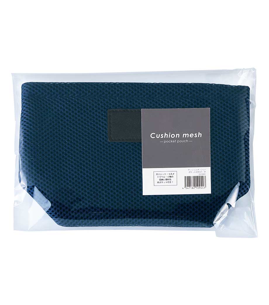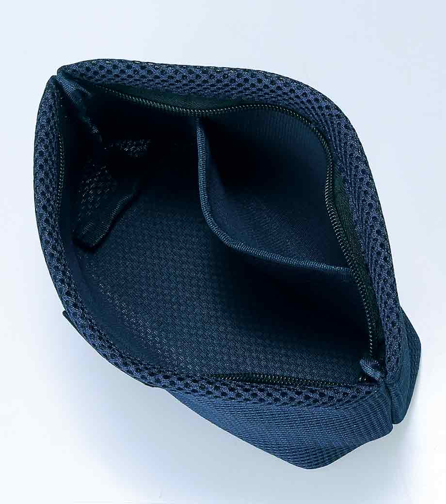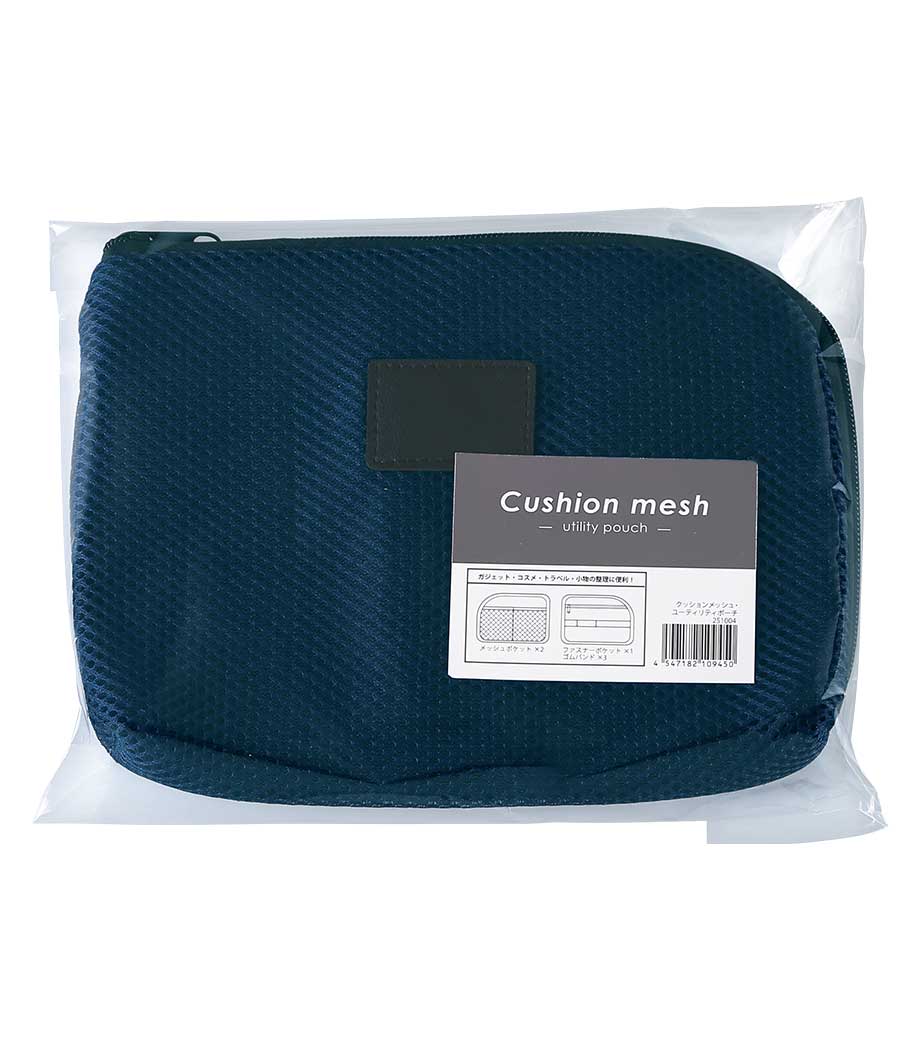 クッション性の高い肉厚なメッシュ生地を使用した、シンプルなマチ付きポーチです。コスメやガジェット類などこまごましたアイテムを収納でき、整理に便利な内ポケットが付いています。自立するので出し入れしやすいのも嬉しいポイント。ファスナーが間口の内側にあり、バッグに入れても他の荷物を傷つけにくいです。普段使いはもちろん旅行用ポーチにもおすすめ。