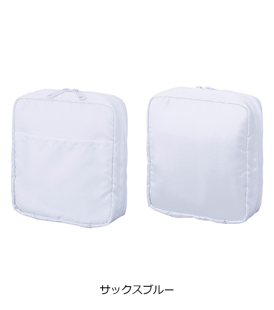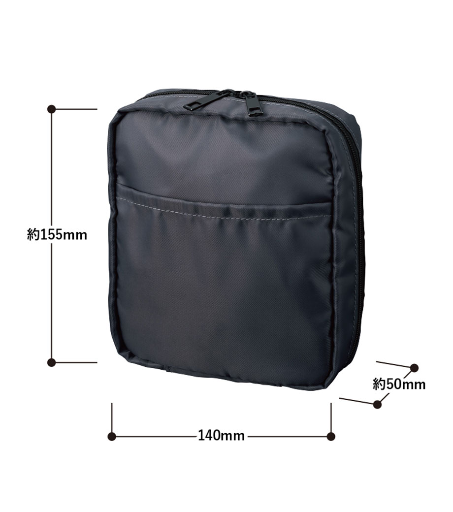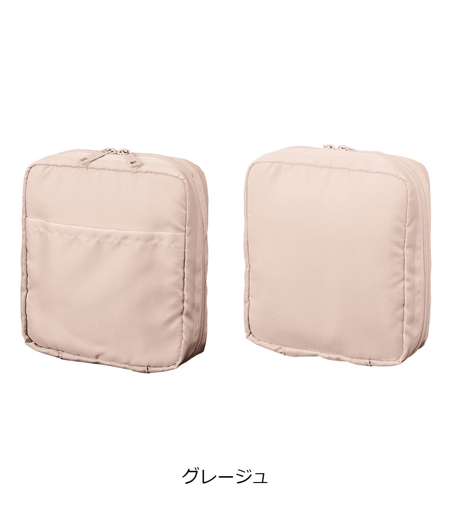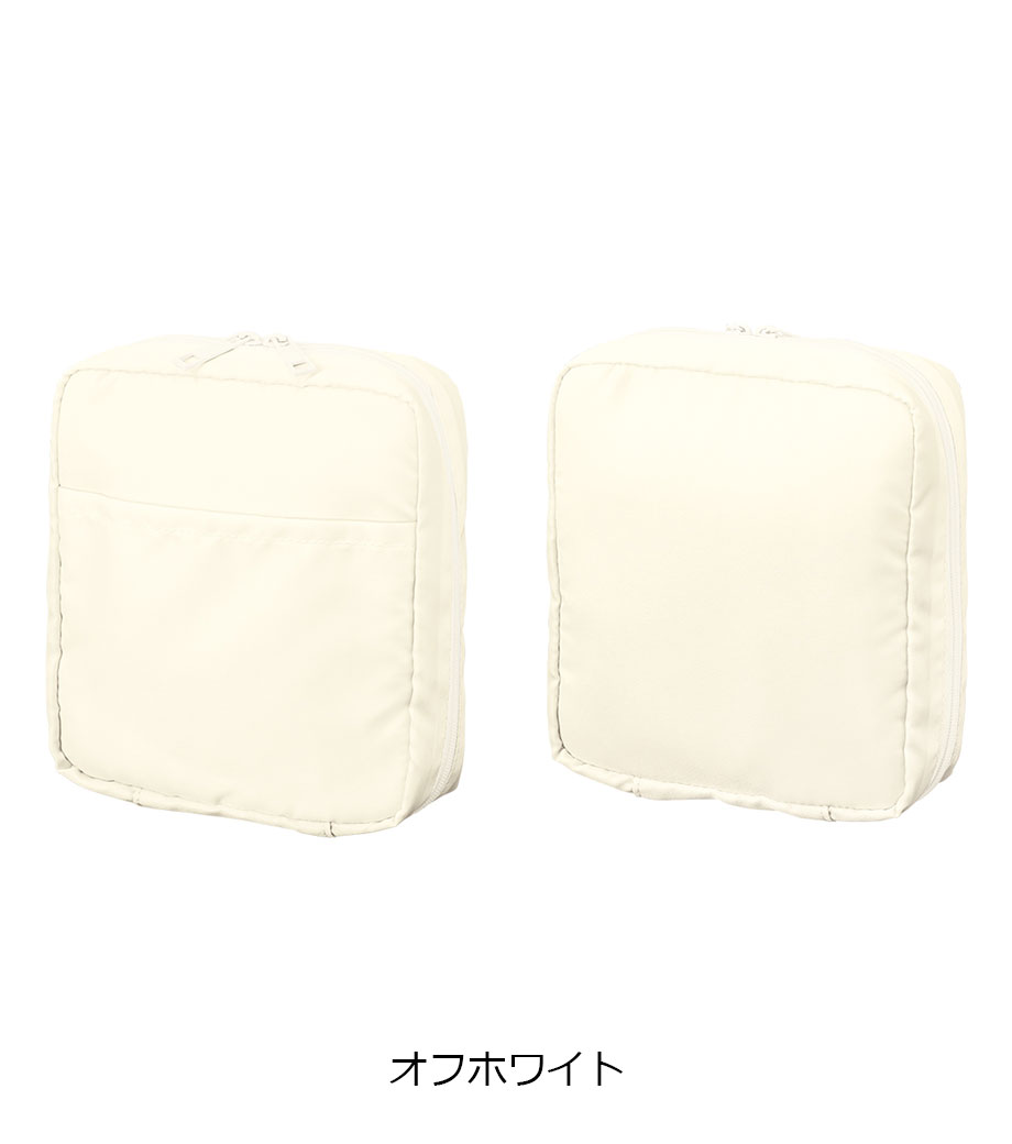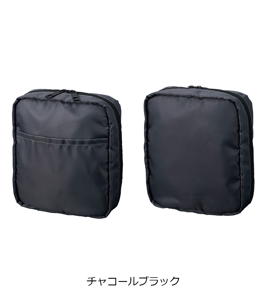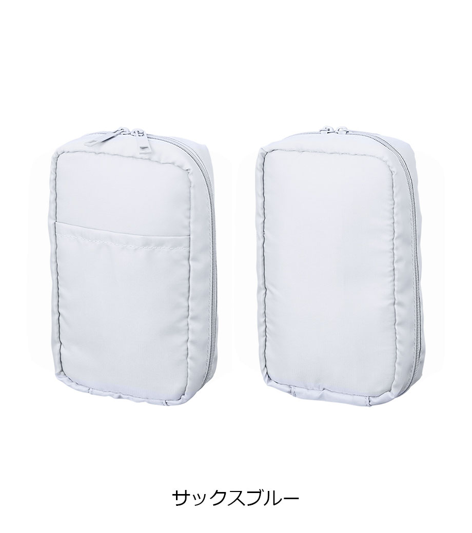 マイルドなカラー展開のしなやかなポリエステル素材のスクエア型ポーチ。内ポケットが6つ付いており、マチ付きでモバイルバッテリーやイヤホンなどガジェット類、コスメや文具もすっきり整理できます。口が大きく開き自立、物の出し入れもスムーズ。普段使いはもちろんトラベルにも最適です。
