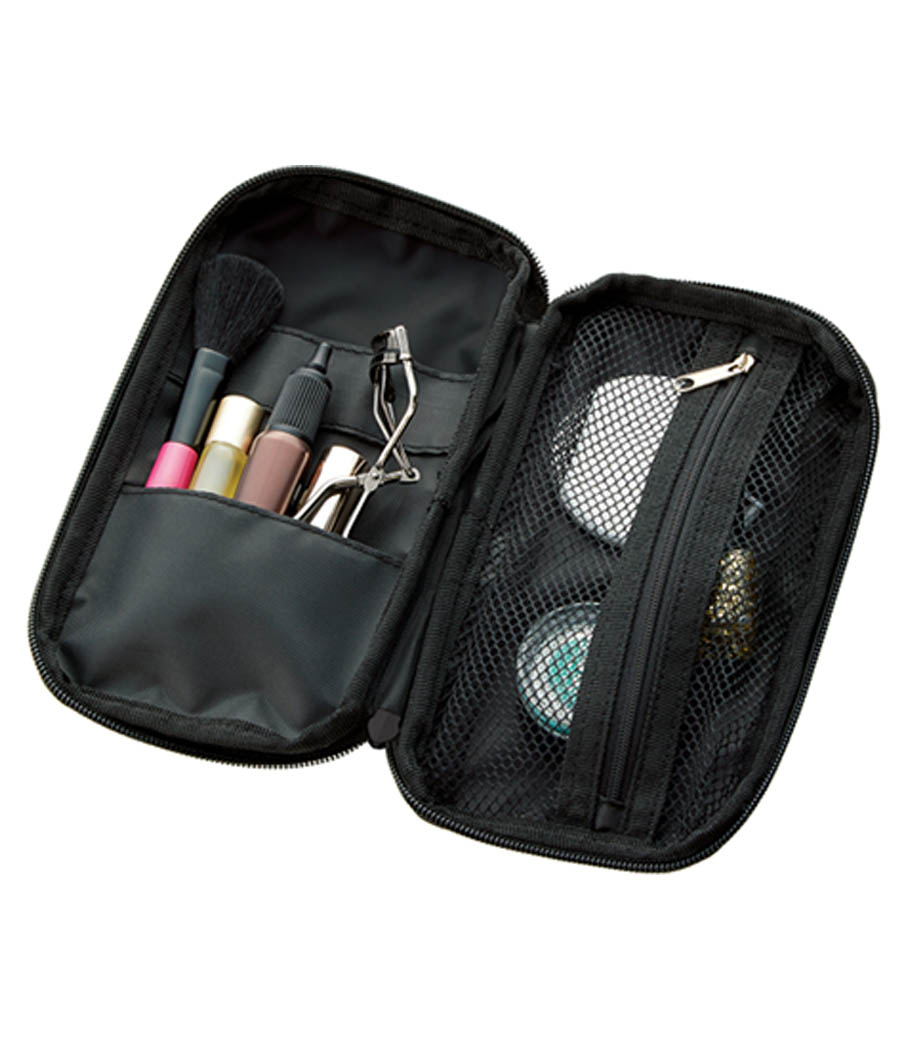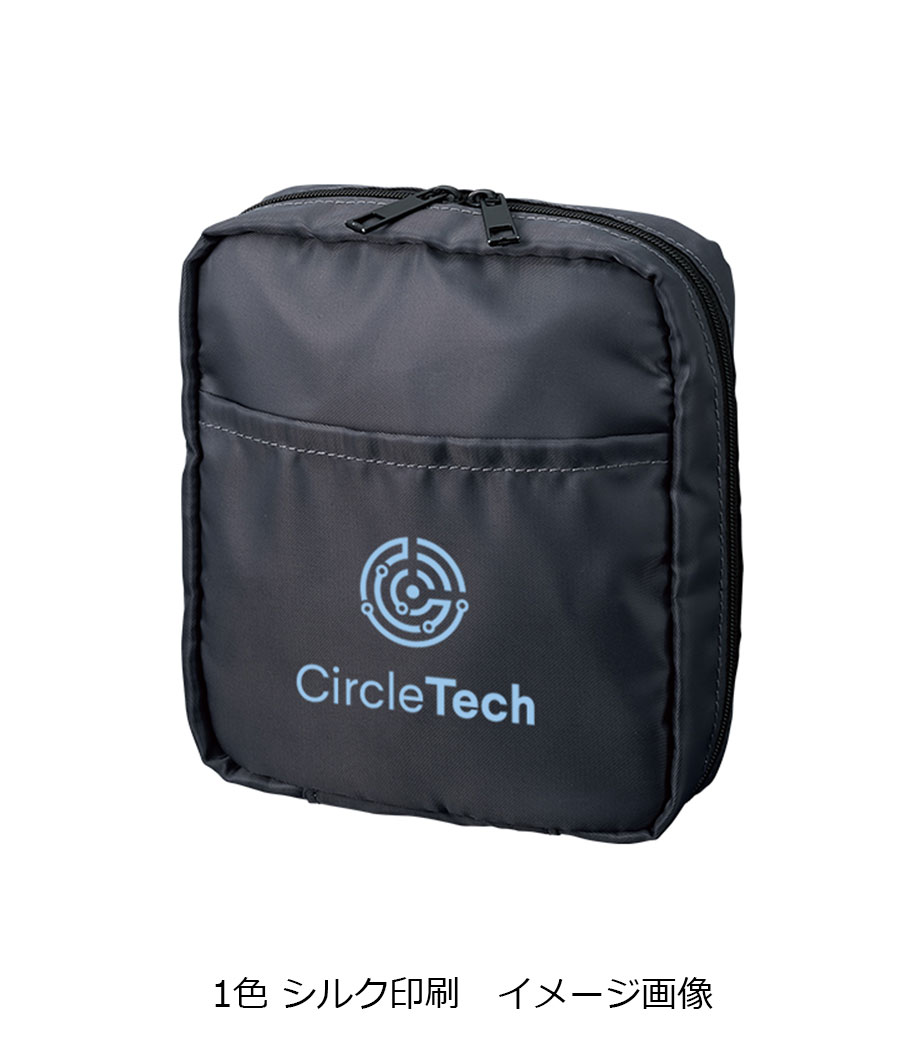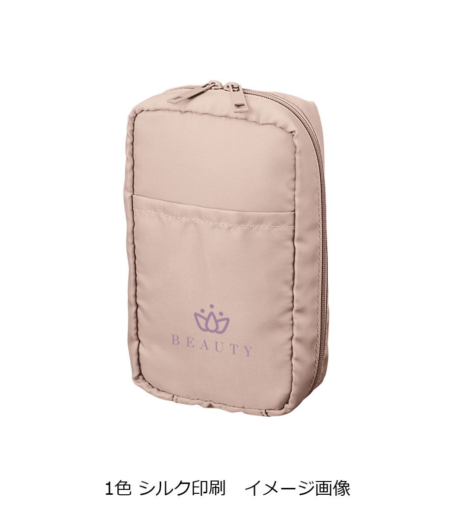 高品質で摩擦に強いナイロン素材を使用し、底面と側面にクッション性があるため、ガジェットやガラス容器の化粧品の持ち運びも安心です。シルク1色印刷かフルカラー印刷が可能。エステサロンやホテルの特典にいかがでしょうか。