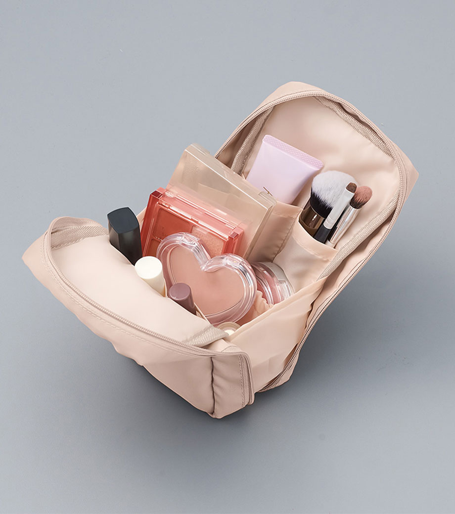 軽量でクッション性に優れたポーチです。180度大きく開くから収納しやすく、中身が一目瞭然。コスメやモバイルバッテリー、ケーブル類などを機能的にまとめることができてバッグ内の整理整頓に便利です。優しいカラーリングも魅力。普段使いはもちろん、スパや旅行、コスメポーチとしても活躍します。