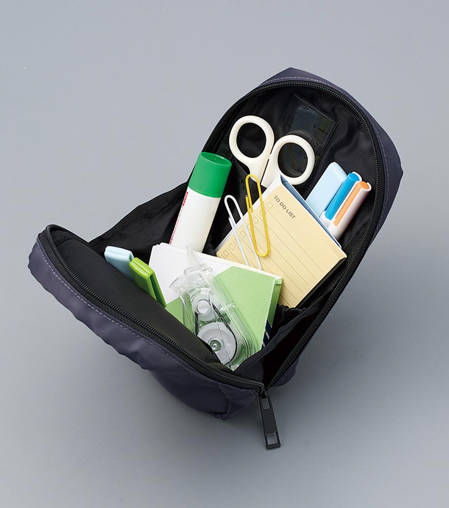 文具まとめて持ち運びポーチは文房具だけでなく、モバイルグッズやメーク道具など、すっきりまとめられるマルチに使える便利ポーチ。バッグの中で散らばりがちな小物をひとまとめにできます。ポケットは外側に1つ、内側に2つ。内側ファスナー付の収納部分はメッシュ素材で中身が確認しやすいのもポイント。普段使いや旅行に、使いやすいと大好評です。