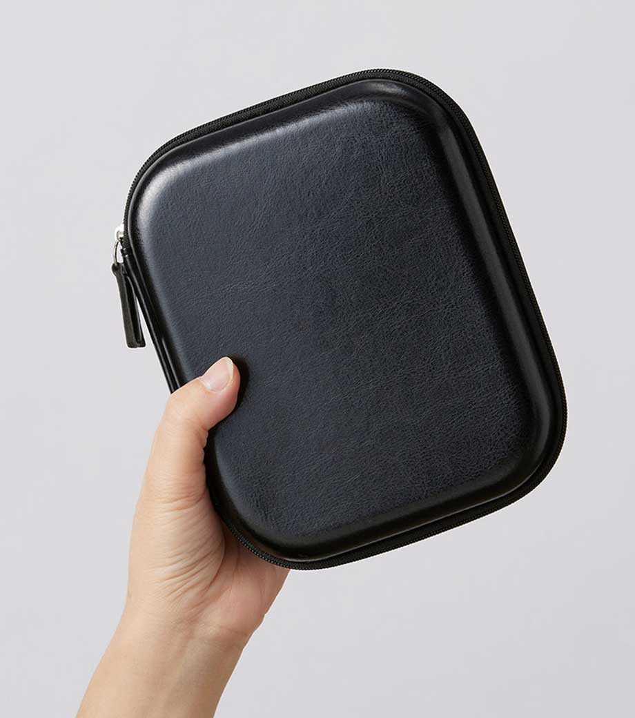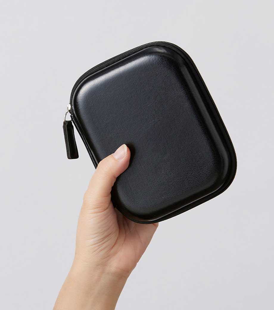 「コレクトケース」は身の回りの小物をコンパクトに収納できるファスナー付ケース。外側はPU素材のセミハードケースです。充電ケーブル・USBやイヤホンなどカバンの中でバラバラになりやすい小物をひとまとめにすることができます。探す手間が省けて時短にも!スマートなビジネスライフにおすすめです。