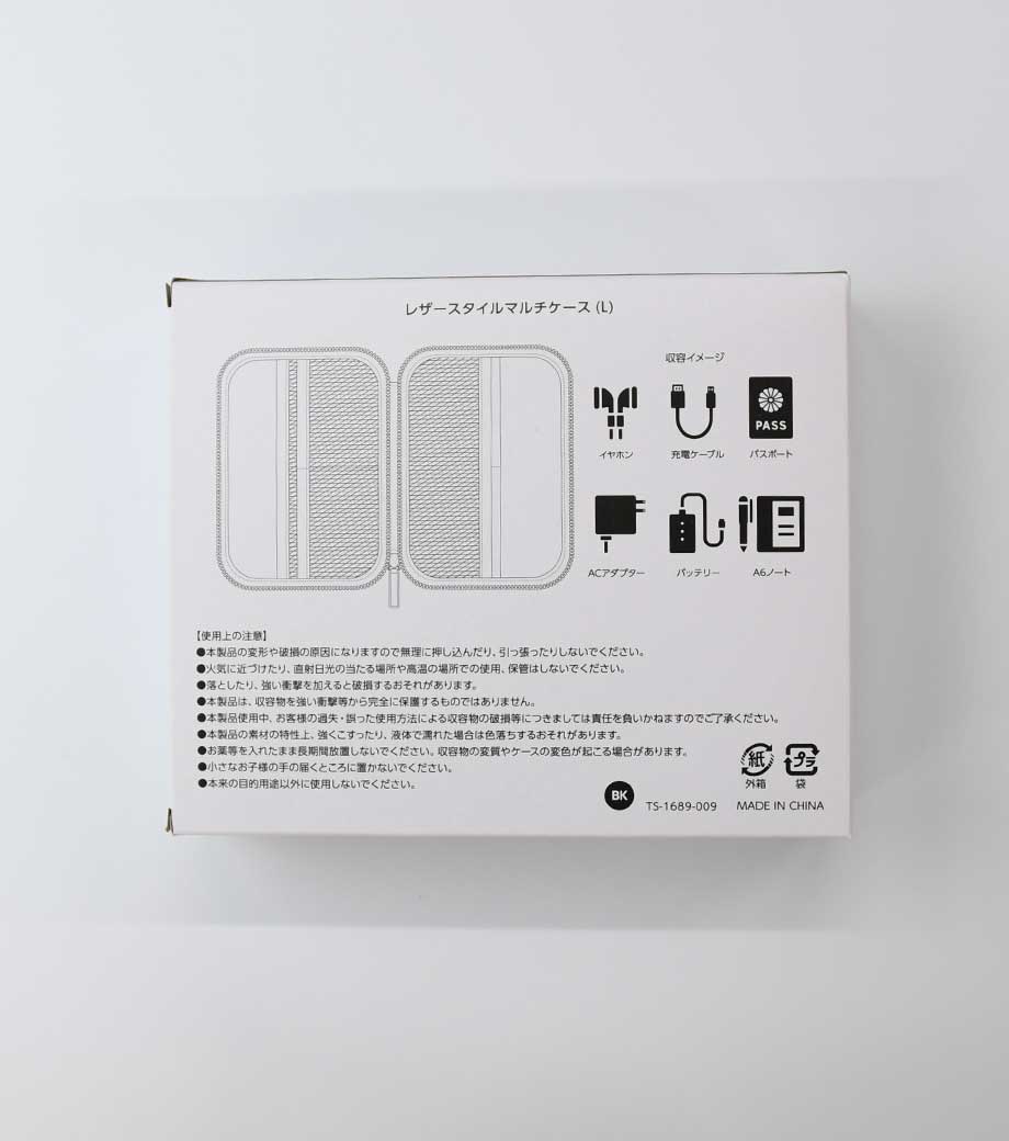 レザースタイルマルチケース(L)はぐるっと開いて収納できる合皮素材のマルチケースです。パスポートがピッタリ入るサイズ感で、メッシュポケットやゴムバンドが両側についています。旅行時の貴重品入れとして、カードや常備薬・鍵などを一か所にまとめておけば、なくす心配もありません!しっかりとしたつくりなので、モバイルグッズや電気アダプターなどの持ち運びにもおすすめです。店名やショップロゴを入れて、車や旅行関係のノベルティや電気量販店での購入特典にいかがでしょうか。
