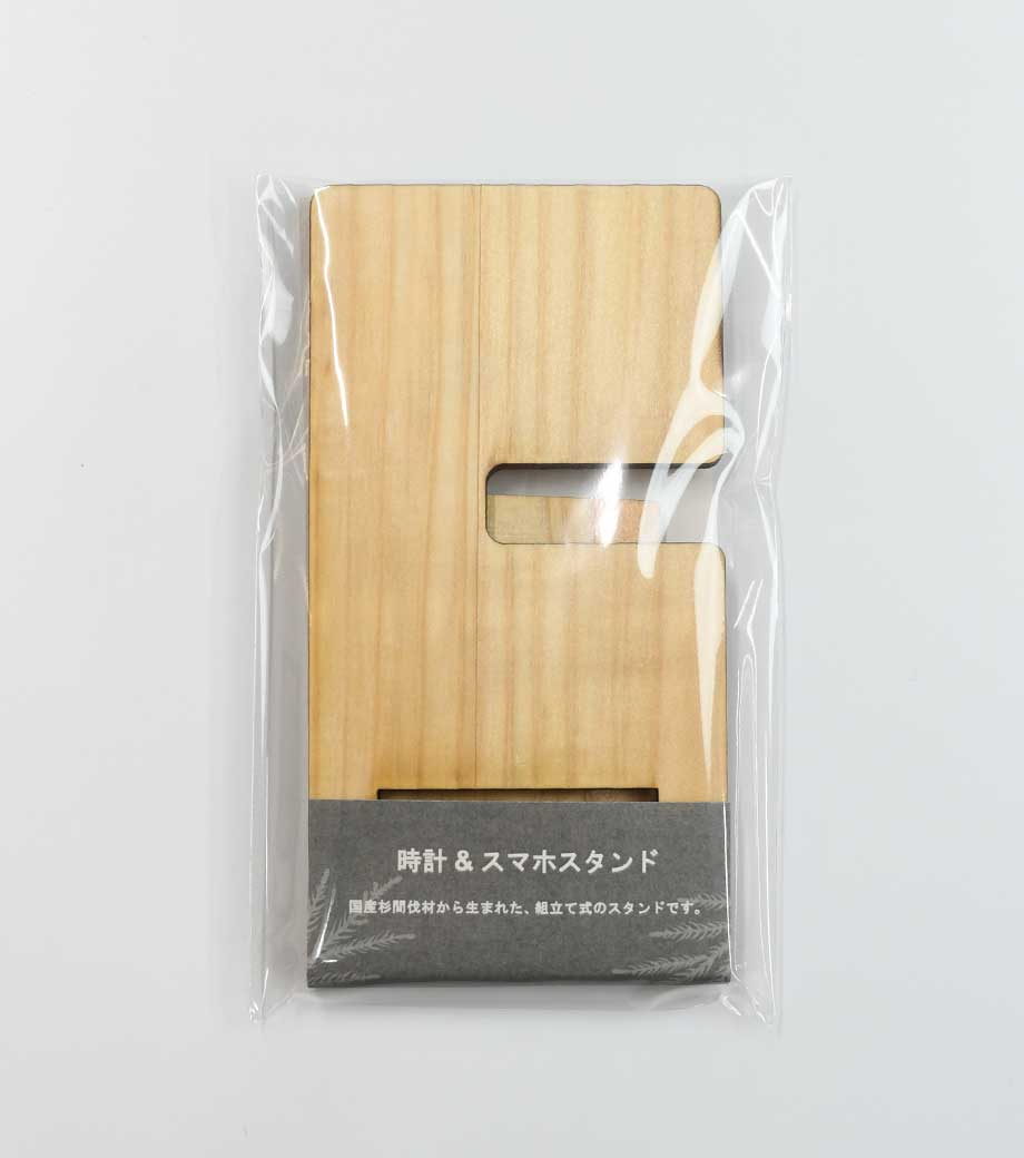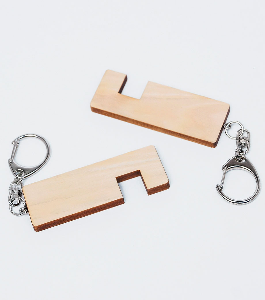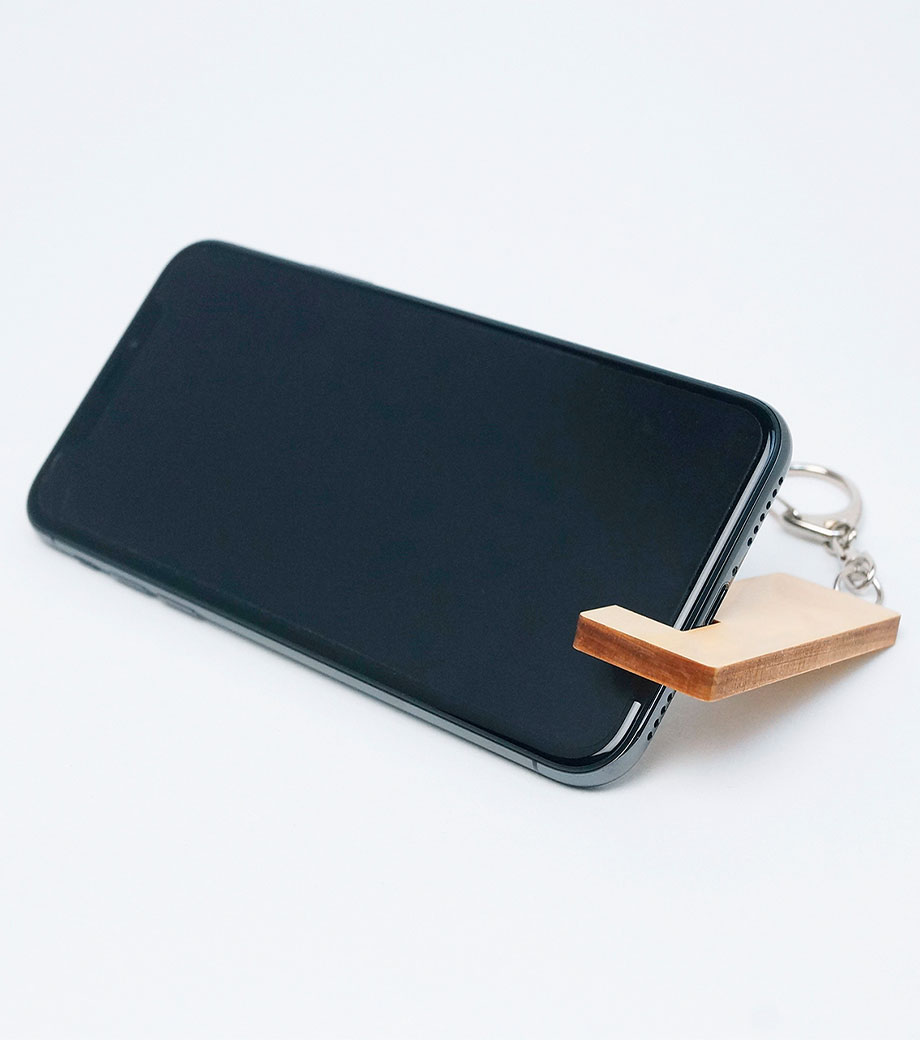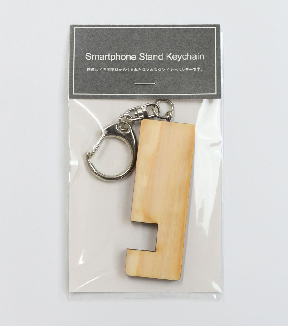 スマホスタンドキーホルダーは国産ヒノキ間伐材を有効活用した木製グッズ。森林保全のために間引かれた木材が原材料のノベルティはSDGs活動にも繋がり、配布するお客様にSDGsを知ってもらうきっかけにもなりますよ。