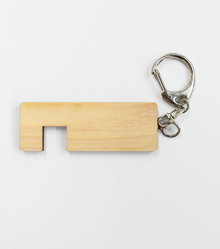 携帯に便利なカラビナ付き。気軽に渡せてラクラク使えるキーホルダーです。スマートフォンを横向きにして使用するタイプで、外出先での動画視聴に大変便利です。個包装を開けた時に漂うヒノキの香りはもらったときに喜ばれること間違いなし!
