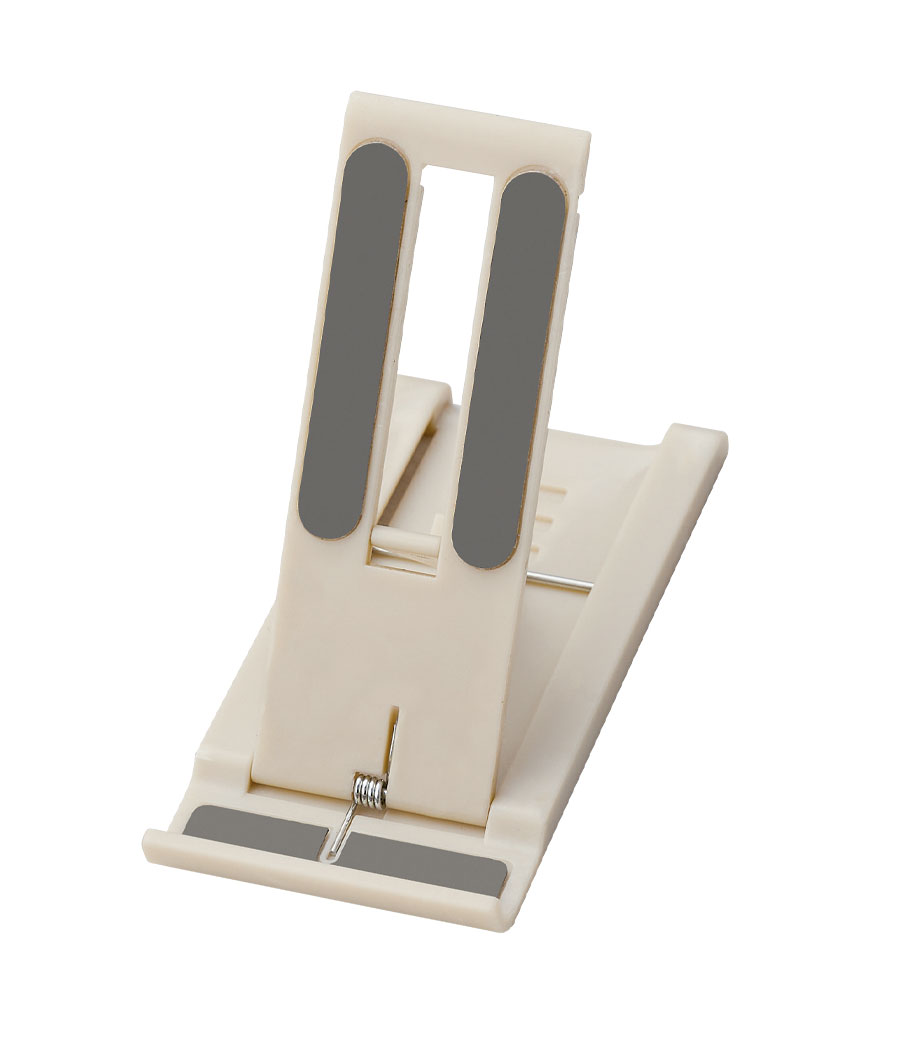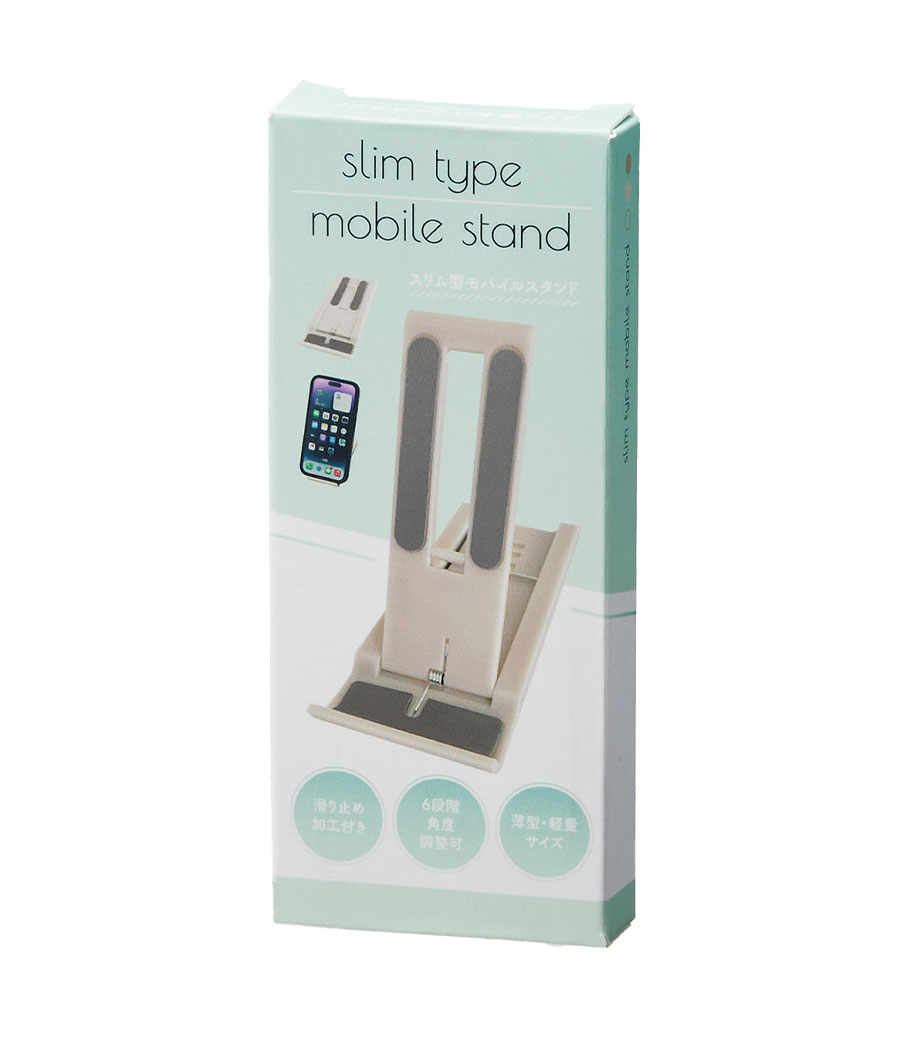 スリムに折りたためて持ち運びやすい、便利なモバイルスタンド。6段階の角度調節が可能で、動画視聴やビデオ通話も快適です。スタンド面と底面に滑り止め付きで、安定感があります。デスクになじむ落ち着いたカラーのグレー・ベージュ2色取混ぜでお届け。自宅やオフィスはもちろん、外出先でも使える実用性の高いアイテムです。