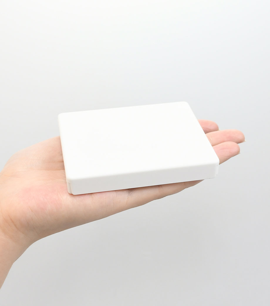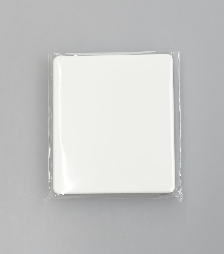 スマホ取り付けの際に、接着部分を保護できる透明フィルム付き。コンパクトな化粧箱で手渡しはもちろん、ポストインでの発送も可能です。窓付き箱なので、渡すときに名入れ面が見えて販促効果バッチリです。