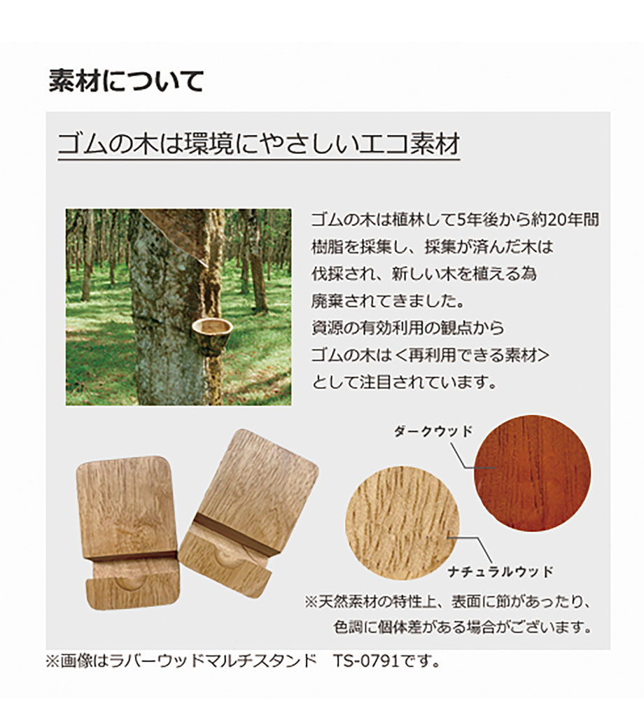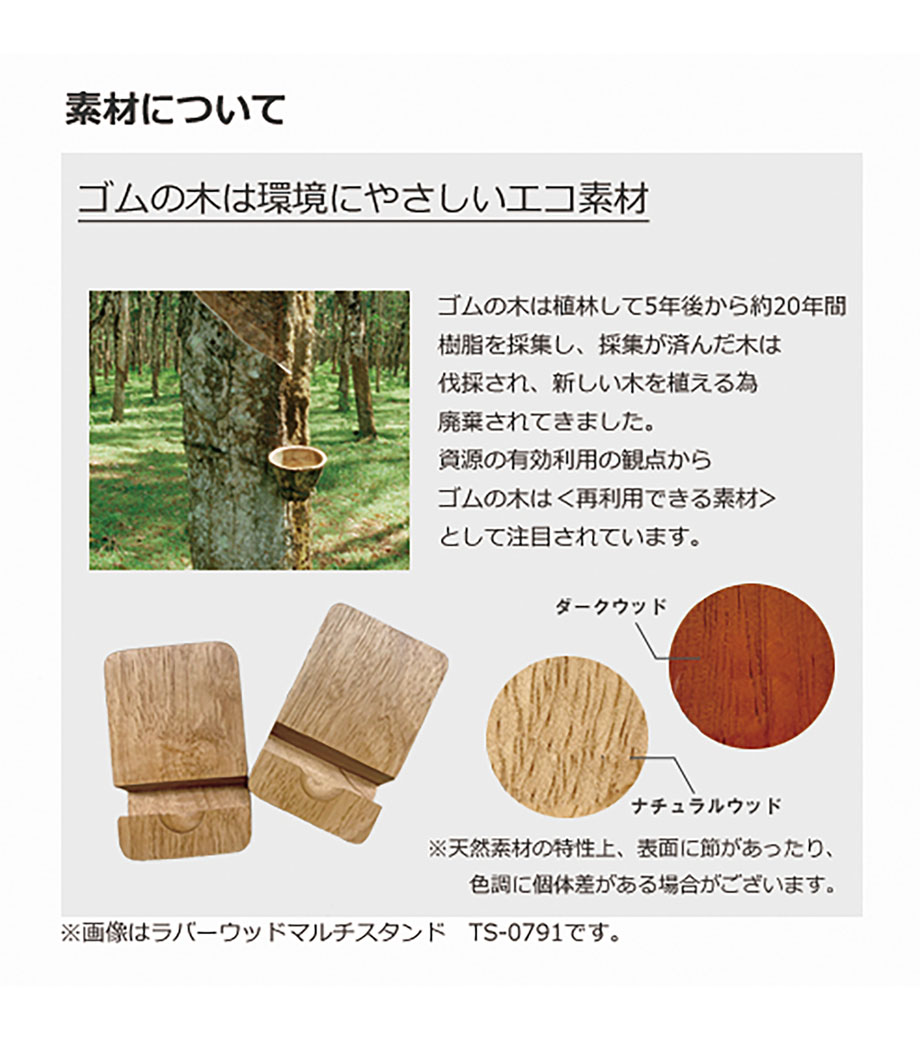 ラバーウッドスタンド ワイドは、廃棄されるはずだったゴムの木を再利用した地球に優しいスマートフォンスタンド。木ならではのナチュラルで温かみのある風合いで、デスク周りを和やかな雰囲気に。スマートフォンを縦にも横にも置けるので、使用用途によって使い分けることができます。