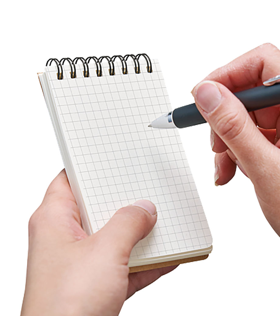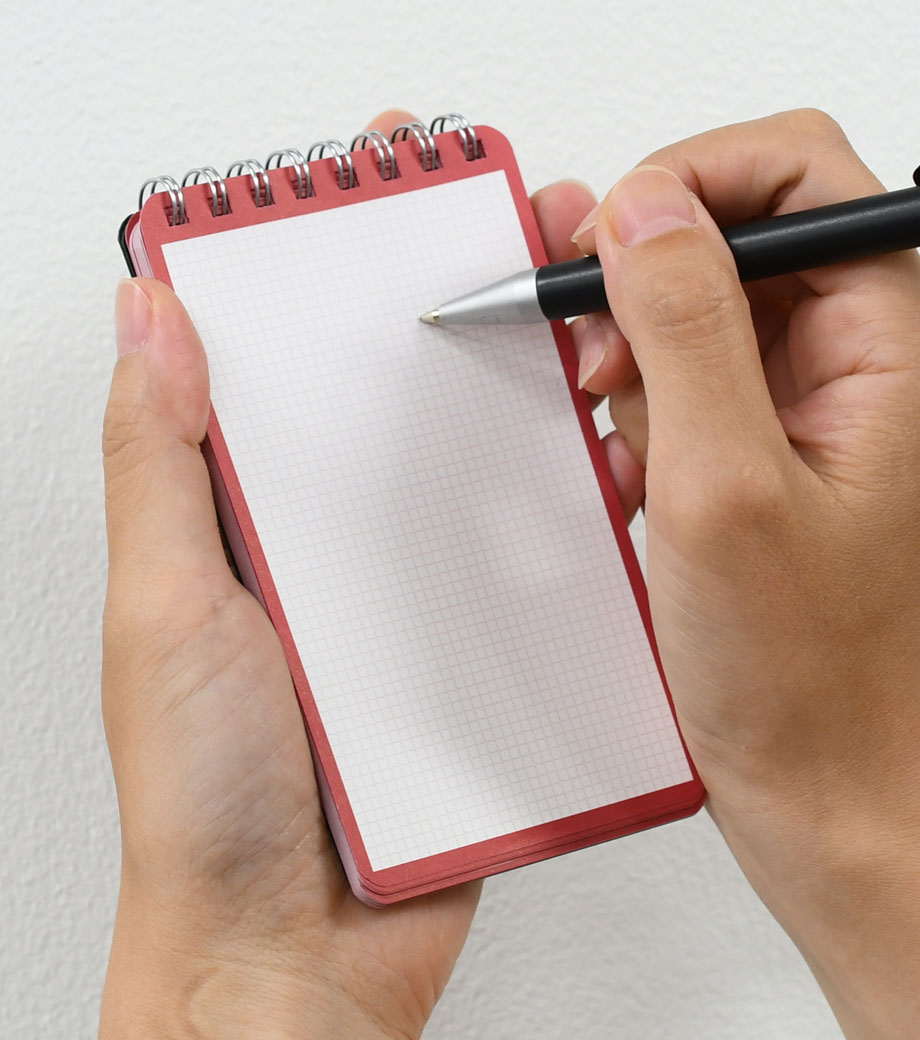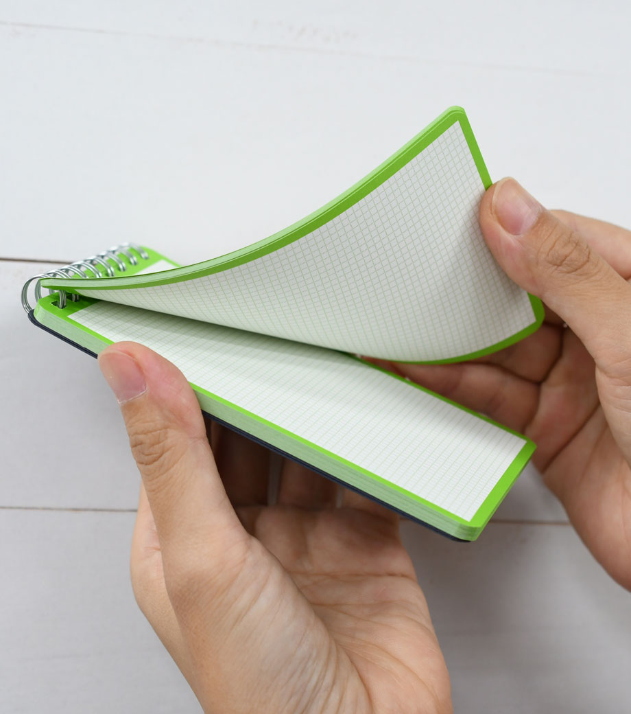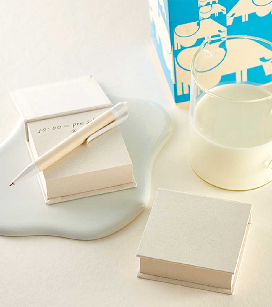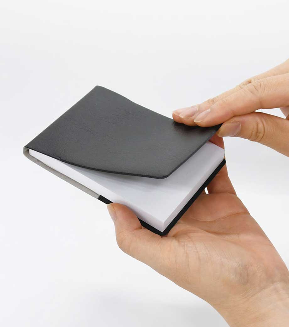 リサイクルA7メモパッドは、バックや背広の内ポケットなど、どこにでもスッと入るメモ帳です。メモ帳部分は使いやすい5mm方眼。文字だけでなく、地図や図表、イラストを書き込みやすく、ひらめいたアイデアなどをすぐに書き込めますね。1枚1枚「ピッ」と気持ちよくはがせるので、誰かにメモを渡すときにも便利。必ず持ち歩くスマホでもメモは取れますが、書くことで脳内の情報を整理し、そこからさらにアイデアが生まれるのもアナログならではです。