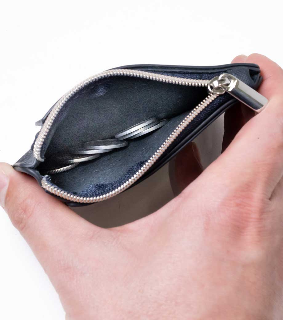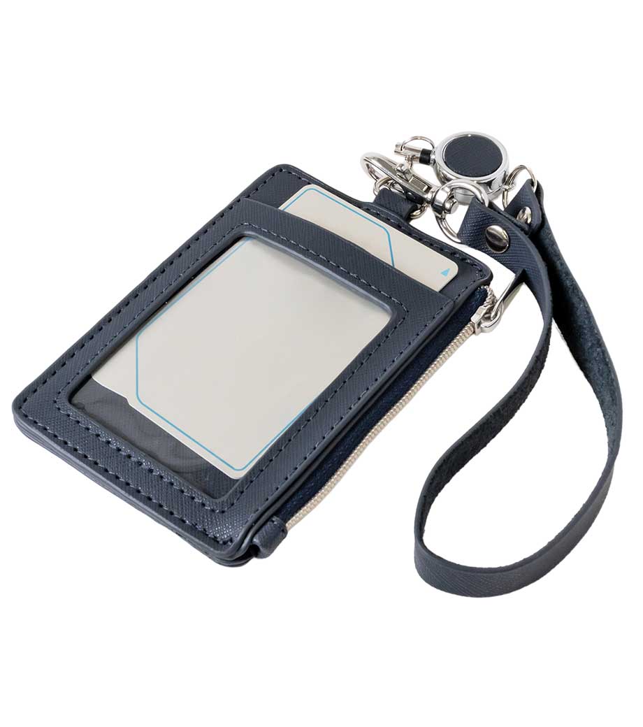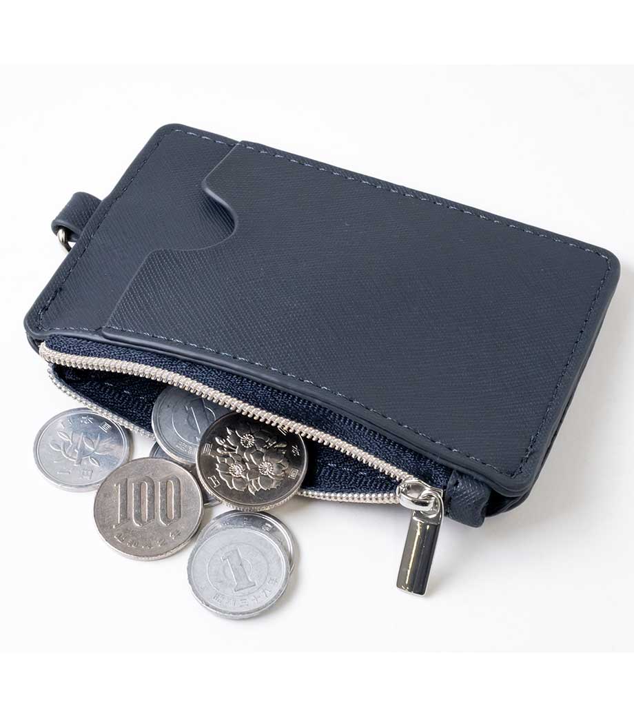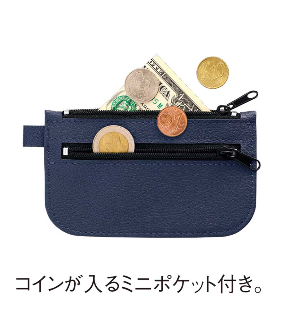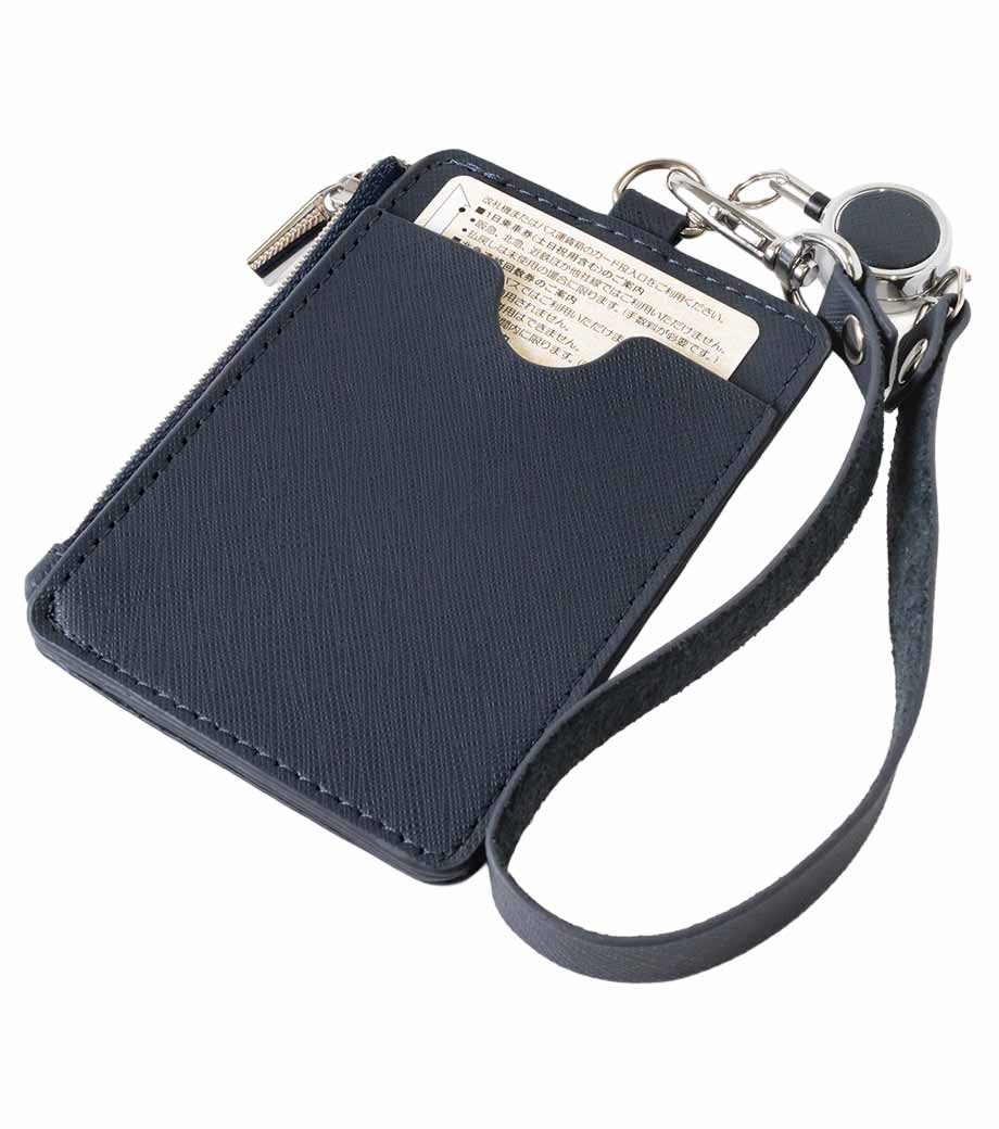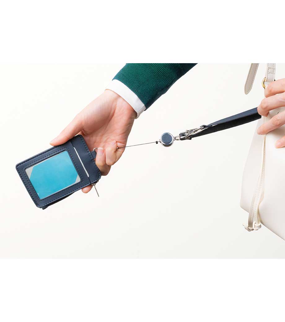小銭入れ・カード入れ・パスケースが1つに!リール式ストラップで改札やゲートもスムーズに通過できます。あると便利な小銭入れは、常備薬などを入れても良いですね。皮革製品製造時に出る未利用端材などを再加工したリサイクルレザーを使用した、環境にやさしい商品です。