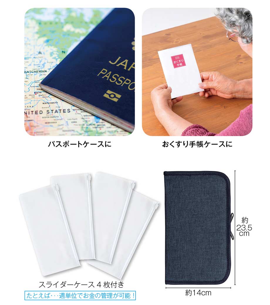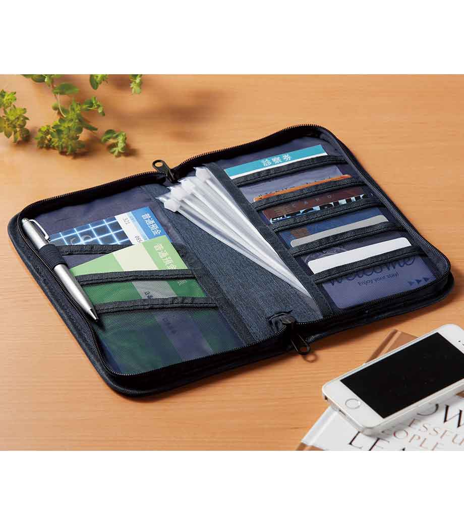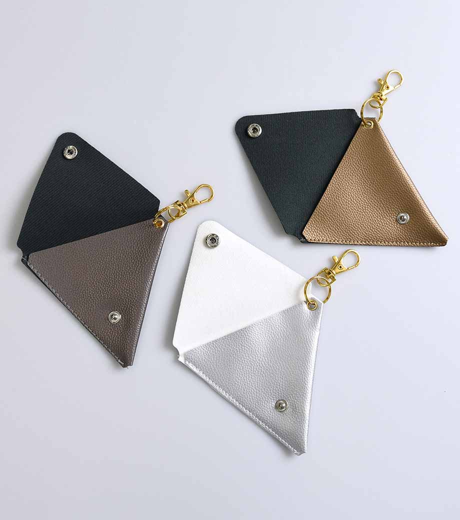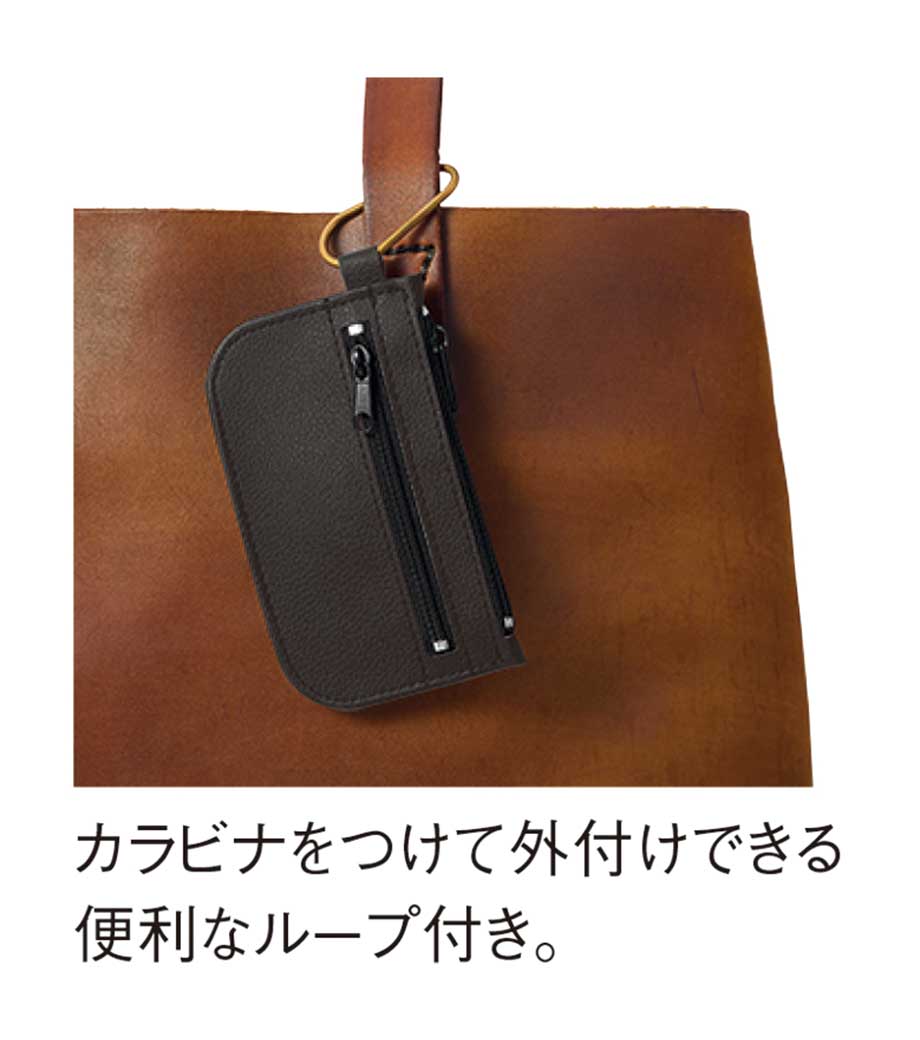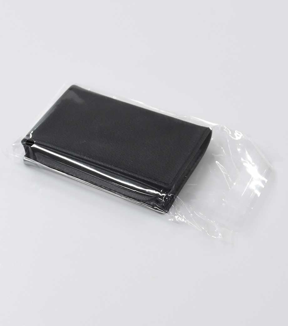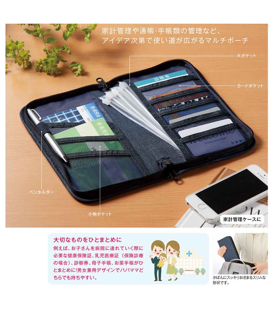 光沢感があり柔らかい生地感で、使い勝手も抜群。撥水性があるので、お手入れも楽ちんです。カバンやベルトループに付けられるキーホルダー付きで、お出かけにも便利。リーズナブルでありながら、高級感あるノベルティで人気です。