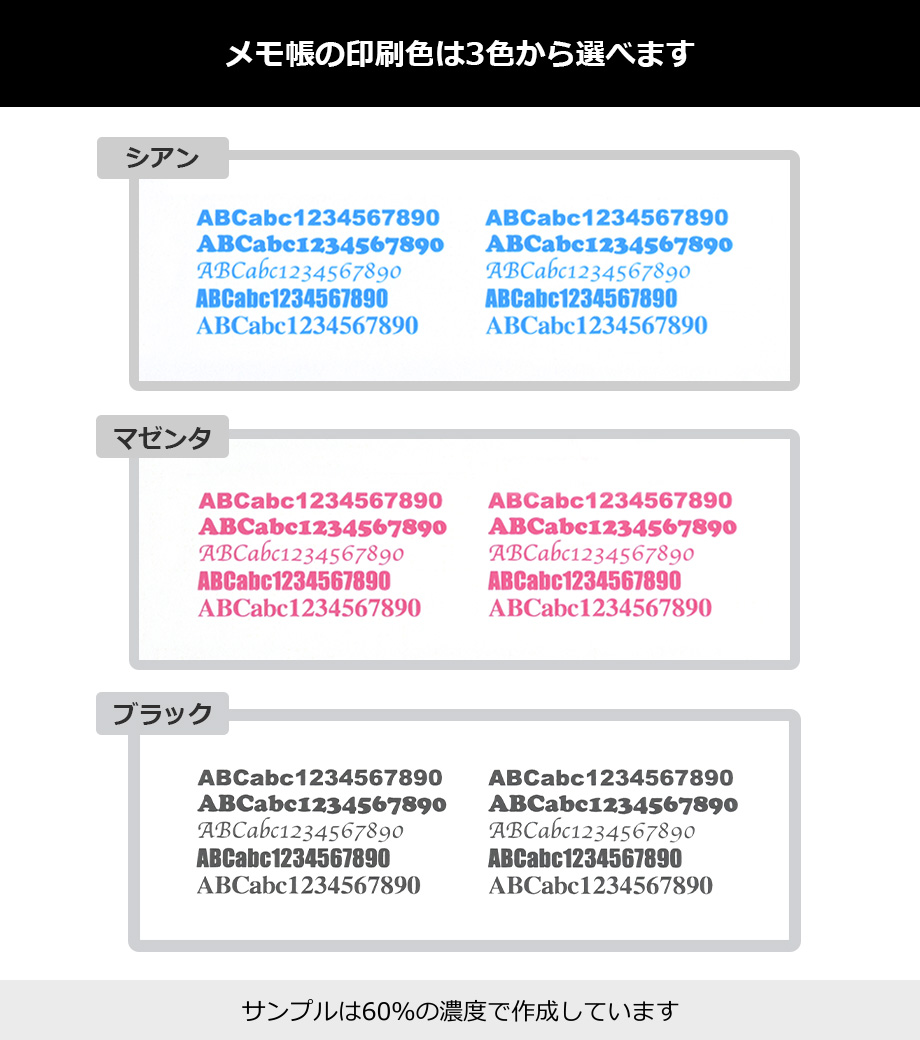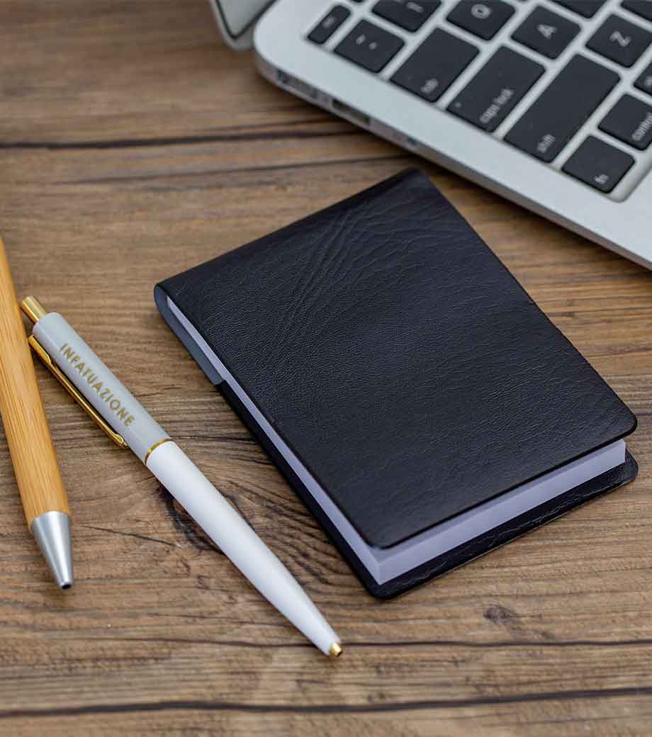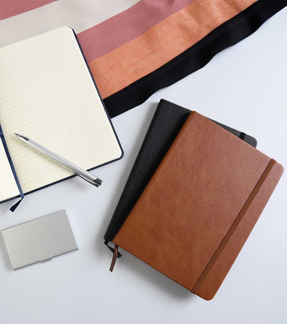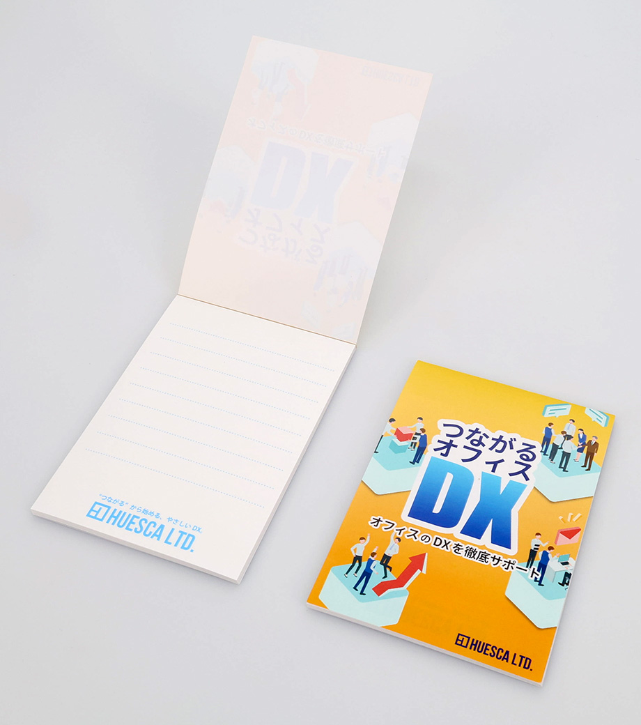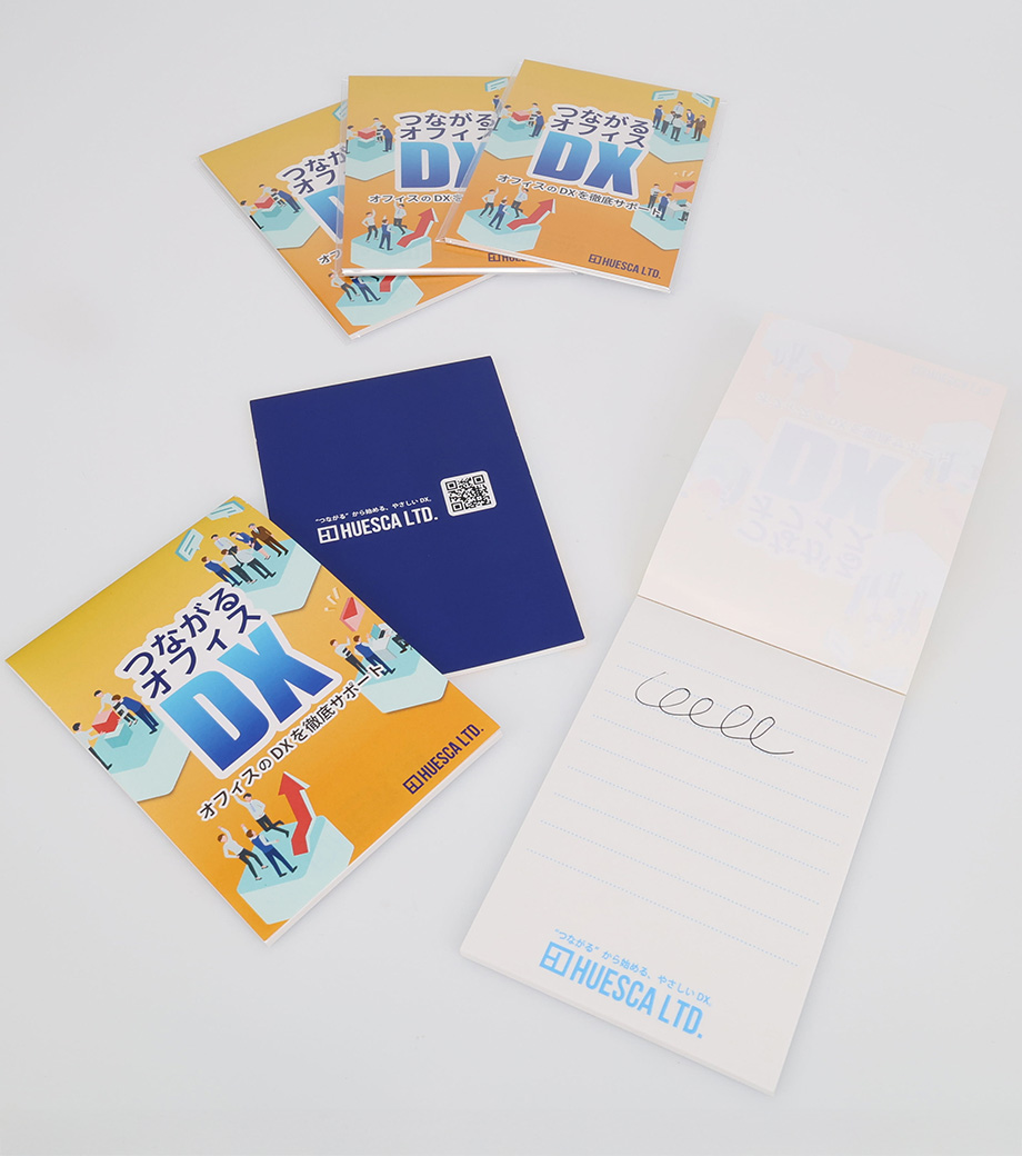 表紙に1色・空押し・箔押し・フルカラー印刷で名入れできます。企業名や学校名を印刷すれば、宣伝効果の高い販促品に。セミナーの参加特典や卒業記念品などにおすすめです。